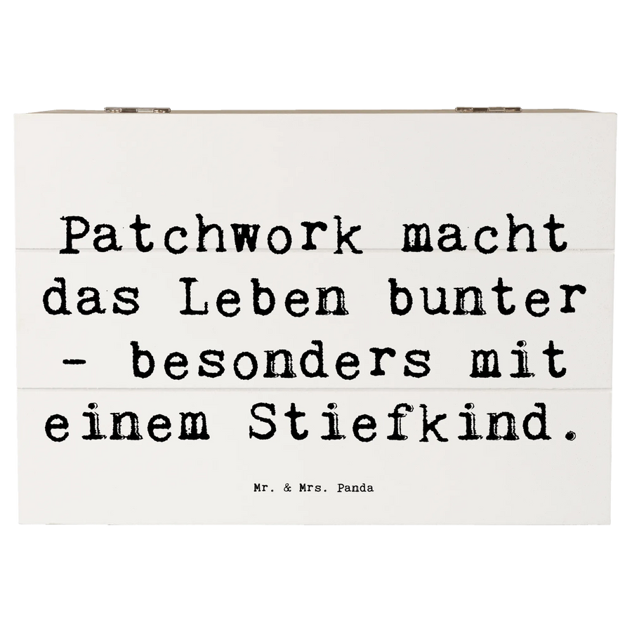 Die wunderschöne Holzkiste von Mr. & Mrs. Panda ist das perfekte Geschenk für jede moderne Patchworkfamilie. Mit einem liebevollen Spruch, der sagt: "Patchwork macht das Leben bunter - besonders mit einem Stiefkind", trägt diese Kiste zur Förderung der Familienbindung und zur Anerkennung der einzigartigen Rolle von Stiefkindern innerhalb der Familie bei.