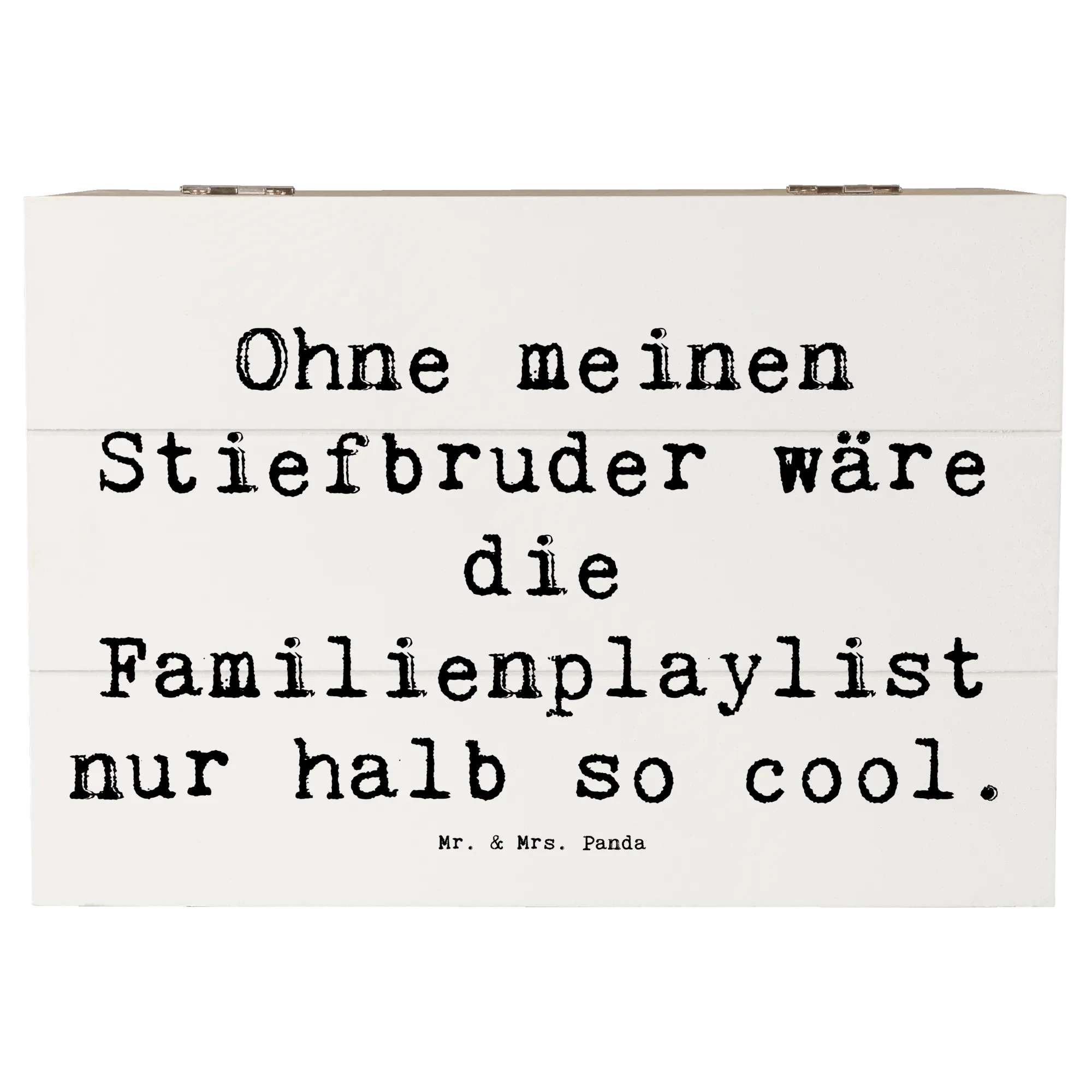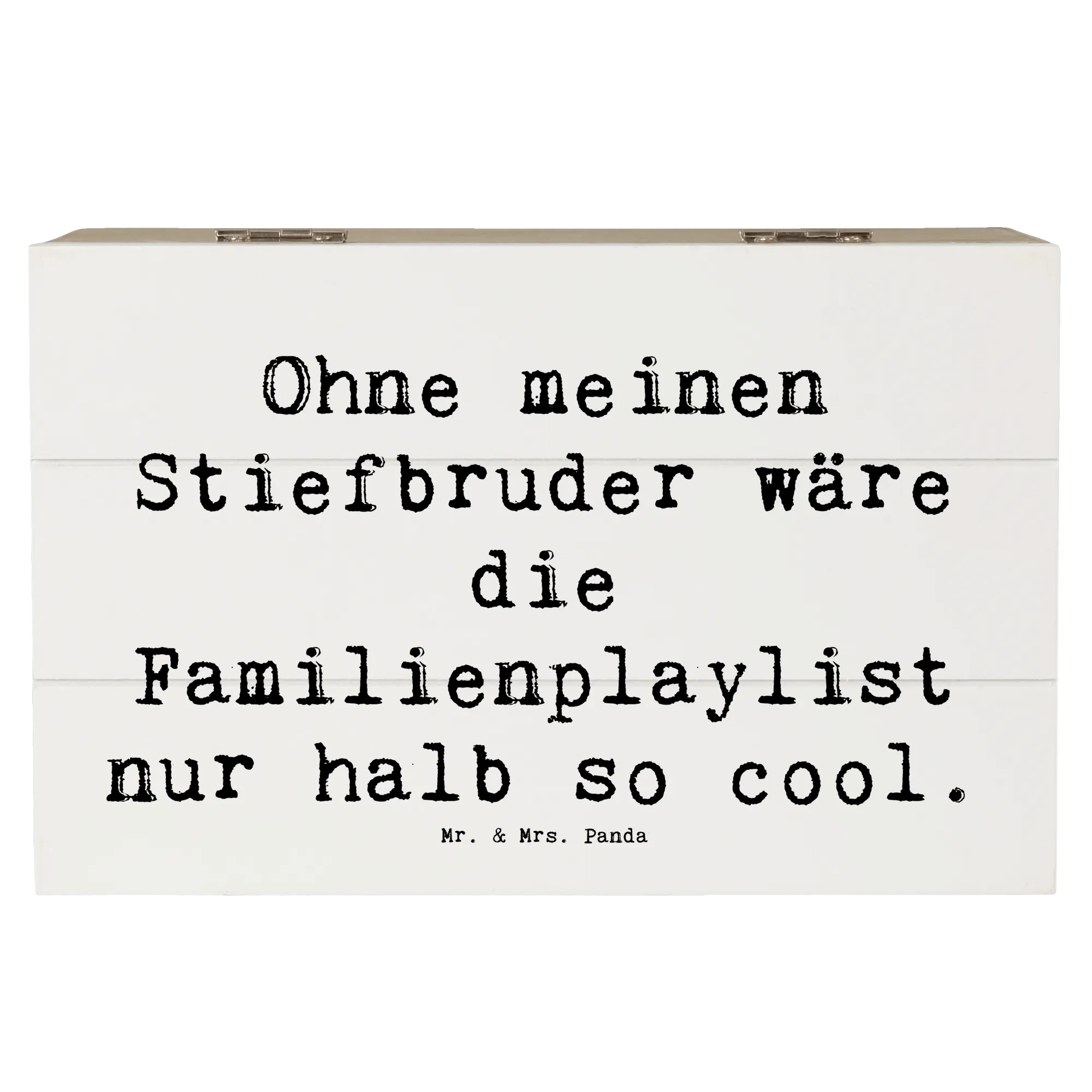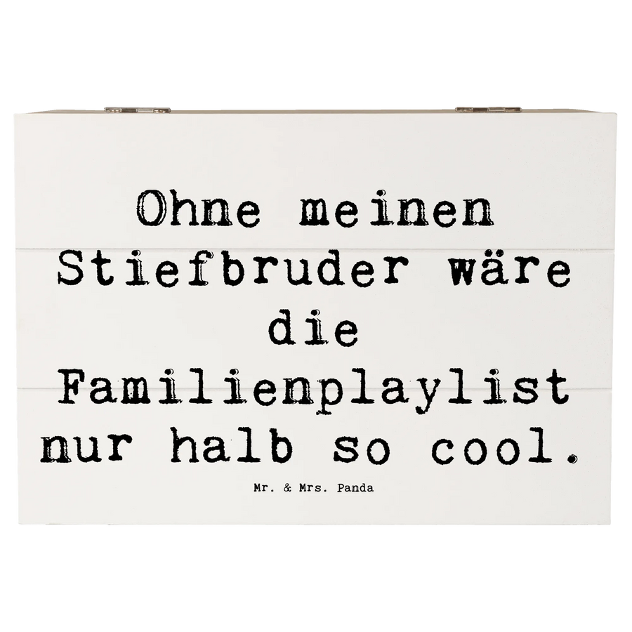 Die wunderschöne Holzkiste von Mr. & Mrs. Panda ist das perfekte Geschenk für Deinen Stiefbruder! Bedruckt mit dem liebevollen Spruch: "Ohne meinen Stiefbruder wäre die Familienplaylist nur halb so cool." symbolisiert diese edle Erinnerungskiste die einzigartige Verbindung zwischen Stiefgeschwistern. Egal, ob zum Geburtstag, zu Weihnachten oder einfach als kleines Dankeschön – diese Kiste ist eine wunderbare Möglichkeit, Deine Wertschätzung zu zeigen.