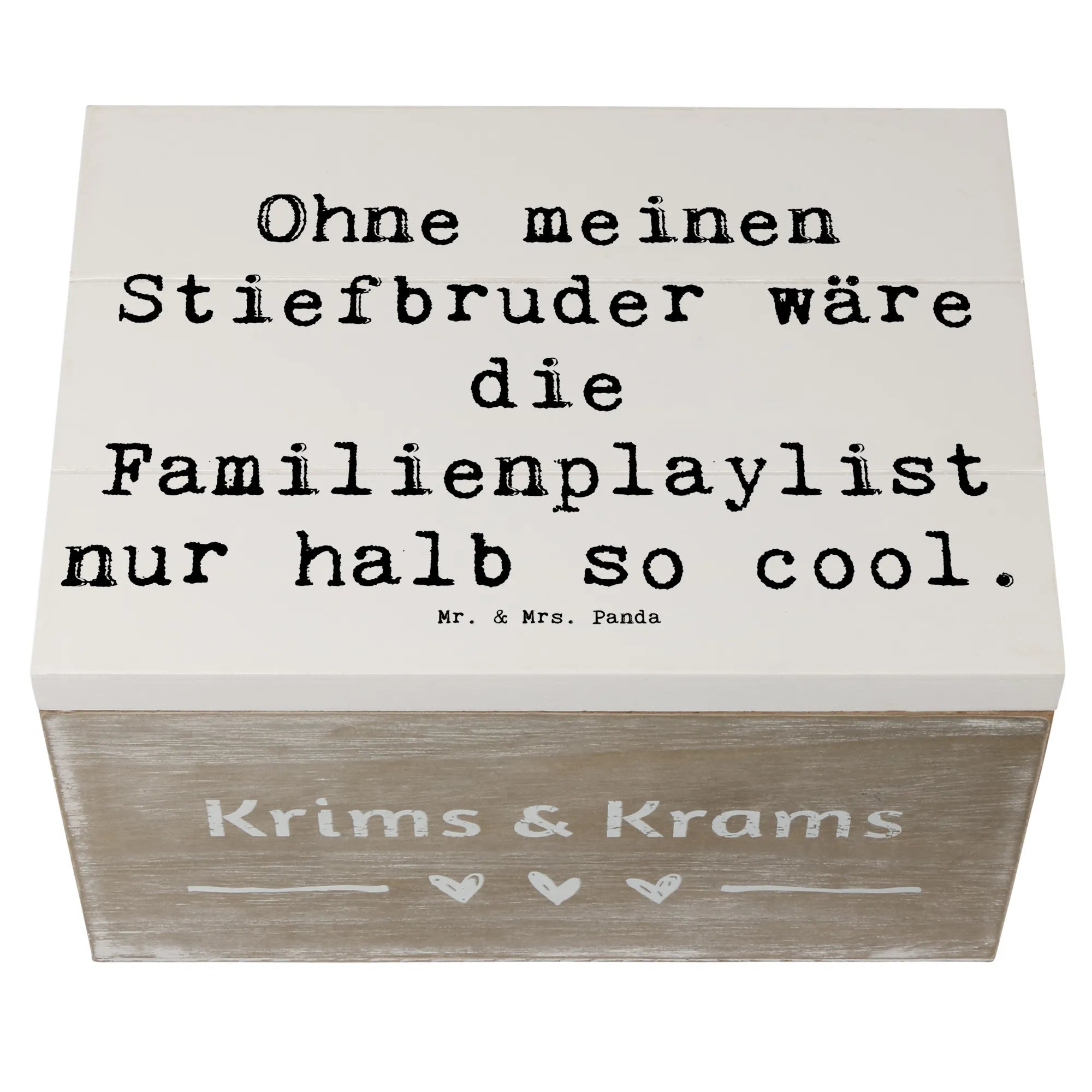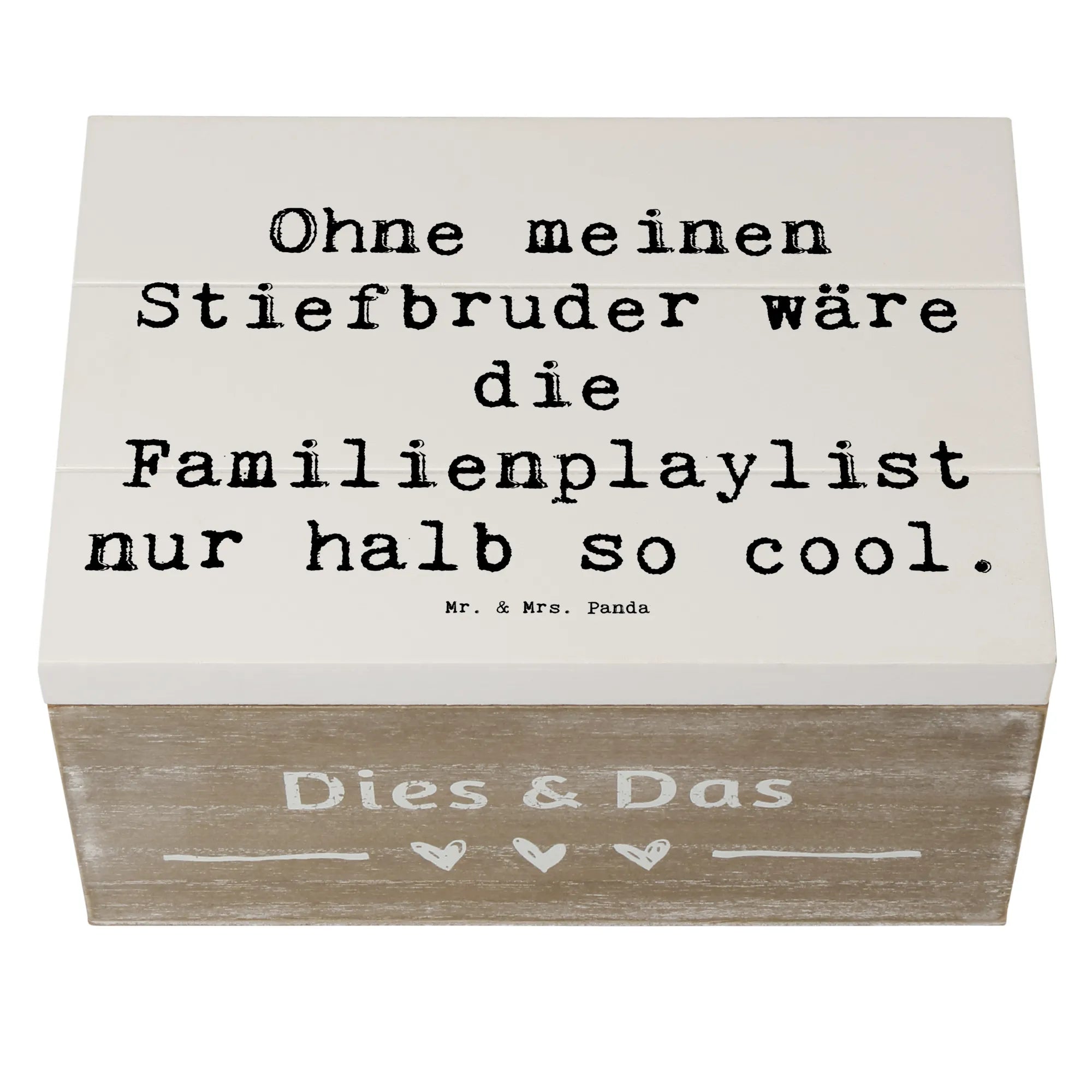 Die wunderschöne Holzkiste mit dem Motiv "Ohne meinen Stiefbruder wäre die Familienplaylist nur halb so cool." von Mr. & Mrs. Panda ist das perfekte Geschenk für Stiefgeschwister. Diese liebevoll gestaltete Kiste ist nicht nur ein Blickfang, sondern auch eine praktische Aufbewahrungsbox für all Deine Erinnerungen. Egal ob für besondere Anlässe wie die Konfirmation, Kommunion, oder einfach als Dankeschön, diese Erinnerungskiste aus robuster Premium Hartfaser erfüllt Deine Bedürfnisse. Mit Maßen von 190 mm x 120 mm x 100 mm bietet sie ausreichend Platz für Fotos, kleine Schätze und persönliche Andenken. Die stabile und nachhaltige Bauweise sorgt dafür, dass die Kiste mehr als nur ein einmaliges Geschenk ist – sie wird ein wichtiger Teil Deiner Familien-Geschichte.
