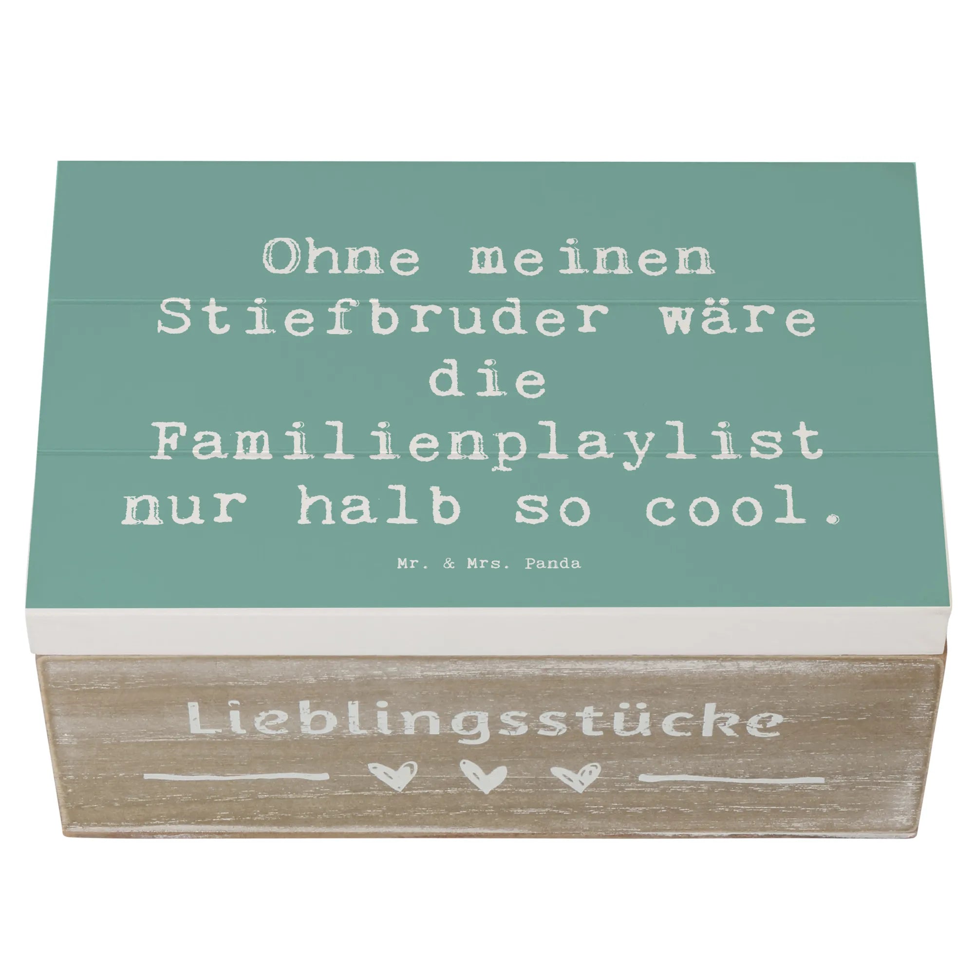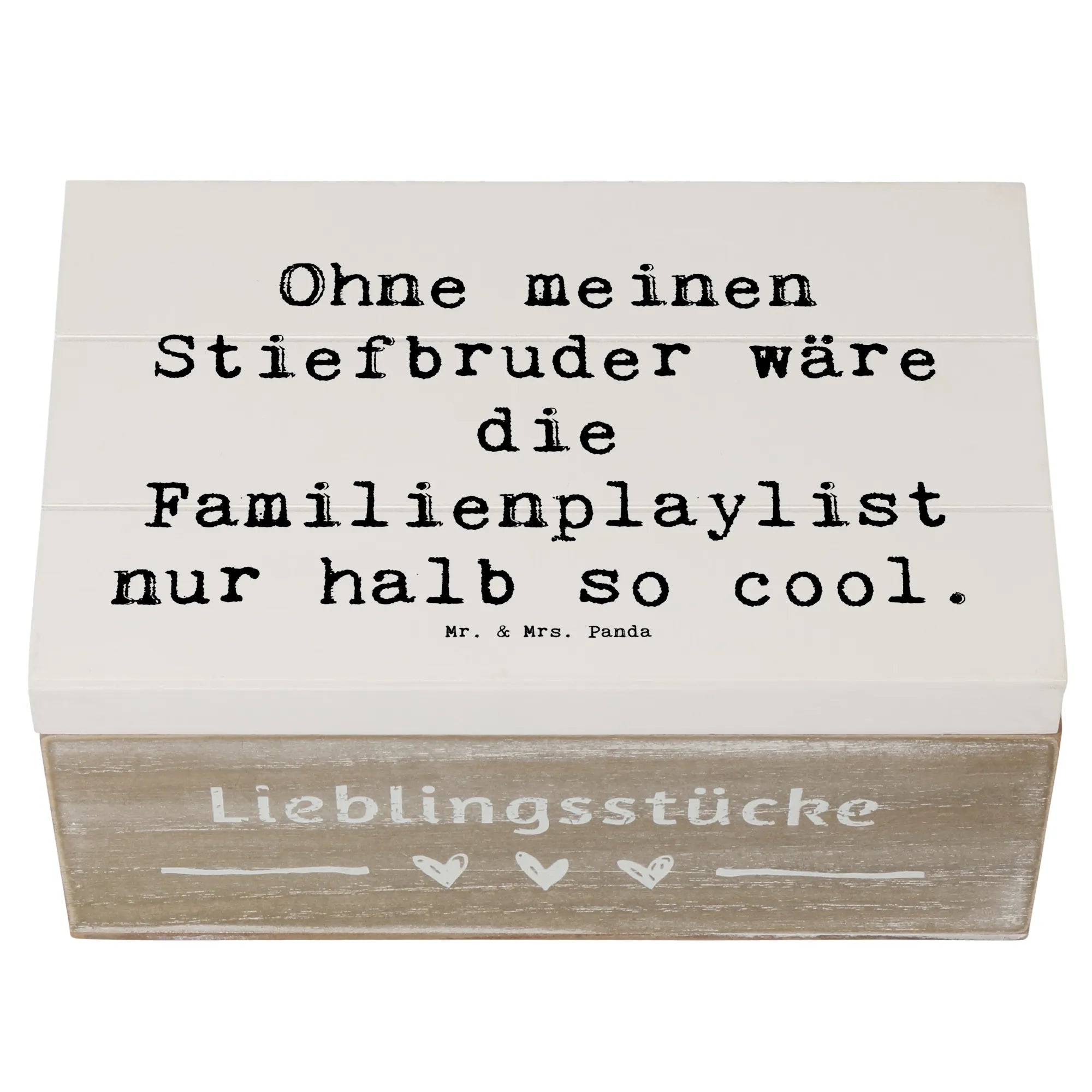 Entdecke die zauberhafte Holzkiste von Mr. & Mrs. Panda, die perfekte Aufbewahrungsbox für alle Erinnerungen an deinen Stiefbruder! Diese wunderbare Erinnerungskiste ist nicht nur praktisch, sondern auch ein liebevolles Geschenk aus der exklusiven Familien & Verwandte Kollektion.