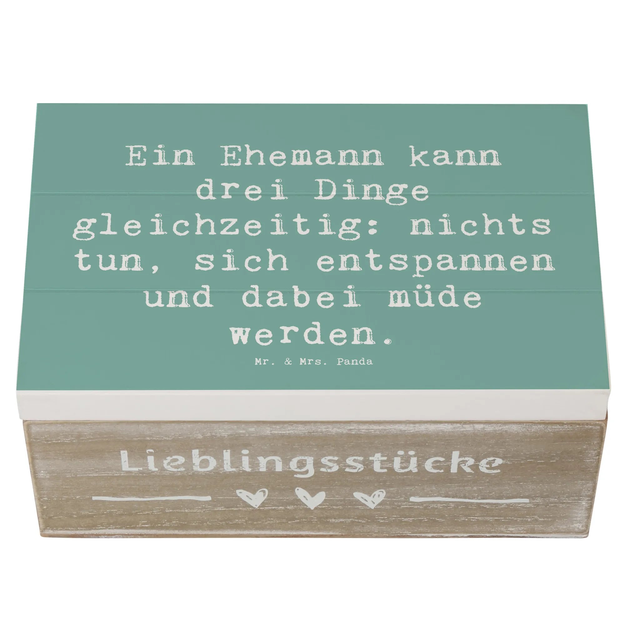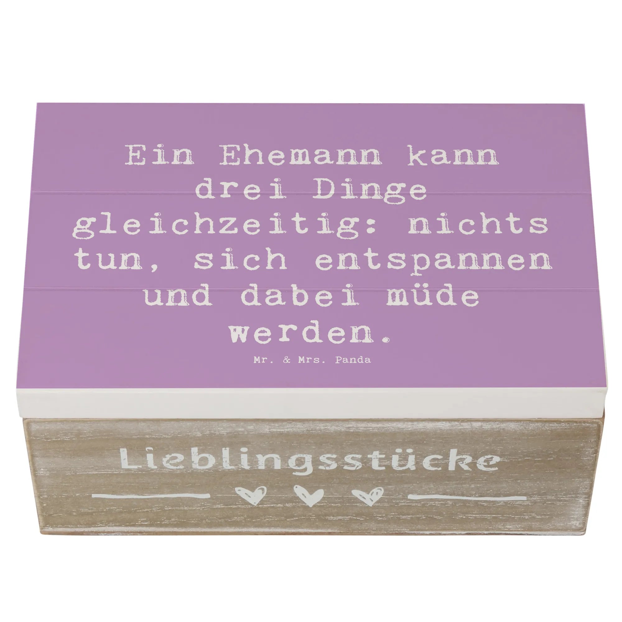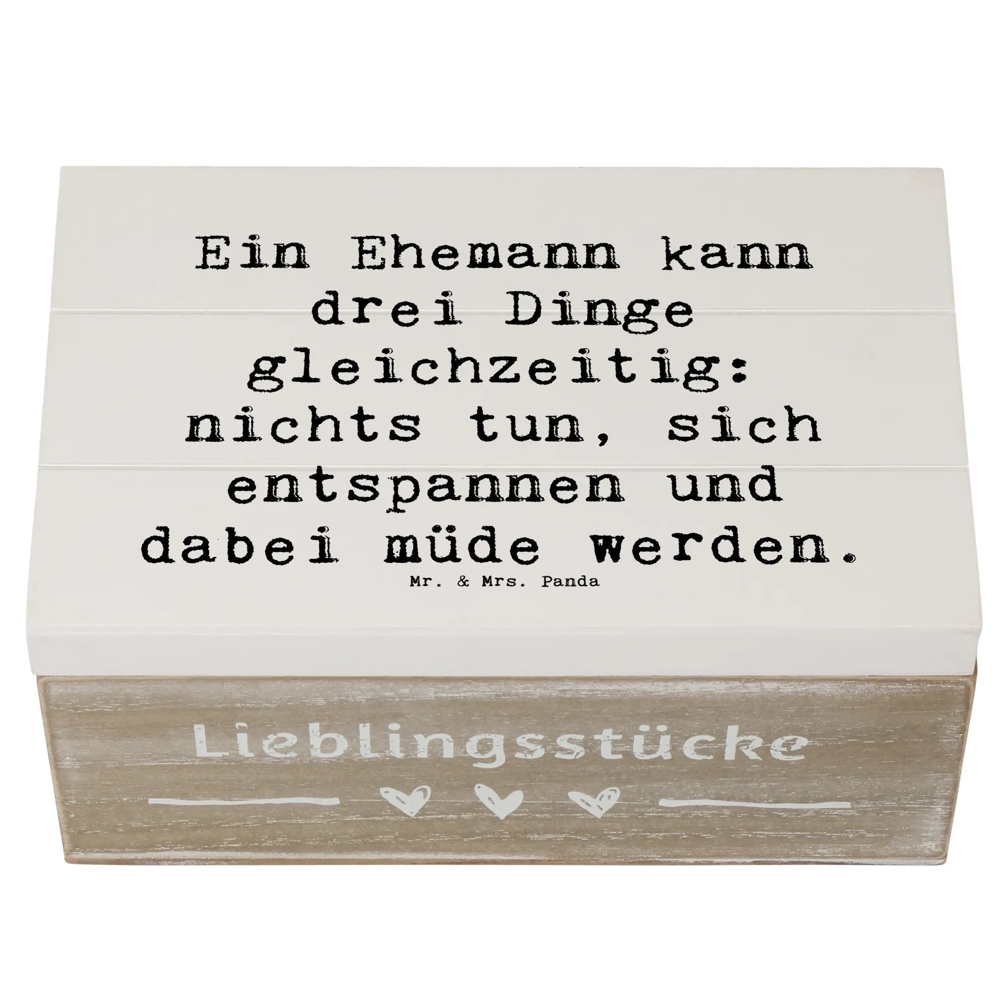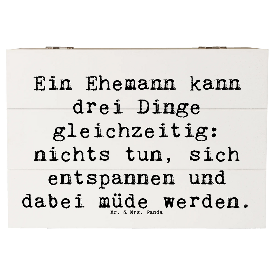 Entdecke die zauberhafte Holzkiste für Ehemänner von Mr. & Mrs. Panda, die nicht nur praktisch, sondern auch ein liebevolles Geschenk ist!