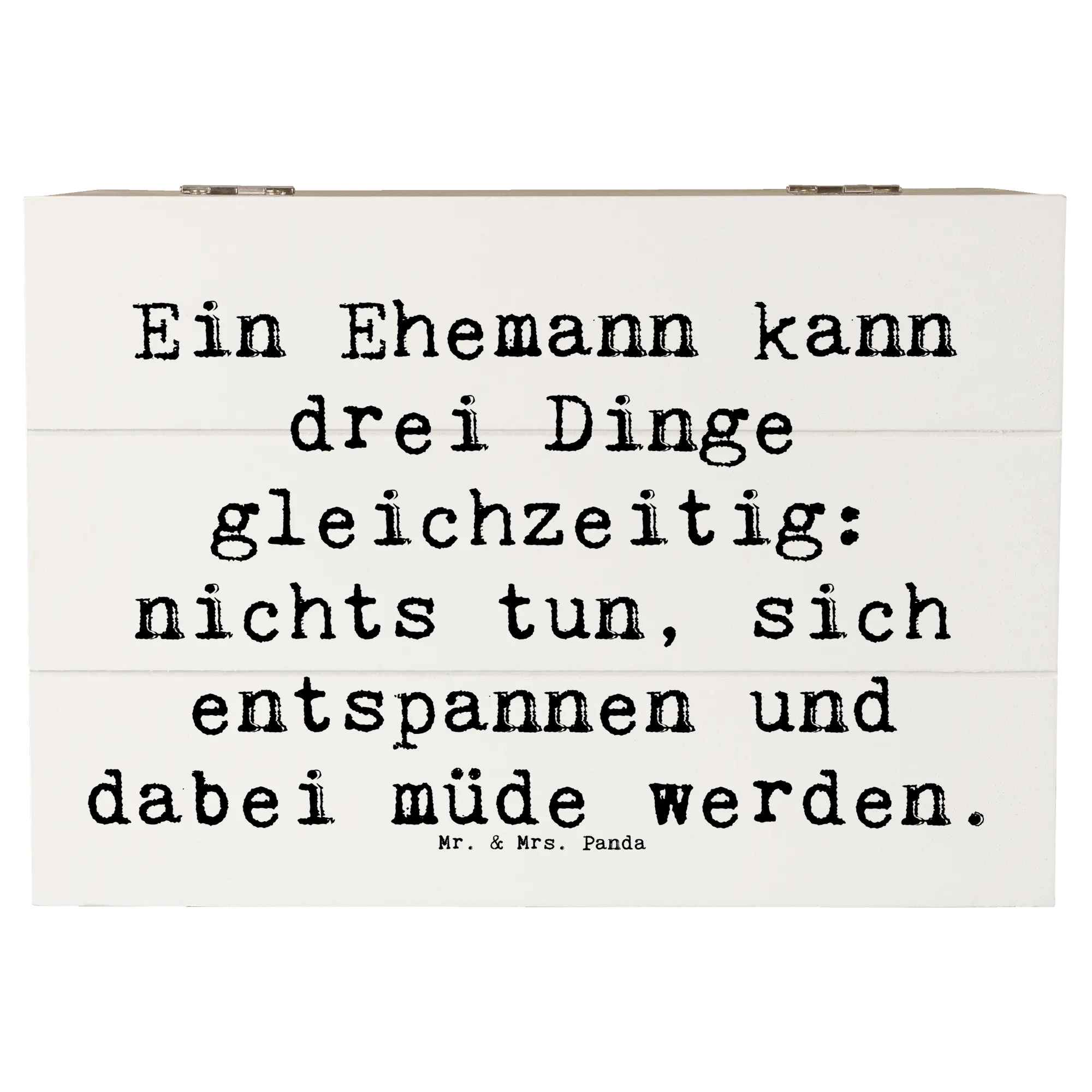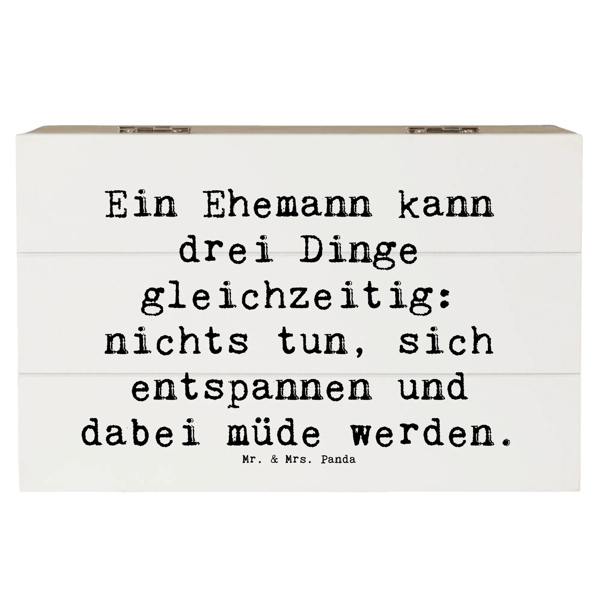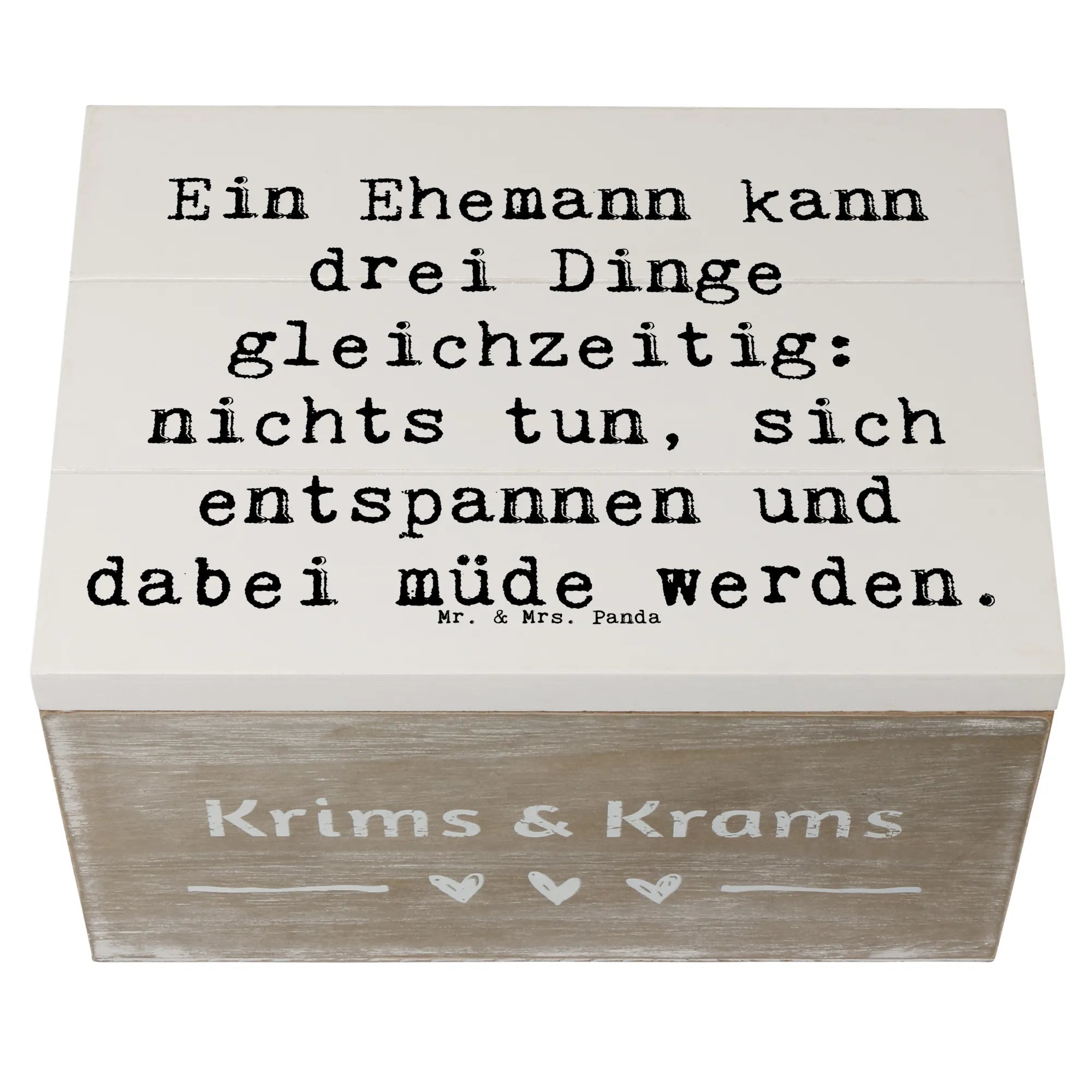 Entdecke die zauberhafte Holzkiste für Ehemänner von Mr. & Mrs. Panda, die nicht nur praktisch, sondern auch ein liebevolles Geschenk ist!