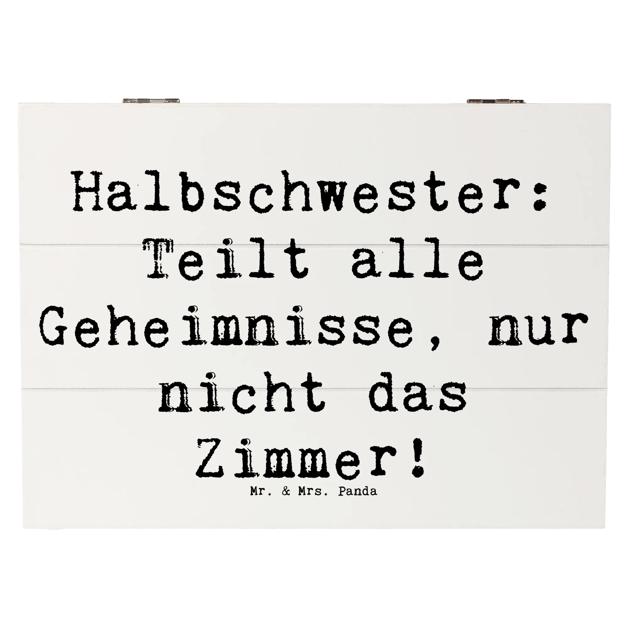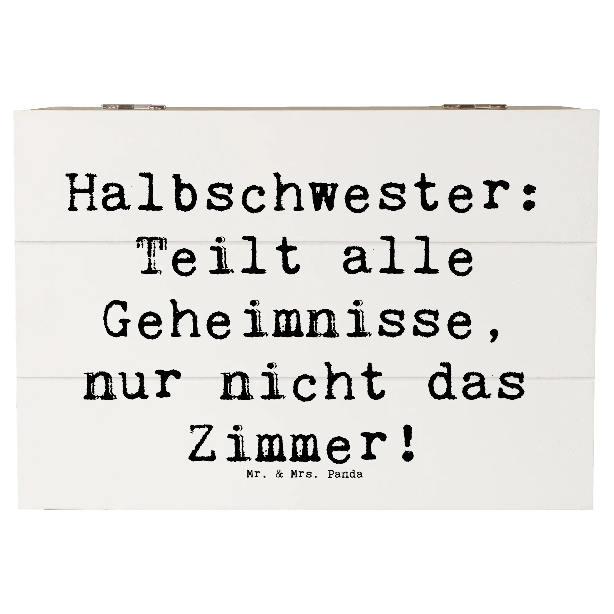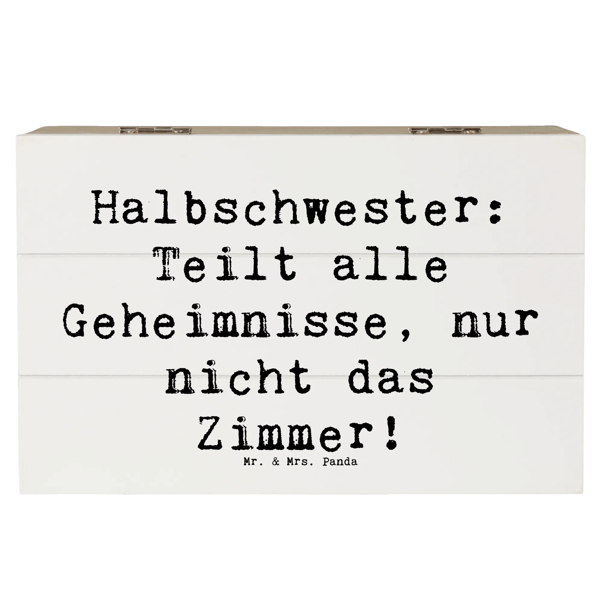 Holzkiste Spruch Halbschwester Geheimnisse - 22 x 15 cm - Weiß