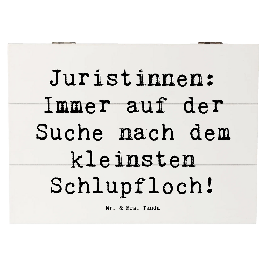 Diese liebevoll illustrierte Holzkiste aus der Berufe-Kollektion von Mr. & Mrs. Panda ist mehr als nur eine Aufbewahrungsbox — sie ist eine kleine Schatzkiste voller Persönlichkeit. Bedruckt mit dem frechen Spruch „Juristinnen: Immer auf der Suche nach dem kleinsten Schlupfloch!“ trifft sie genau den Humor und die Leidenschaft vieler Jurastudentinnen, Referendarinnen, Rechtsanwältinnen oder Richterinnen.
