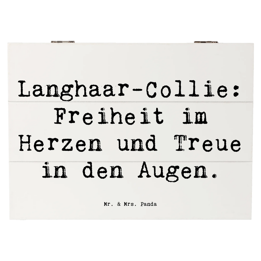 Entdecke die wunderschöne Holzkiste mit dem bezaubernden Motiv des Langhaar-Collies von Mr. & Mrs. Panda! Diese einzigartige Kiste ist nicht nur ein echter Hingucker, sondern auch der perfekte Aufbewahrungsort für all deine wertvollen Schätze. Egal, ob du Erinnerungen aus deiner Kindheit, Fotos von Familienfesten oder besondere Andenken an die Zeit mit deinem treuen Begleiter aufbewahren möchtest – diese Erinnerungskiste bietet dir genügend Platz dafür!