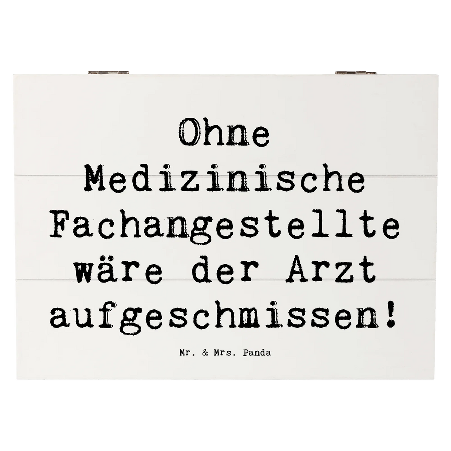 Entdecke die zauberhafte Holzkiste von Mr. & Mrs. Panda, die nicht nur wunderschön aussieht, sondern auch eine Vielzahl von Erinnerungen bewahren kann! Mit dem liebevollen Motiv "Medizinische Fachangestellte" und dem Spruch "Ohne Medizinische Fachangestellte wäre der Arzt aufgeschmissen!" ist diese Kiste das ideale Geschenk für alle, die in diesem wichtigen Berufsfeld tätig sind. Egal ob zur Gratulation, als Abschiedsgeschenk oder einfach nur, um Wertschätzung zu zeigen – diese Holzkiste wird Herzen höher schlagen lassen.