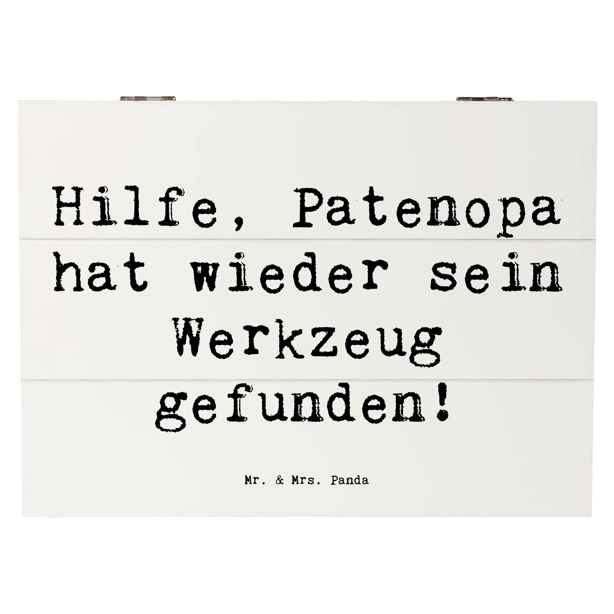 Die wunderschöne Holzkiste von Mr. & Mrs. Panda ist der perfekte Ort, um die Schätze Deines Patenopas zu bewahren. Mit einem charmanten Motiv, das den ganz besonderen Spruch trägt: "Hilfe, Patenopa hat wieder sein Werkzeug gefunden!", ist diese Kiste mehr als nur ein Aufbewahrungsort. Sie erzählt Geschichten, bewahrt Erinnerungen und zeigt Deinem Patenopa, wie viel er dir bedeutet.