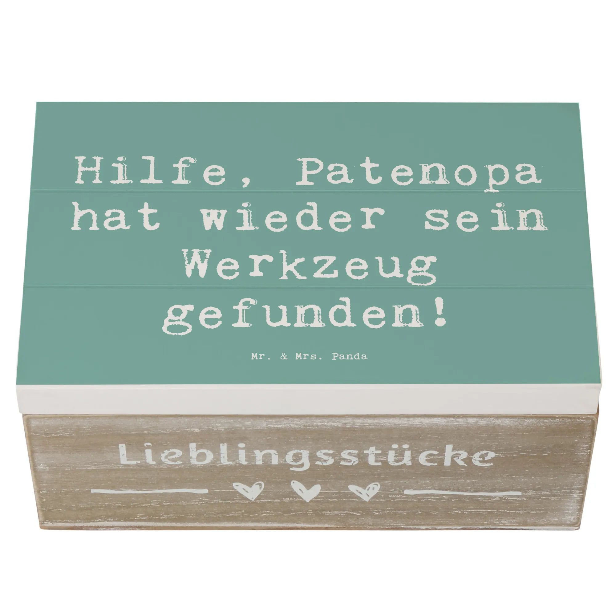 Die wunderschöne Holzkiste von Mr. & Mrs. Panda ist nicht nur eine Aufbewahrungsmöglichkeit, sondern ein wahrhaftiger Schatz für alle Patenopas und ihre Liebsten. Diese liebevoll gestaltete Erinnerungskiste ist das perfekte Geschenk für jeden Anlass. Mit einem charmanten Motiv, das die Rolle des Patenopa feiert, nämlich "Hilfe, Patenopa hat wieder sein Werkzeug gefunden!", ist diese Kiste ein Highlight in jedem Zuhause.