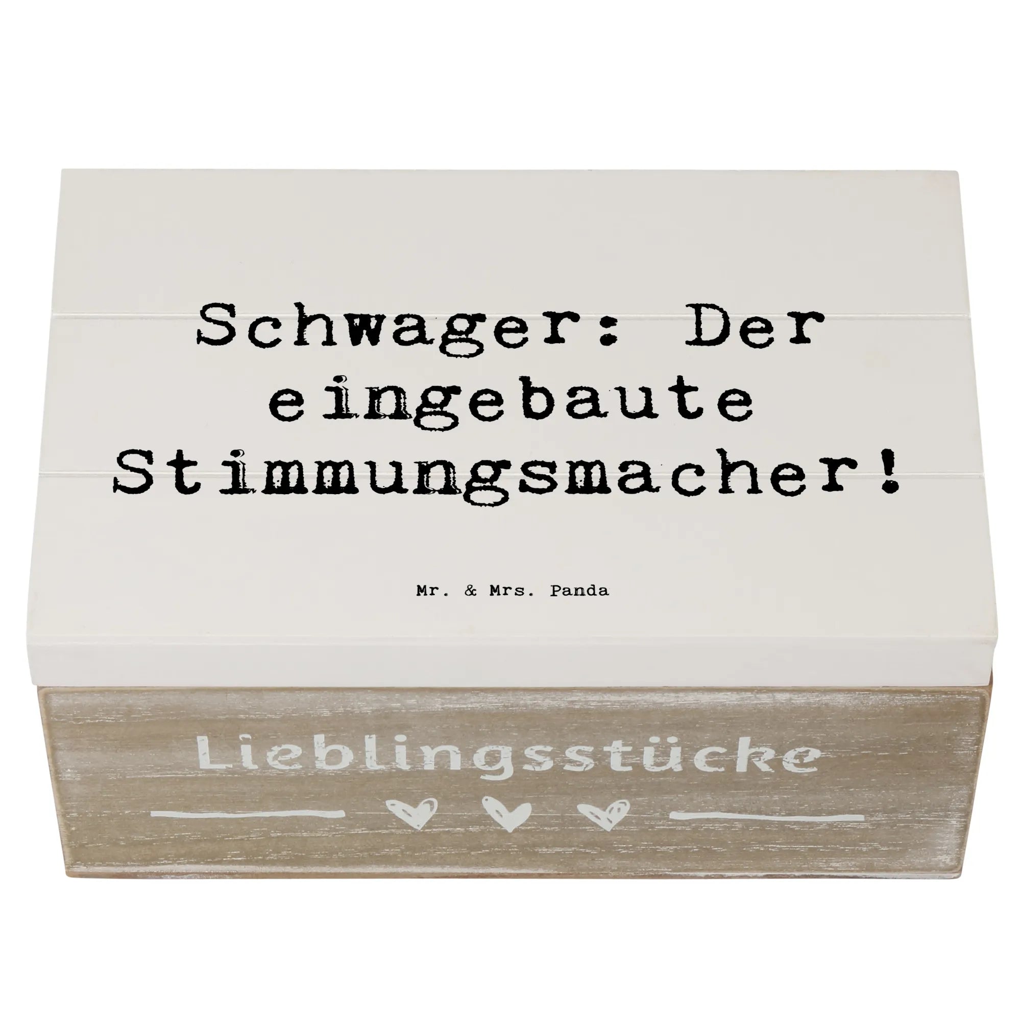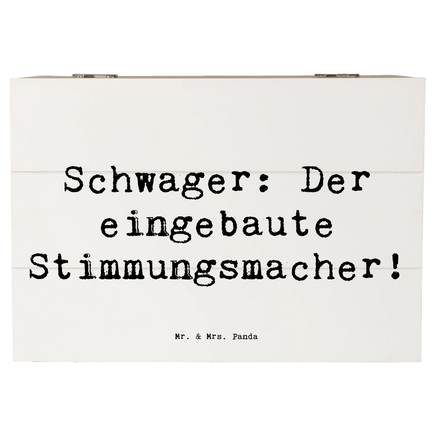 Entdecke die zauberhafte Holzkiste von Mr. & Mrs. Panda – ein perfektes Geschenk für Deinen Schwager! Egal ob zum Geburtstag, zu Feiertagen oder einfach als kleine Aufmerksamkeit: Diese wunderschöne Holzkiste ist mehr als nur ein Aufbewahrungsort. Mit ihrer charmanten Gestaltung und dem liebevollen Spruch "Schwager: Der eingebaute Stimmungsmacher!" wird sie zu einem echten Hingucker und sorgt für gute Laune in der Familie.