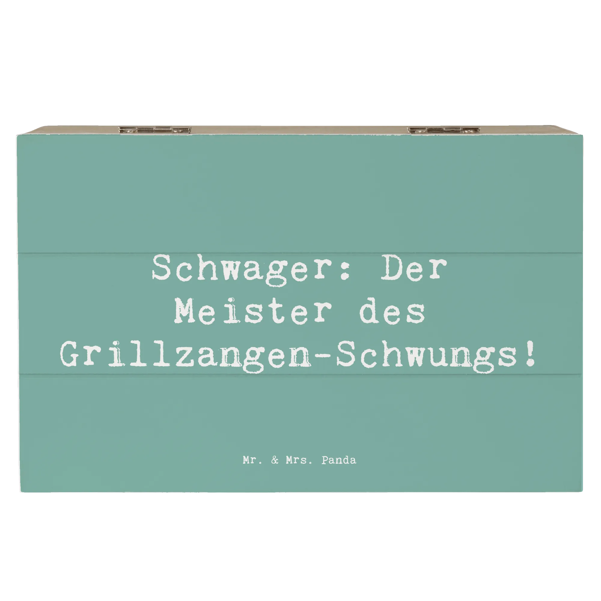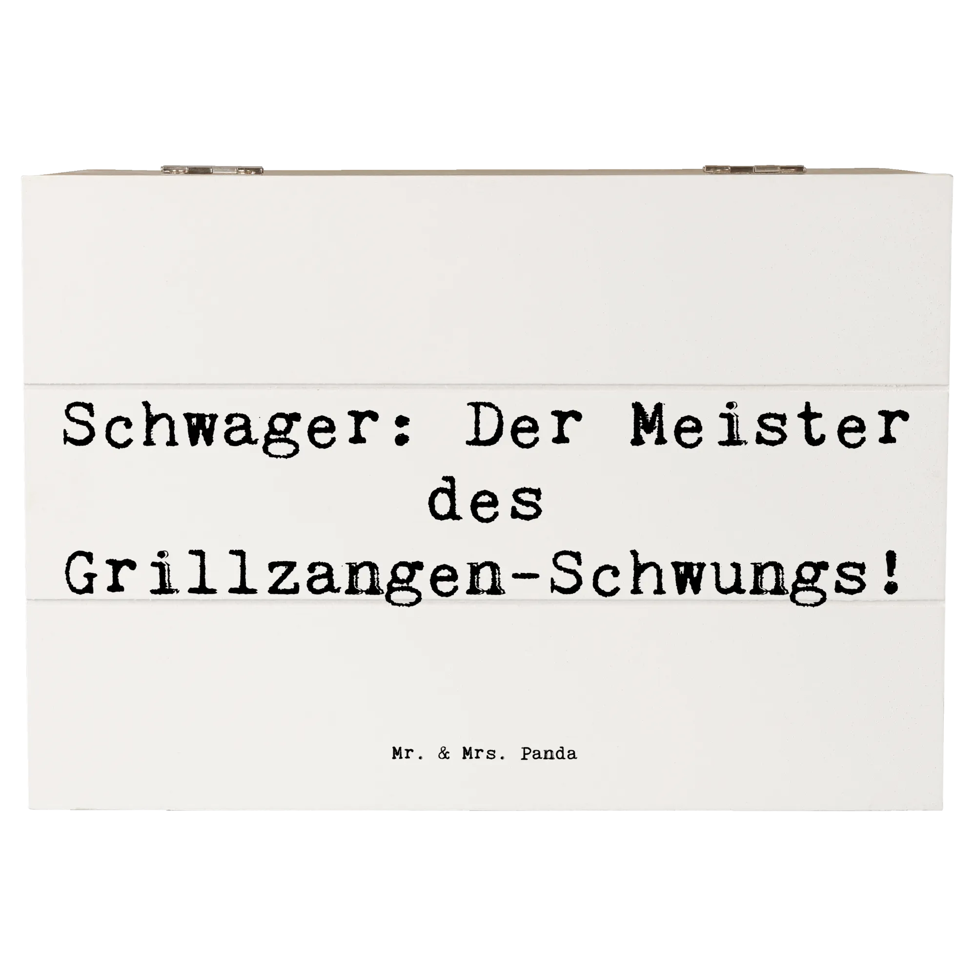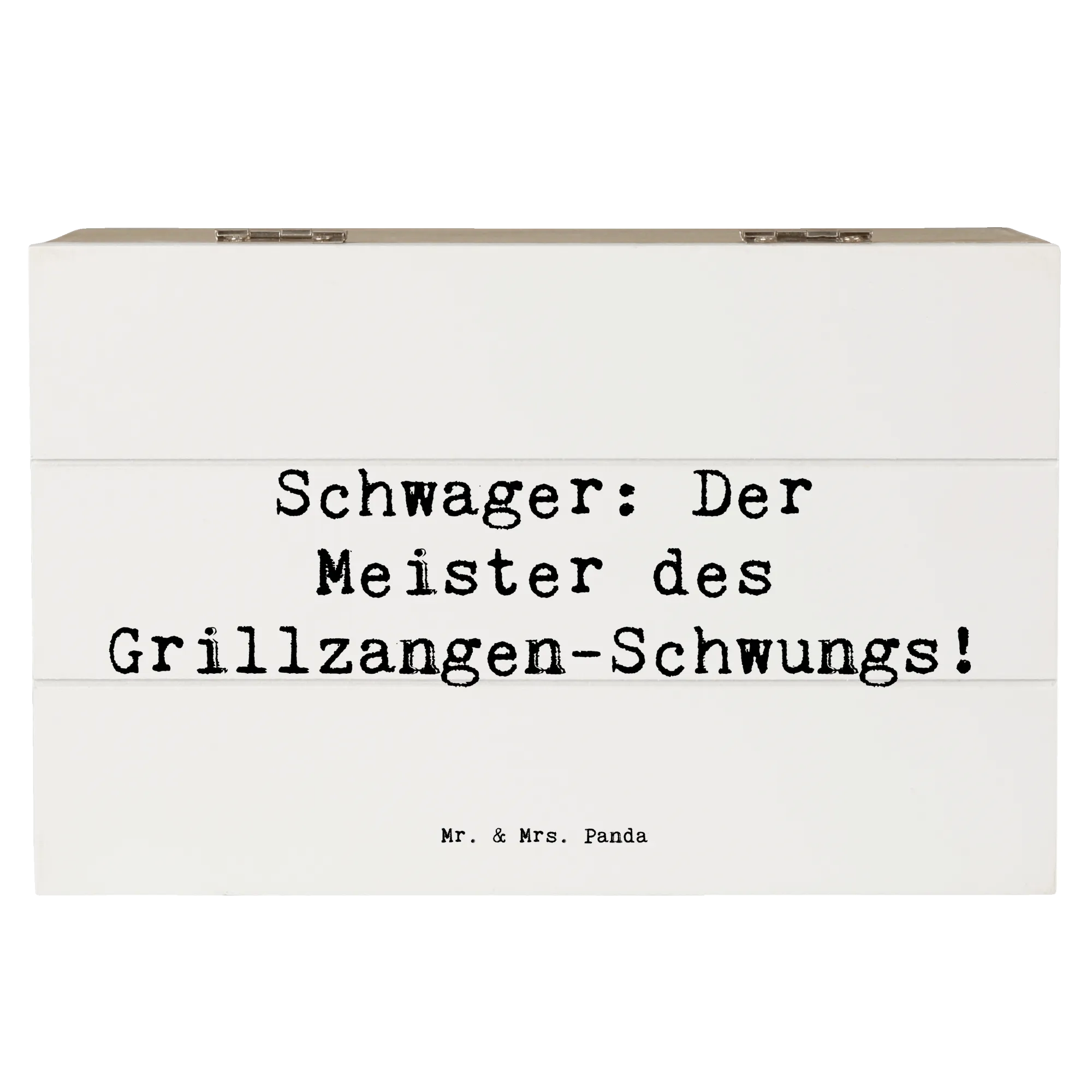 Die Holzkiste "Schwager" von Mr. & Mrs. Panda ist das perfekte Geschenk für alle, die ihren Schwager wertschätzen. Mit einem liebevoll gestalteten Motiv und dem witzigen Spruch "Schwager: Der Meister des Grillzangen-Schwungs!" wird diese Kiste zum echten Hingucker.