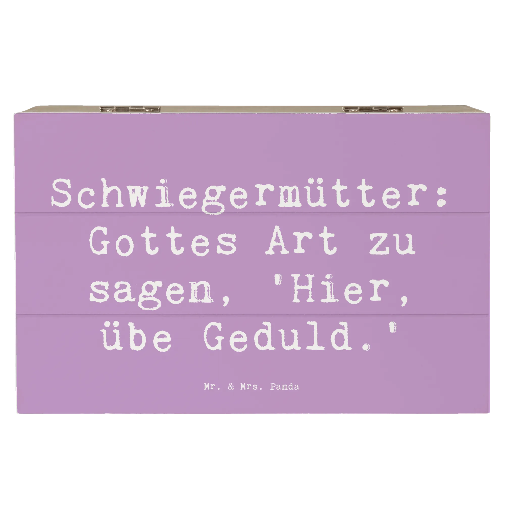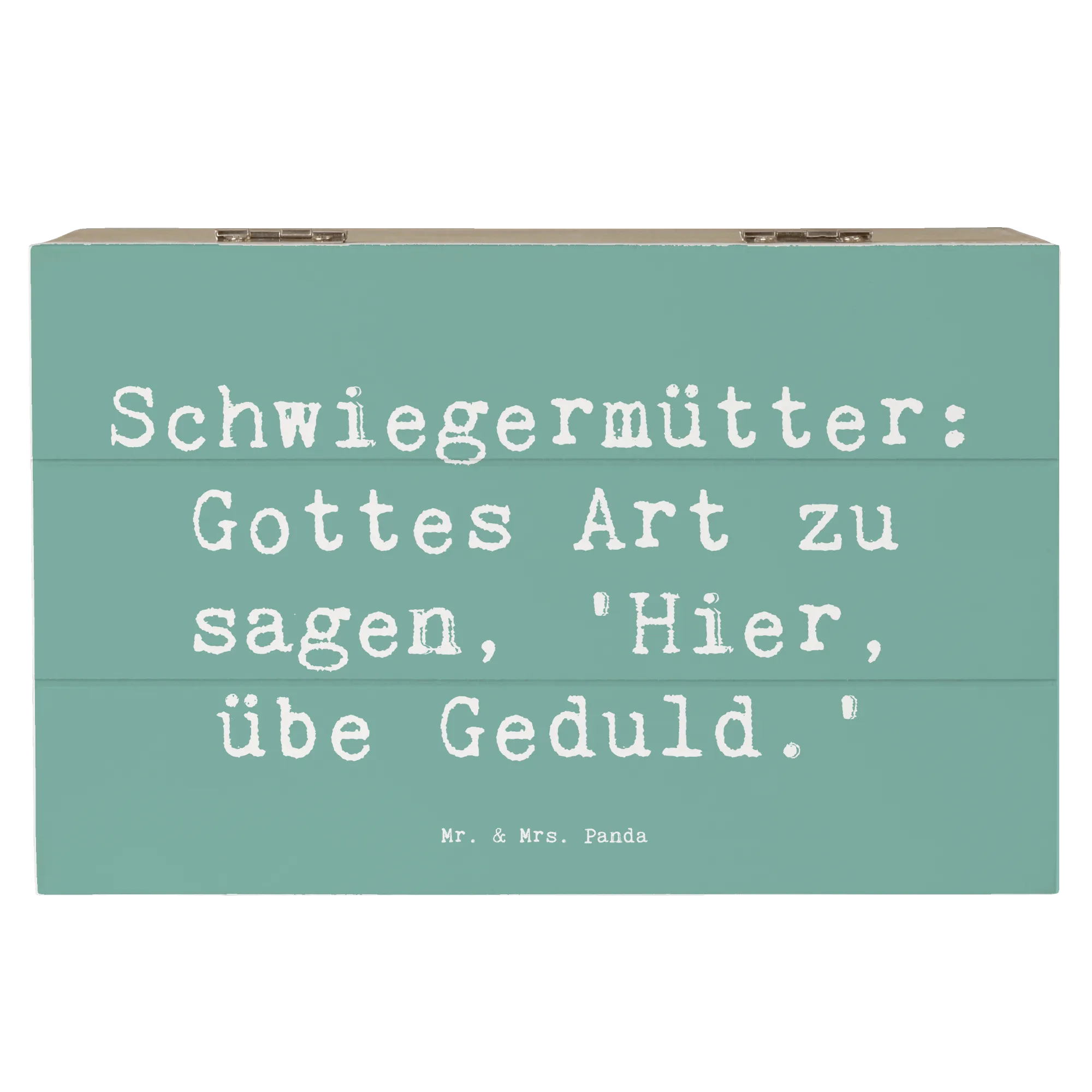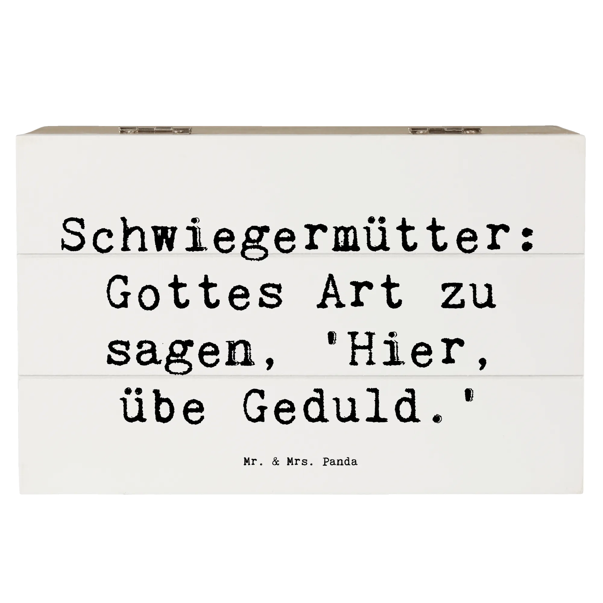Mit einem charmanten Motiv, das die besondere Rolle der Schwiegermutter innerhalb der Familie feiert, ist diese schicke Kiste ein echter Hingucker. Darüber hinaus ist sie mit dem amüsanten Spruch "Schwiegermütter: Gottes Art zu sagen, 'Hier, übe Geduld.'" versehen, der nicht nur schmeichelt, sondern auch für herzliche Lacher sorgt!
