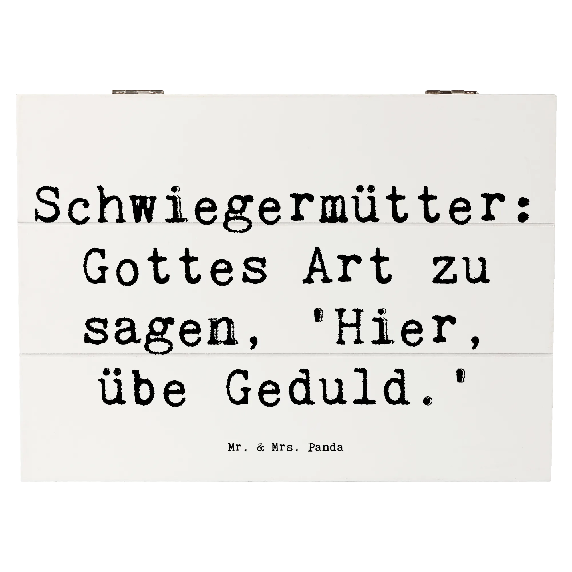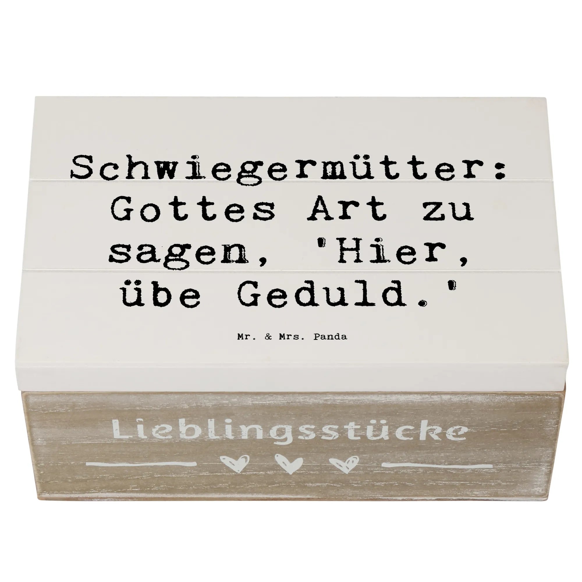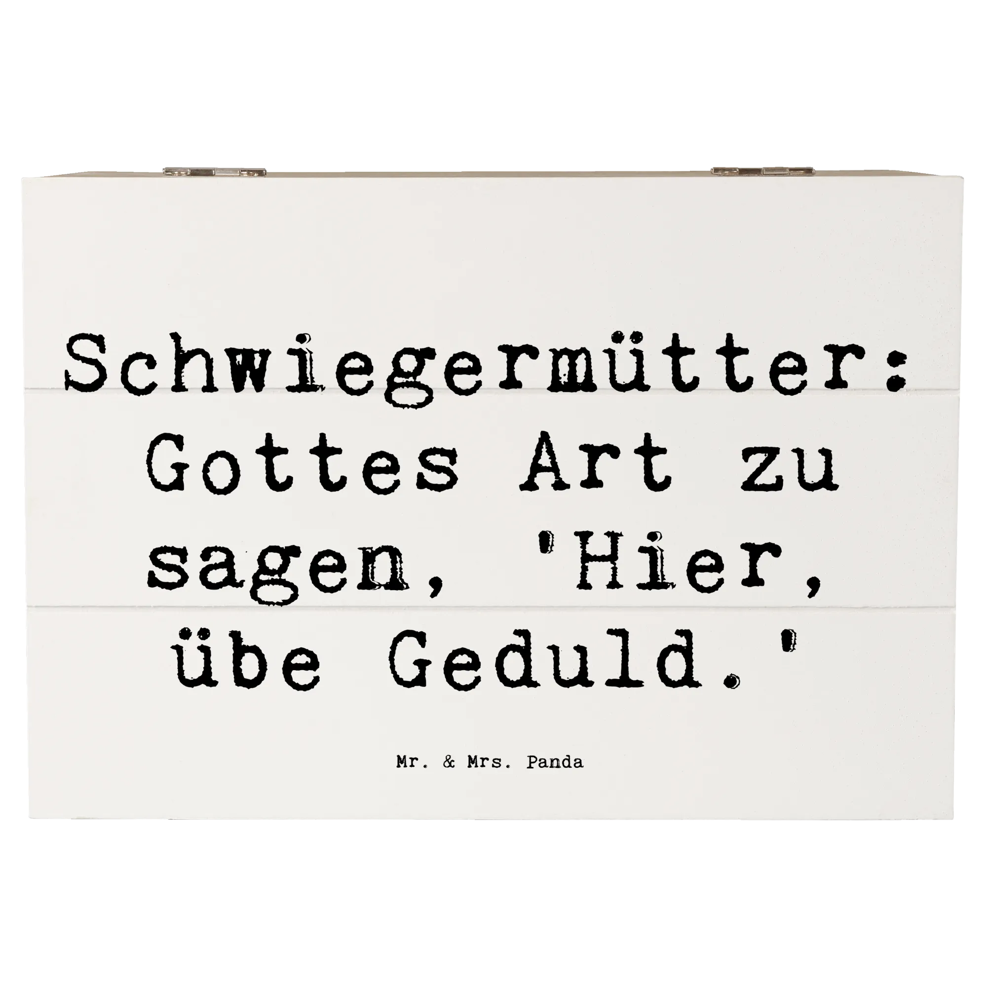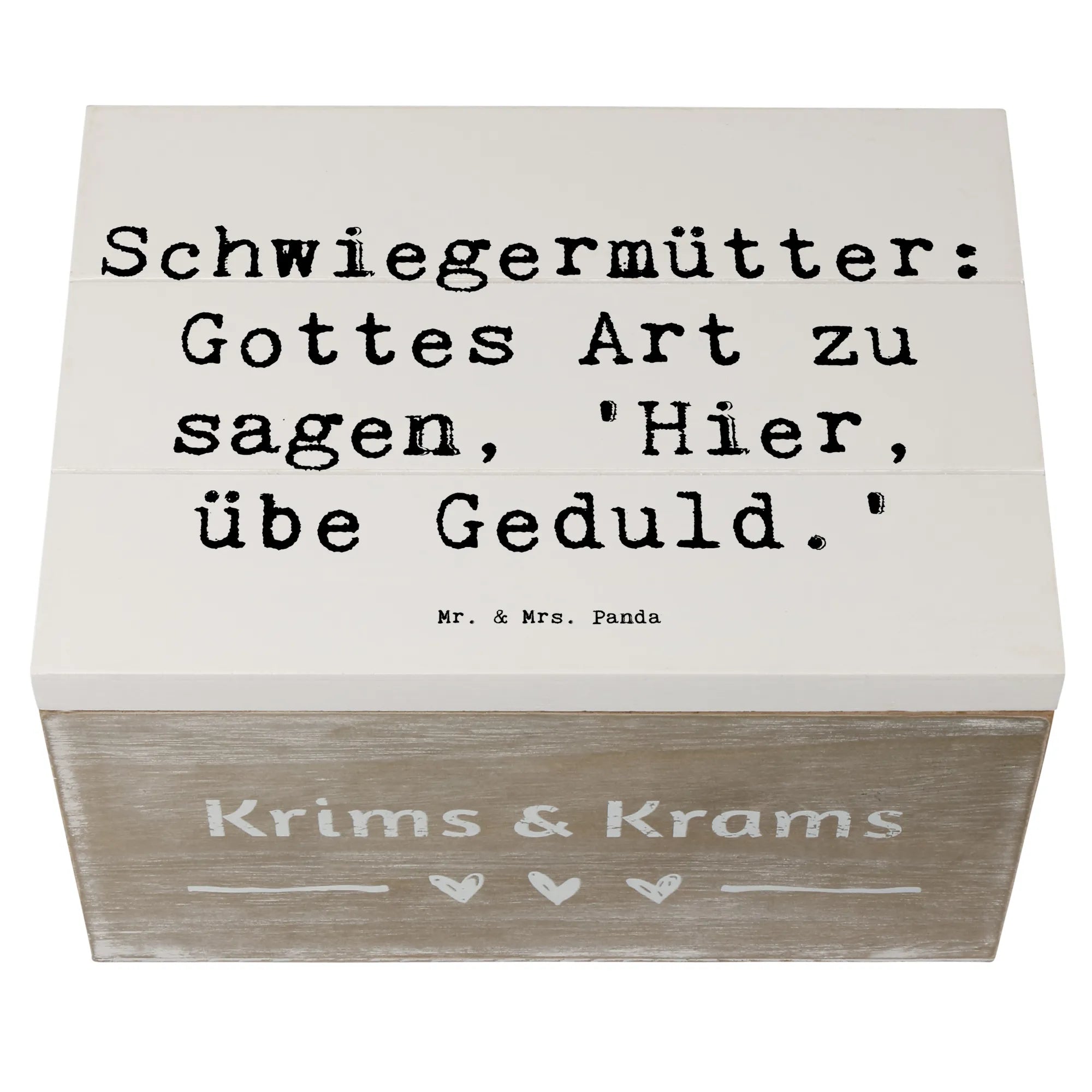 Mit einem charmanten Motiv, das die besondere Rolle der Schwiegermutter innerhalb der Familie feiert, ist diese schicke Kiste ein echter Hingucker. Darüber hinaus ist sie mit dem amüsanten Spruch "Schwiegermütter: Gottes Art zu sagen, 'Hier, übe Geduld.'" versehen, der nicht nur schmeichelt, sondern auch für herzliche Lacher sorgt!