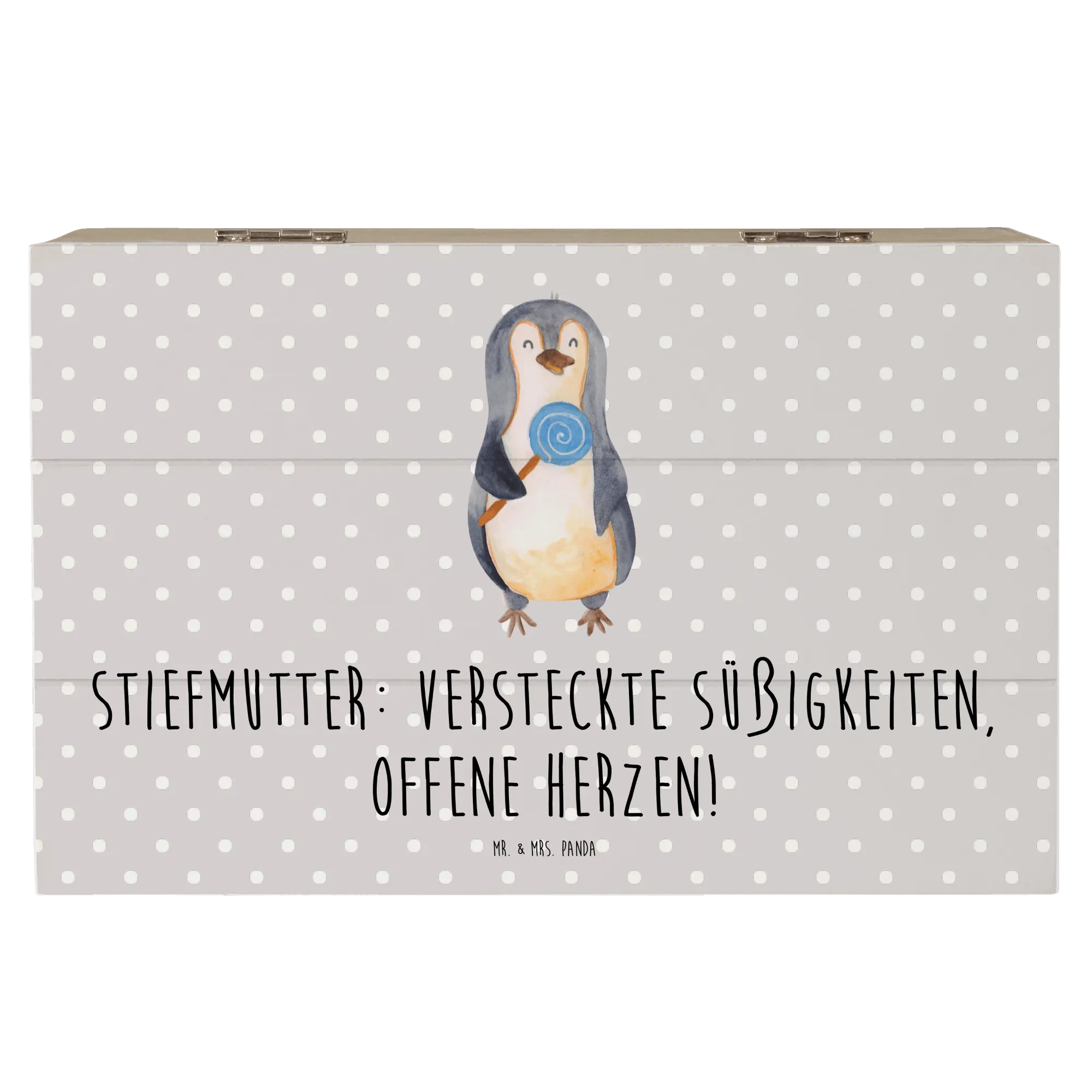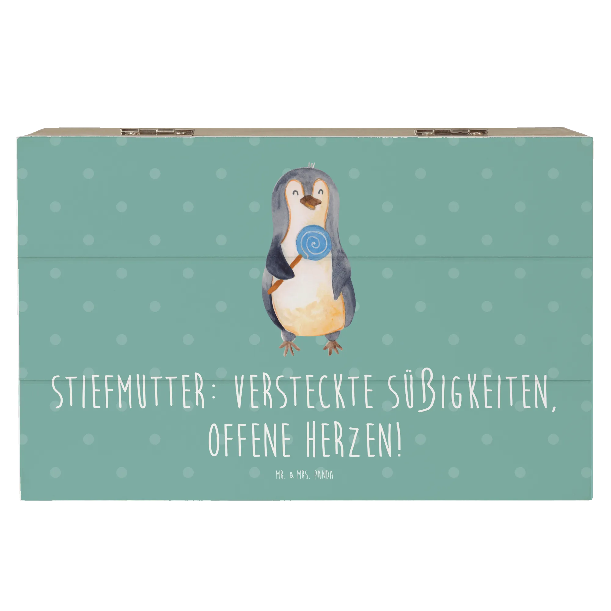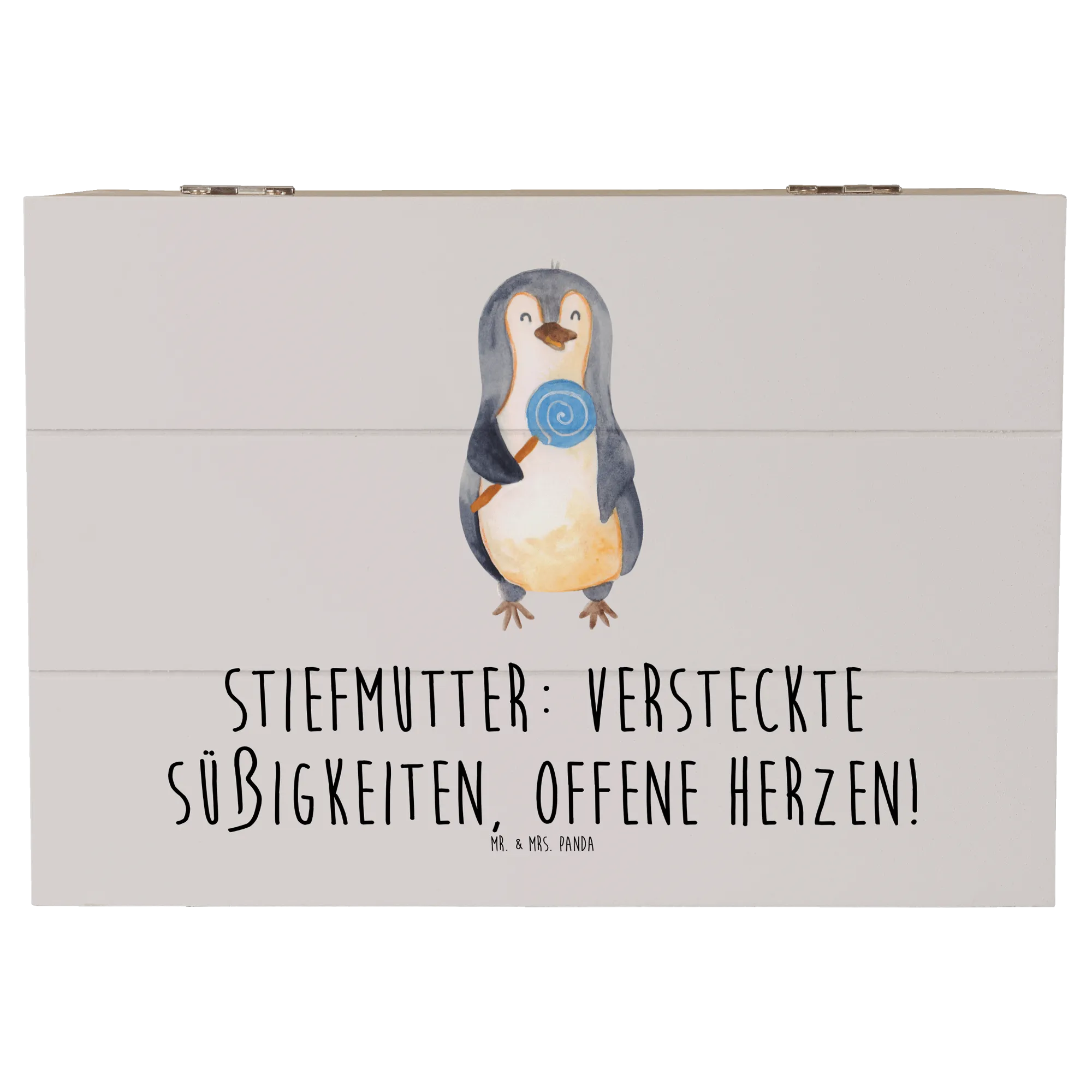 Entdecke die zauberhafte Holzkiste von Mr. & Mrs. Panda mit dem Motif "Stiefmutter: Versteckte Süßigkeiten, offene Herzen!". Diese wunderschöne Kiste ist nicht nur ein praktischer Aufbewahrungsort für all deine besonderen Schätze, sondern auch eine liebevolle Erinnerungskiste für viele festliche Anlässe. Egal ob zur Kommunion, Konfirmation oder einfach nur, um Fotos und Andenken aufzubewahren – diese Holzkiste ist vielseitig einsetzbar.