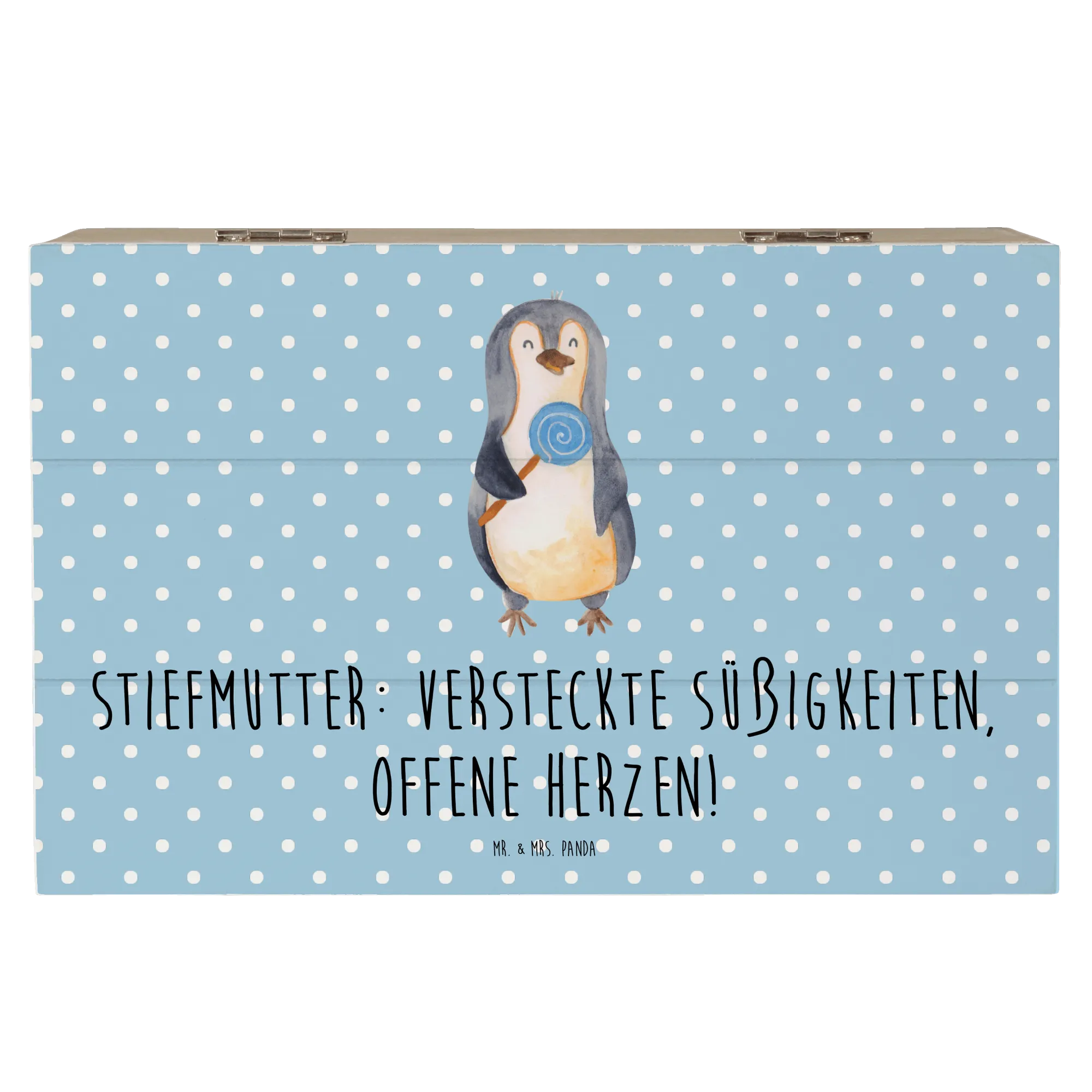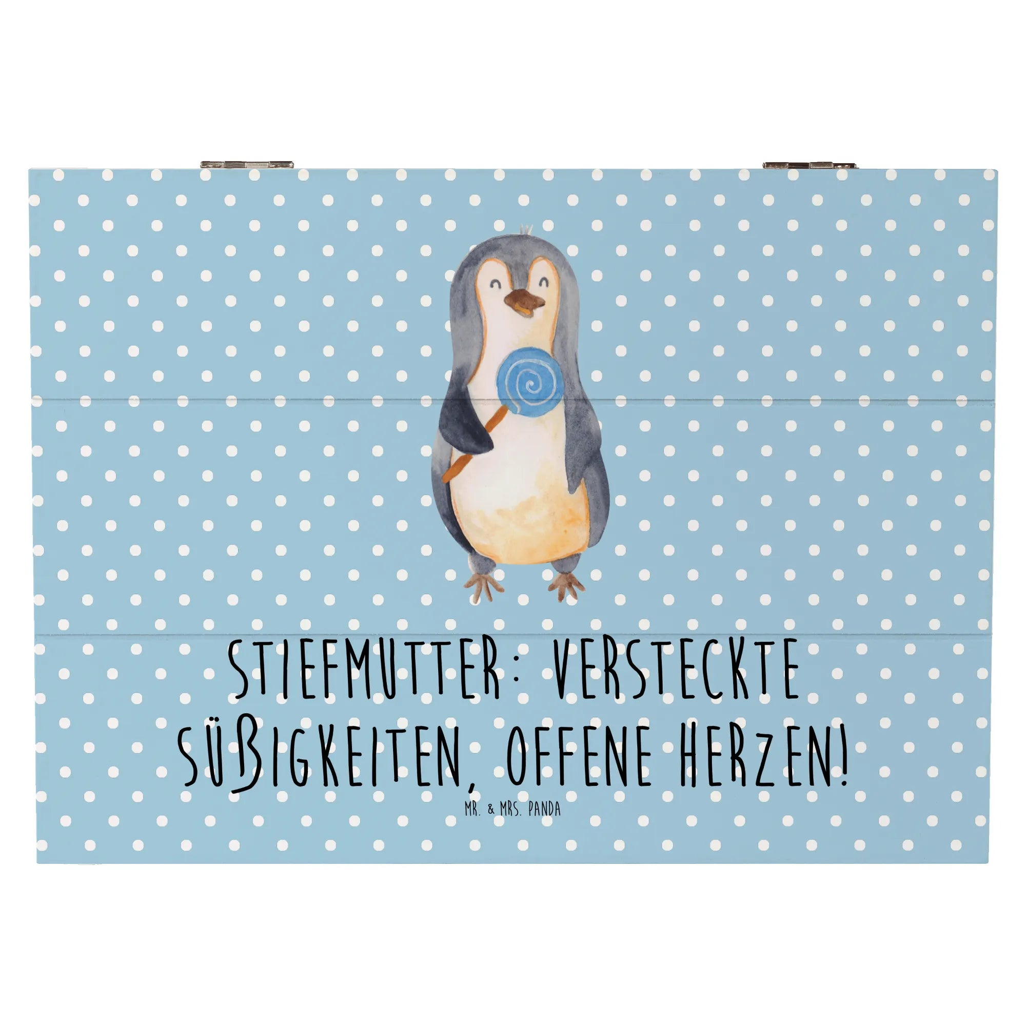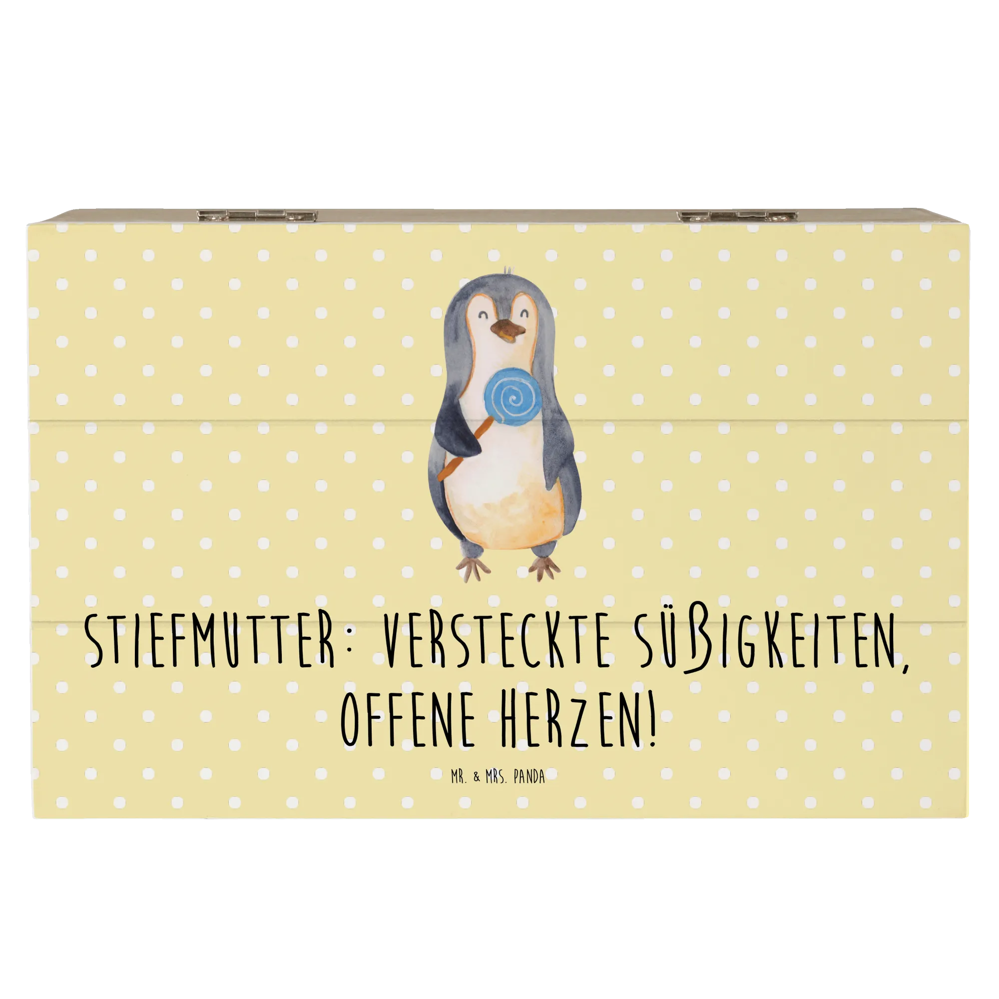 Entdecke die zauberhafte Holzkiste von Mr. & Mrs. Panda mit dem Motif "Stiefmutter: Versteckte Süßigkeiten, offene Herzen!". Diese wunderschöne Kiste ist nicht nur ein praktischer Aufbewahrungsort für all deine besonderen Schätze, sondern auch eine liebevolle Erinnerungskiste für viele festliche Anlässe. Egal ob zur Kommunion, Konfirmation oder einfach nur, um Fotos und Andenken aufzubewahren – diese Holzkiste ist vielseitig einsetzbar.