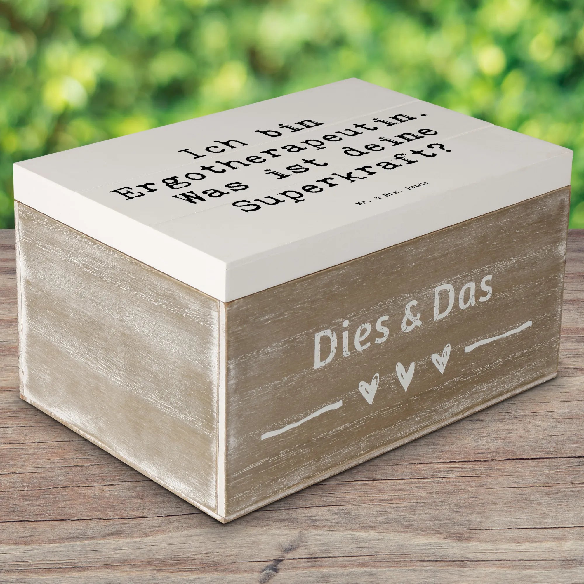 Die Holzkiste "Ich bin Ergotherapeutin. Was ist deine Superkraft?" von Mr. & Mrs. Panda ist das perfekte Geschenk für Ergotherapeuten und Ergotherapeutinnen! Diese wunderschöne Kiste ist nicht nur praktisch, sondern auch ein echtes Schmuckstück. Mit ihren liebevollen Motiven und dem einladenden Spruch bringt sie Freude und Wertschätzung in jeden Raum.