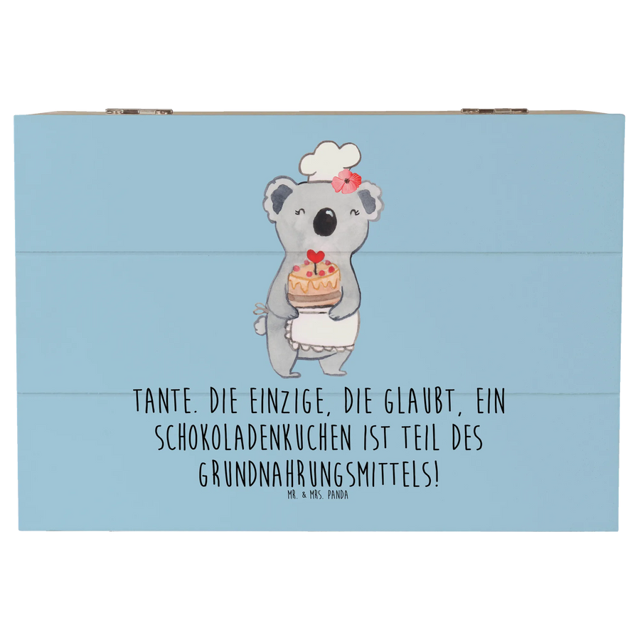Die wunderschöne Holzkiste von Mr. & Mrs. Panda ist das perfekte Geschenk für Deine liebe Tante. Mit dem charmanten Spruch "Tante. Die einzige, die glaubt, ein Schokoladenkuchen ist Teil des Grundnahrungsmittels!" bringt diese Kiste ein Lächeln auf ihr Gesicht.