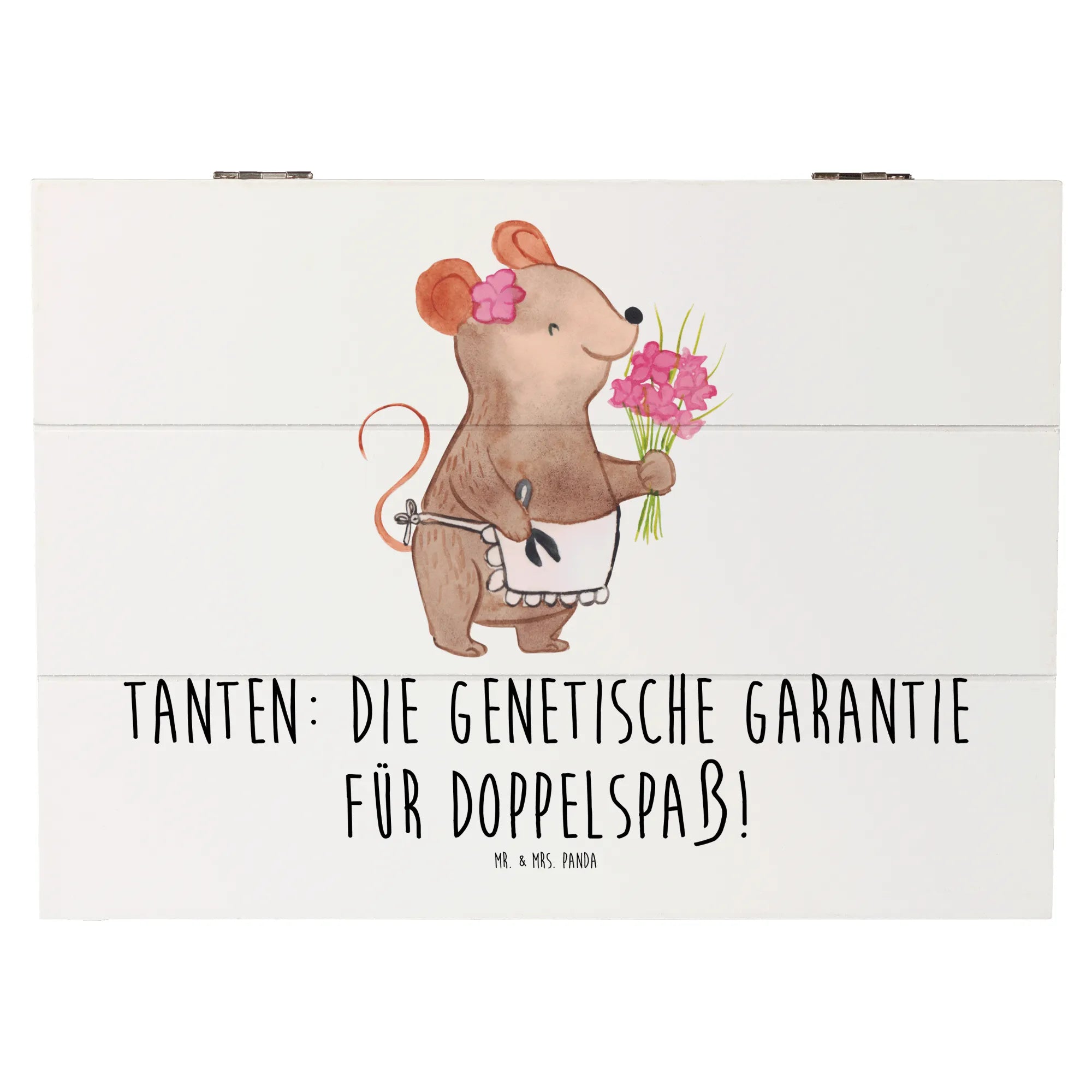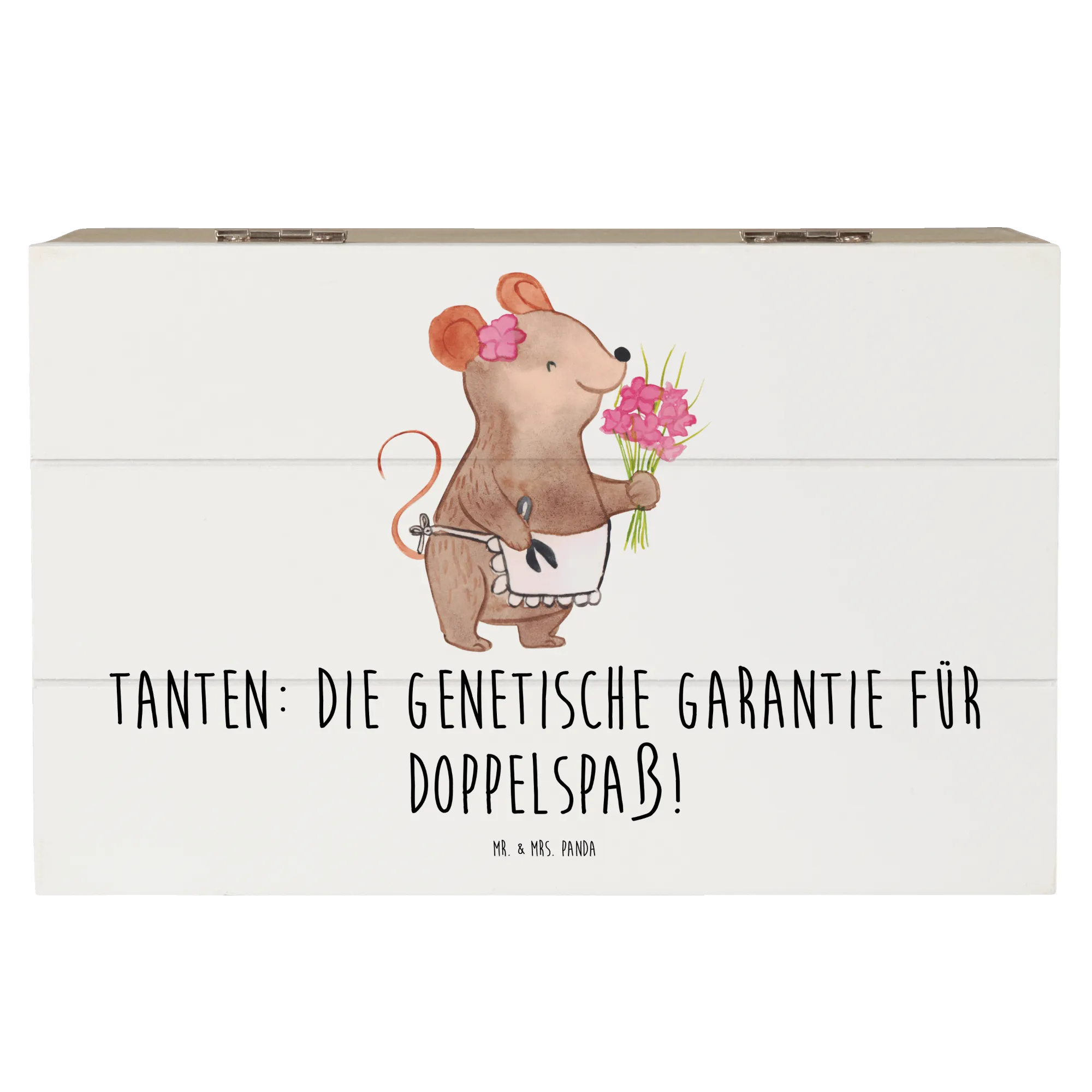 Zeige deiner Tante, wie wertvoll sie für dich ist, und schenke ihr diese besondere Holzkiste, die mit Liebe und Sorgfalt von Mr. & Mrs. Panda gestaltet wurde.