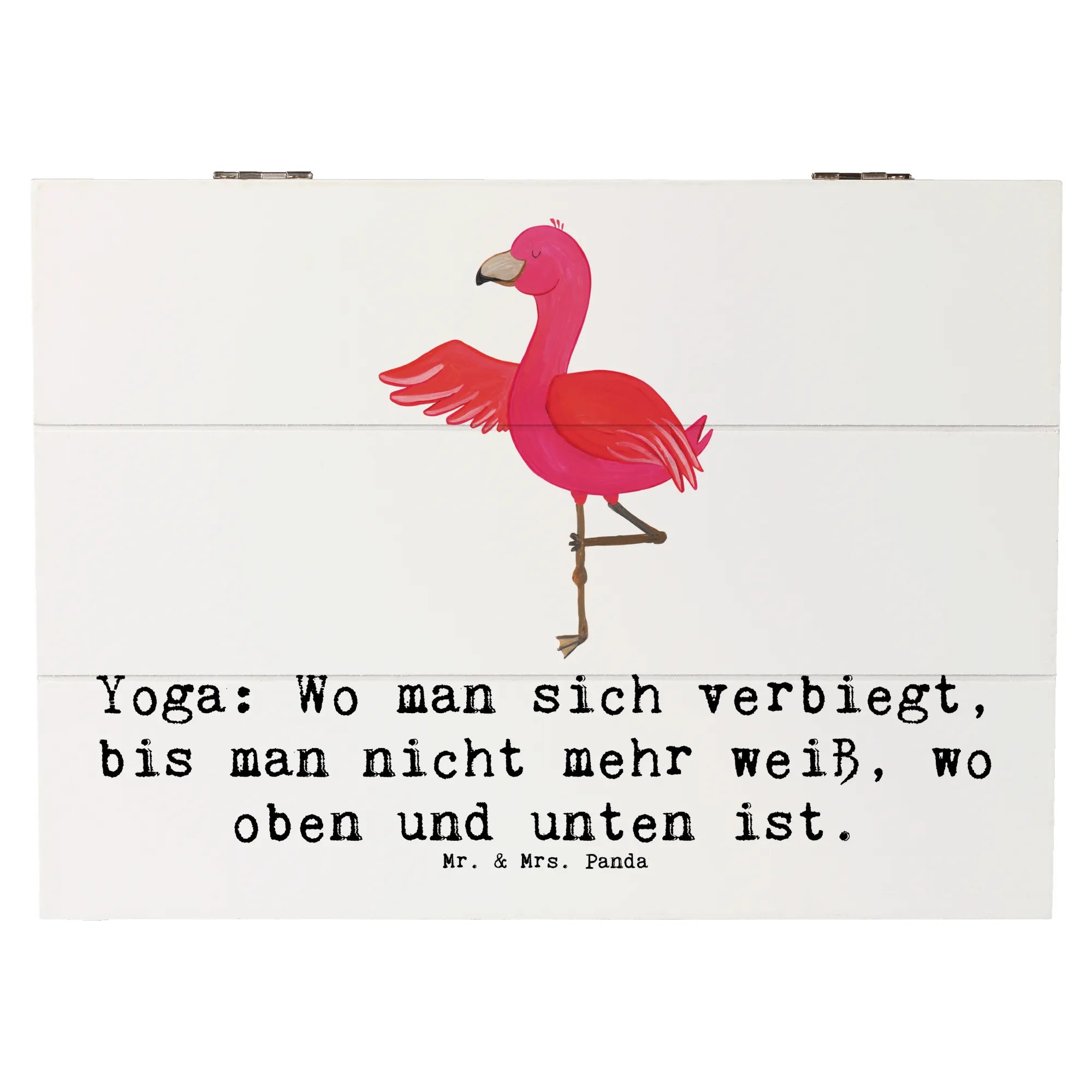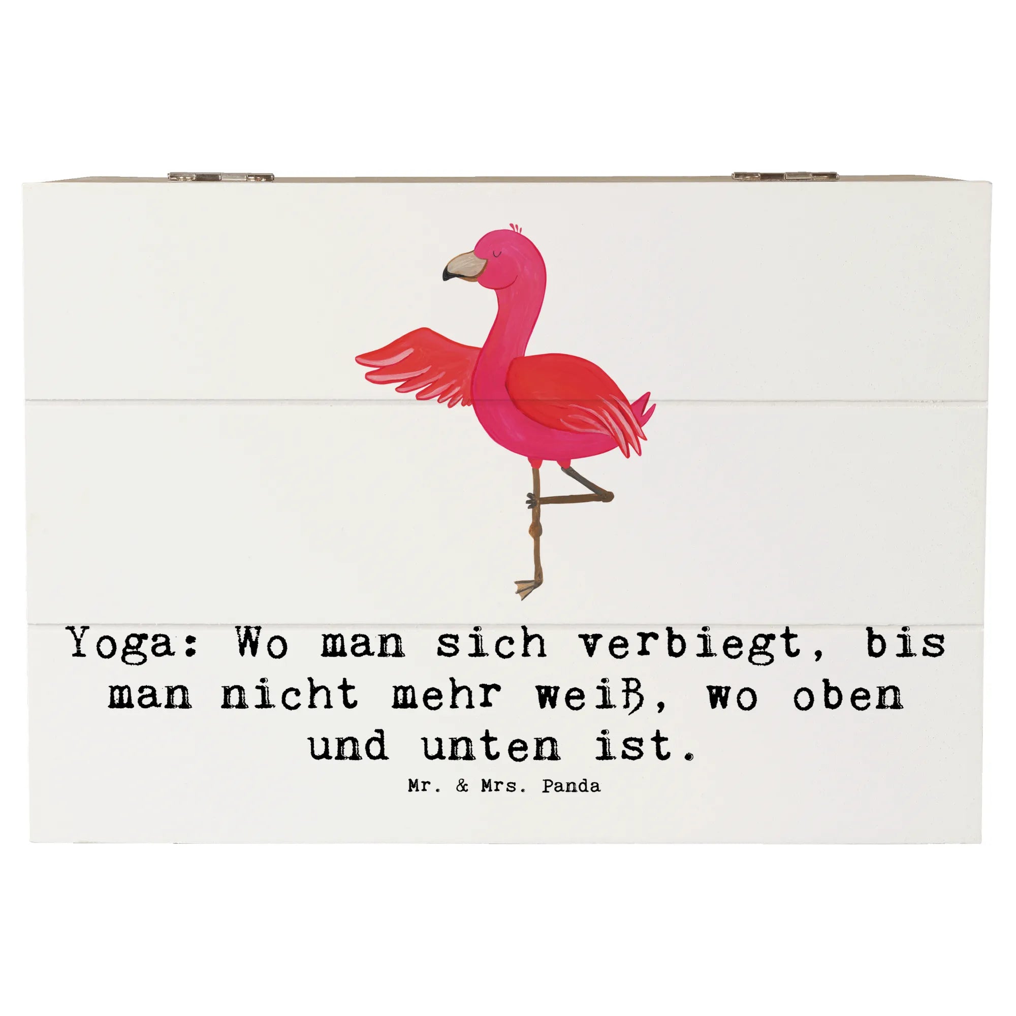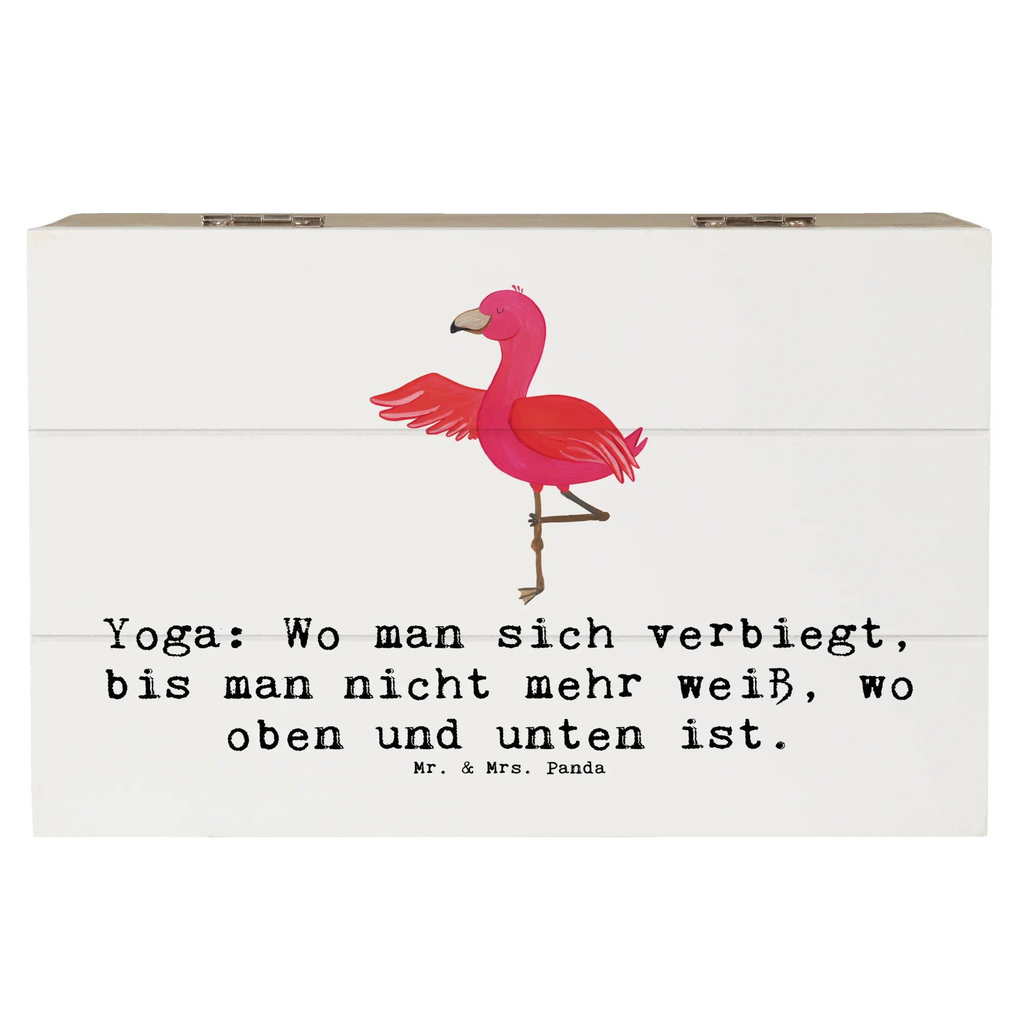 Das einzigartige Design mit dem fröhlichen Yoga-Motiv bringt Freude und Inspiration in jeden Raum. Schaffe dir Platz für all die schönen Erinnerungen an deine sportlichen Erlebnisse und besonderen Momente im Leben. Die Holzkiste von Mr. & Mrs. Panda kann auch als Dekokiste aufgestellt werden – ideal, um deinem Zuhause einen persönlichen Touch zu verleihen.