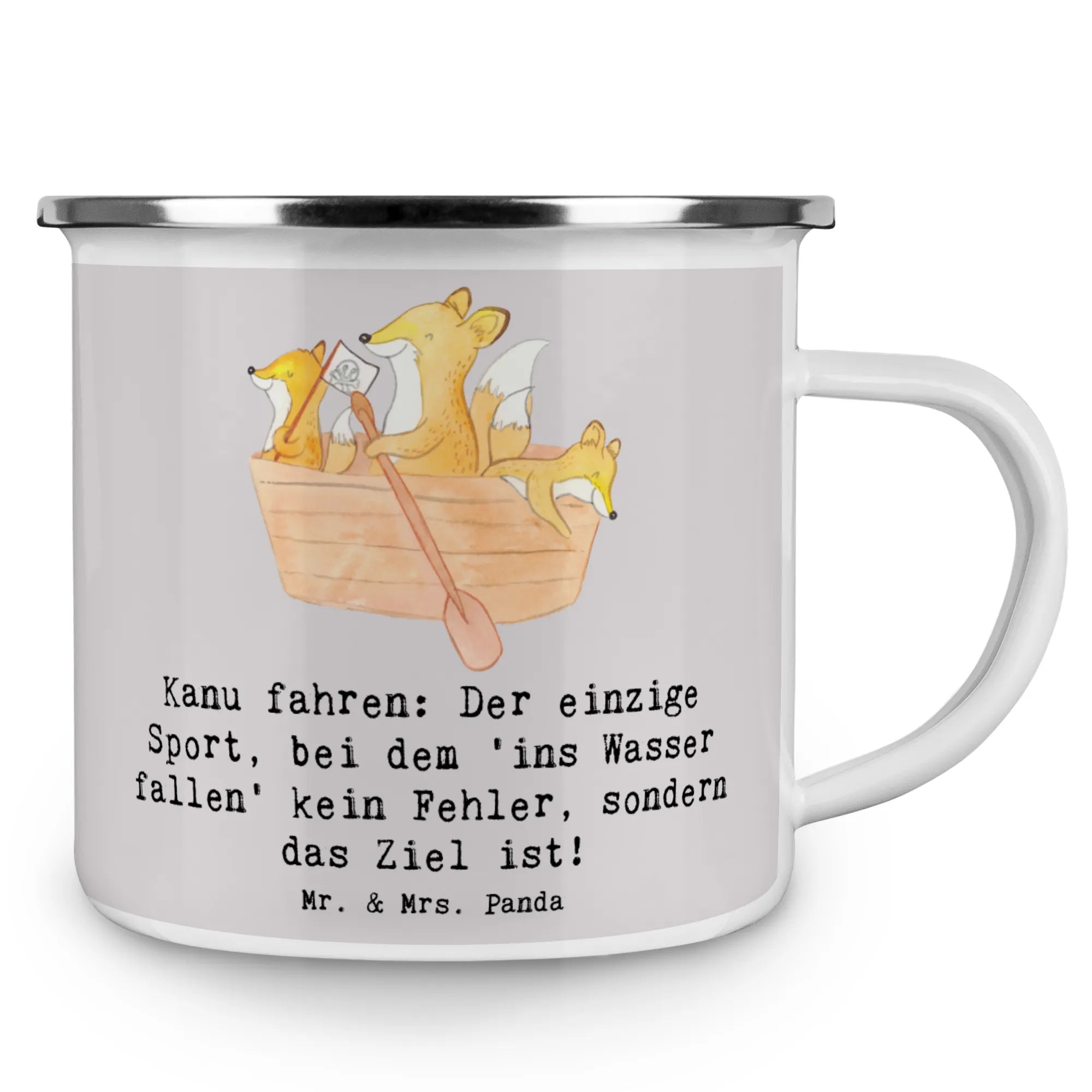 Entdecke die perfekte Camping Emaille Tasse von Mr. & Mrs. Panda mit dem liebevollen Motiv "Kanu fahren: Der einzige Sport, bei dem 'ins Wasser fallen' kein Fehler, sondern das Ziel ist!" Diese wunderschöne und robuste Tasse ist nicht nur ein echter Hingucker, sondern auch super praktisch für all deine Abenteuer im Freien!