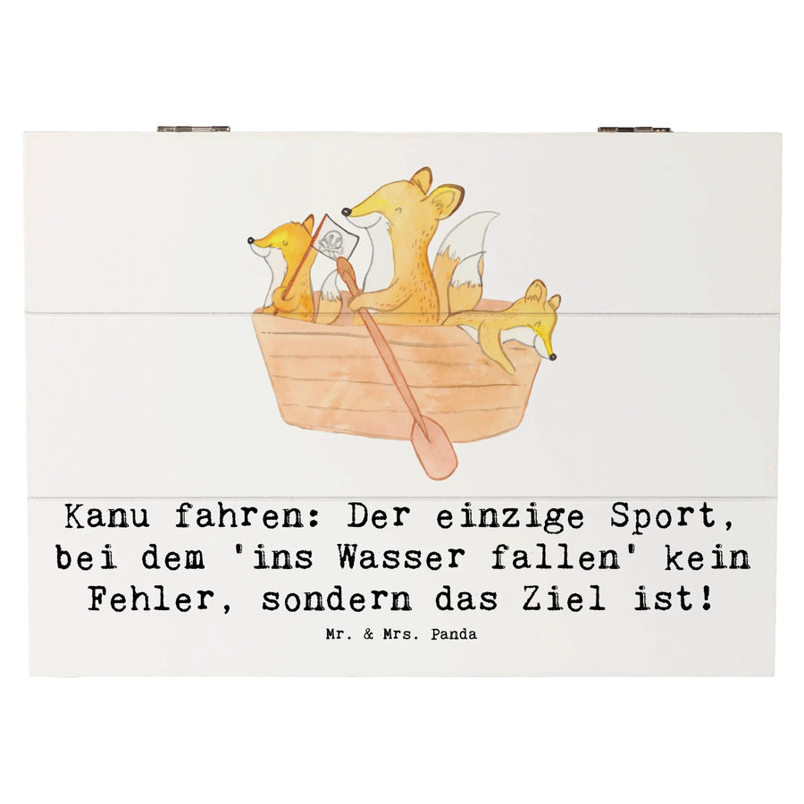 Entdecke die wundervolle Holzkiste mit Kanu-Motiv von Mr. & Mrs. Panda, die perfekt für jeden Sportliebhaber ist! Diese wunderschöne Kiste ist eine echte Schatzkiste für all deine Erinnerungen und persönlichen Schätze.