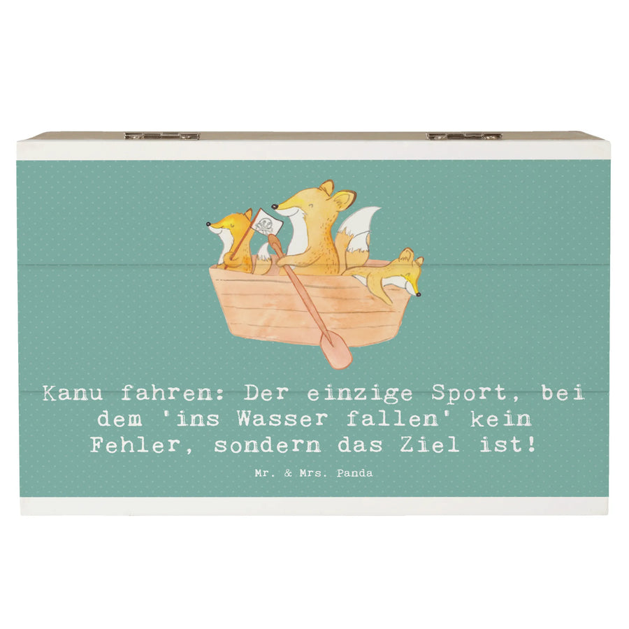 Entdecke die wundervolle Holzkiste mit Kanu-Motiv von Mr. & Mrs. Panda, die perfekt für jeden Sportliebhaber ist! Diese wunderschöne Kiste ist eine echte Schatzkiste für all deine Erinnerungen und persönlichen Schätze.