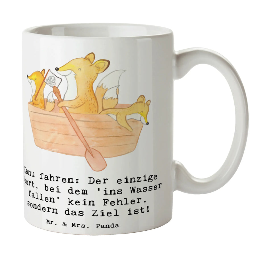 Die liebevolle Kaffeetasse "Kanu fahren: Der einzige Sport, bei dem 'ins Wasser fallen' kein Fehler, sondern das Ziel ist!" von Mr. & Mrs. Panda ist das perfekte Geschenk für alle Kanu-Enthusiasten! Diese wunderschöne spülmaschinenfeste Keramiktasse mit einer Füllmenge von 325 ml ist ideal für deinen täglichen Kaffee oder Tee.