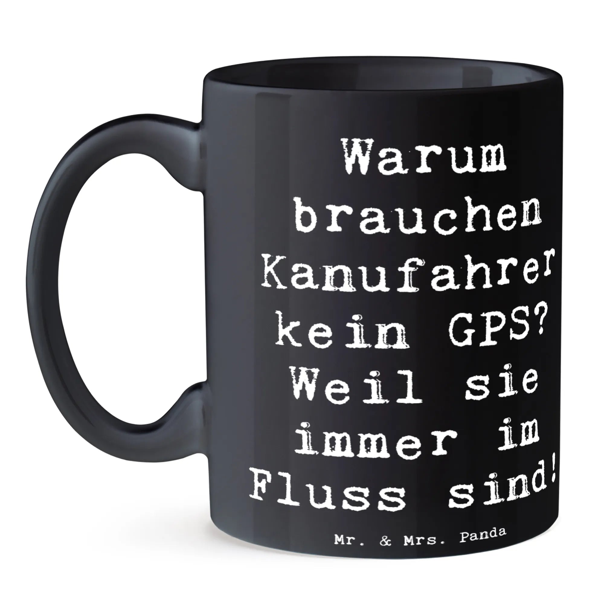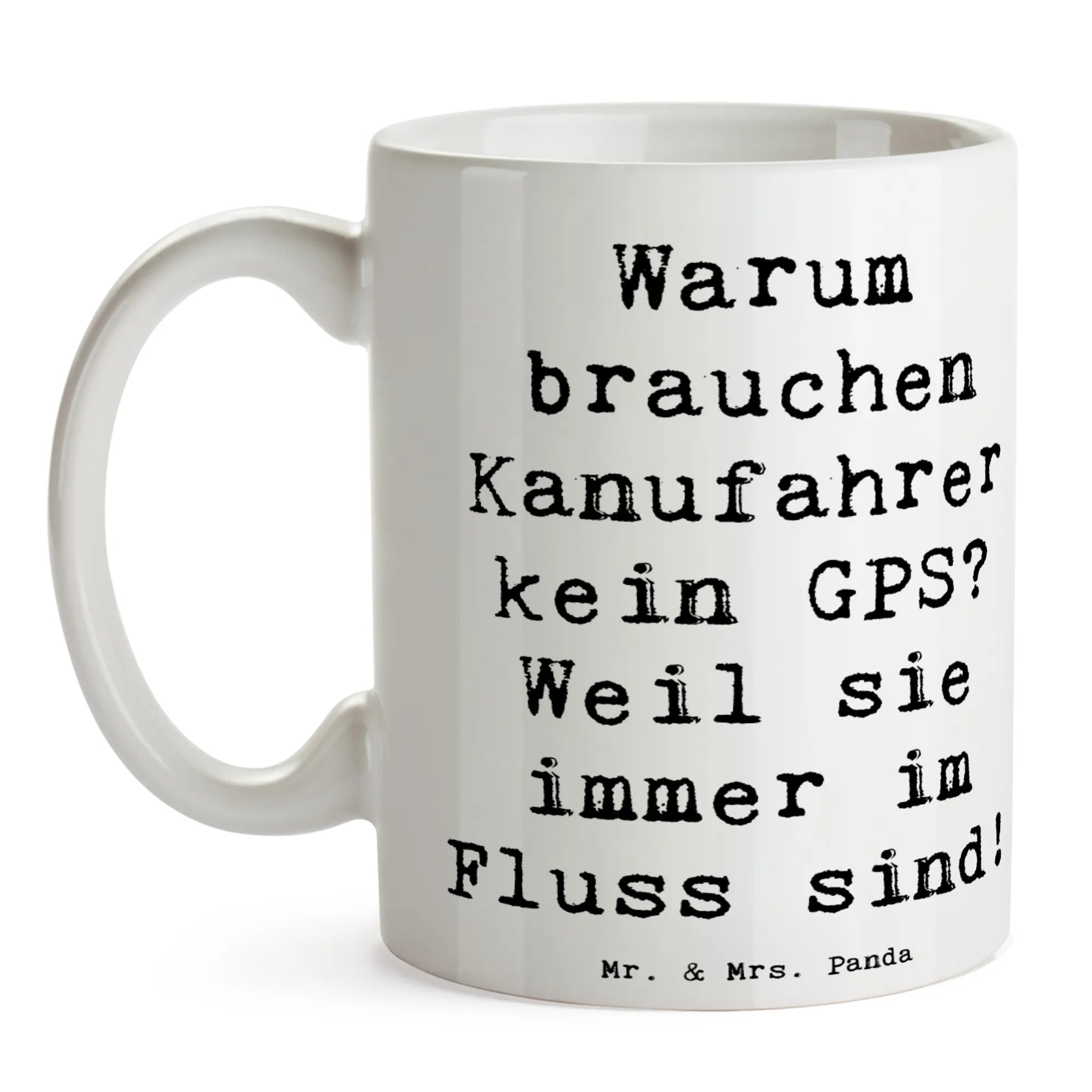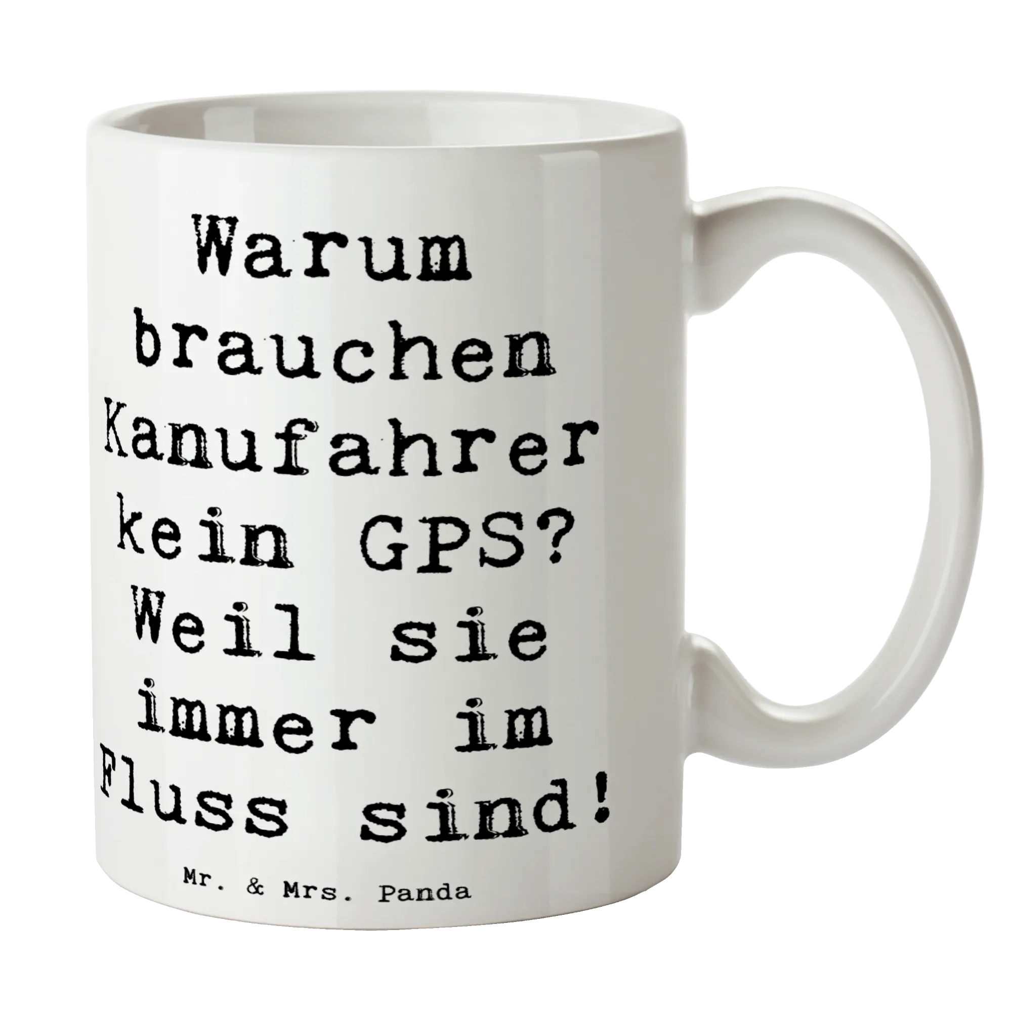 Entdecke die perfekte Kaffeetasse für alle Kanu-Fans – die wundervolle Keramiktasse von Mr. & Mrs. Panda! Diese exquisite Tasse ist mit dem liebevollen Motiv 'Warum brauchen Kanufahrer kein GPS? Weil sie immer im Fluss sind!' bedruckt und bringt garantiert ein Lächeln auf dein Gesicht.