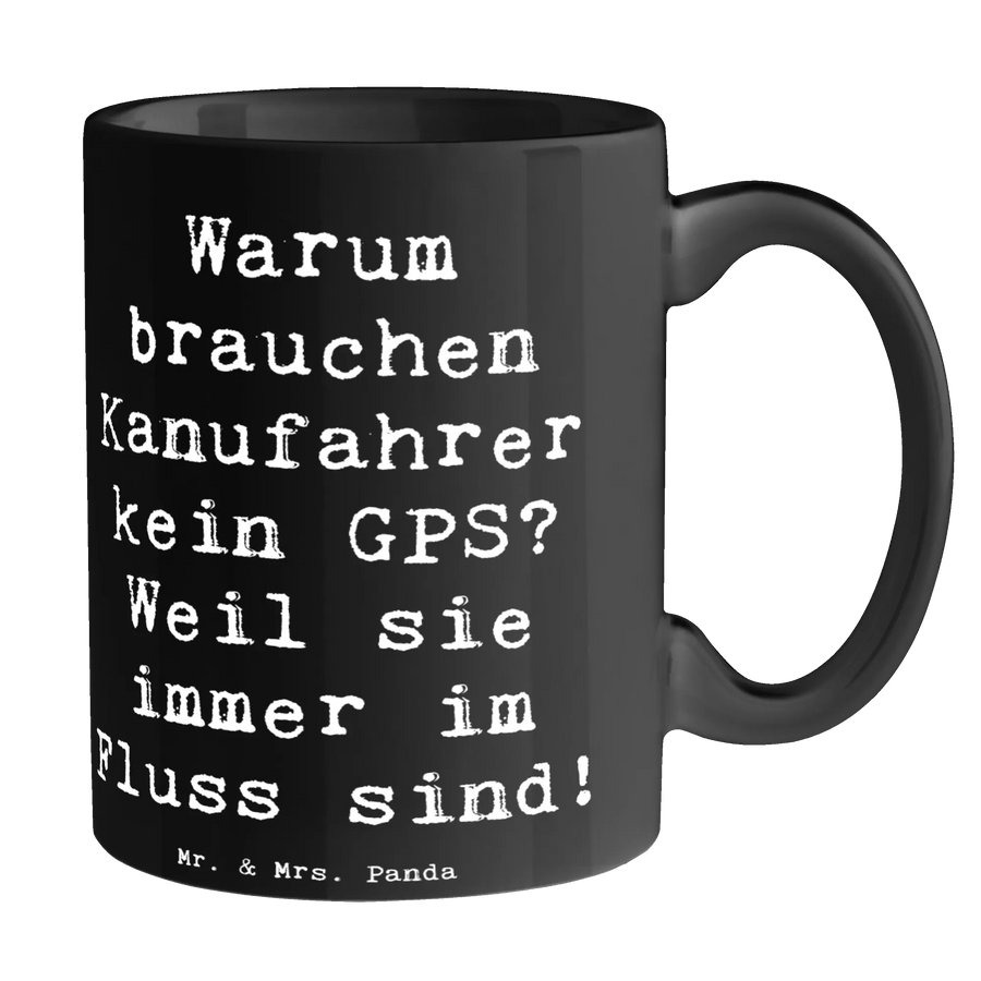 Entdecke die perfekte Kaffeetasse für alle Kanu-Fans – die wundervolle Keramiktasse von Mr. & Mrs. Panda! Diese exquisite Tasse ist mit dem liebevollen Motiv 'Warum brauchen Kanufahrer kein GPS? Weil sie immer im Fluss sind!' bedruckt und bringt garantiert ein Lächeln auf dein Gesicht.