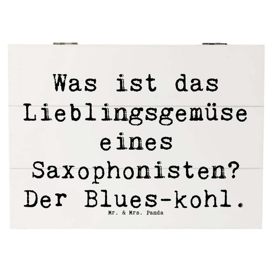Die wunderschöne Holzkiste von Mr. & Mrs. Panda mit dem einzigartigen Saxophon-Motiv ist das perfekte Geschenk für alle Musikliebhaber und -enthusiasten! Egal, ob Du selbst Musiker bist oder jemanden kennst, der es werden möchte – Diese Kiste bringt nicht nur Freude, sondern auch eine Portion Humor mit ihrem witzigen Spruch: "Was ist das Lieblingsgemüse eines Saxophonisten? Der Blues-kohl." Die Kiste eignet sich hervorragend als Aufbewahrungsort für Deine wertvollen Schätze, sei es für Erinnerungen, Fotos oder als kreative Geschenkbox für besondere Anlässe wie Kommunion, Konfirmation, Geburtstagsfeiern oder einfach nur so.