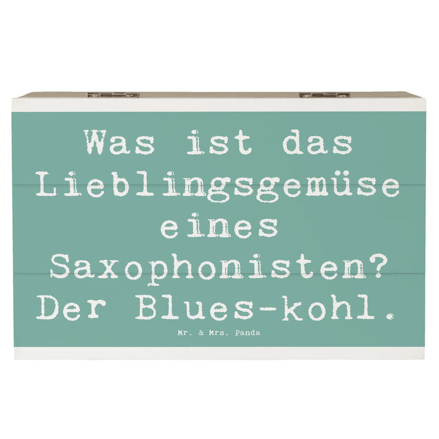 Die wunderschöne Holzkiste von Mr. & Mrs. Panda mit dem einzigartigen Saxophon-Motiv ist das perfekte Geschenk für alle Musikliebhaber und -enthusiasten! Egal, ob Du selbst Musiker bist oder jemanden kennst, der es werden möchte – Diese Kiste bringt nicht nur Freude, sondern auch eine Portion Humor mit ihrem witzigen Spruch: "Was ist das Lieblingsgemüse eines Saxophonisten? Der Blues-kohl." Die Kiste eignet sich hervorragend als Aufbewahrungsort für Deine wertvollen Schätze, sei es für Erinnerungen, Fotos oder als kreative Geschenkbox für besondere Anlässe wie Kommunion, Konfirmation, Geburtstagsfeiern oder einfach nur so.