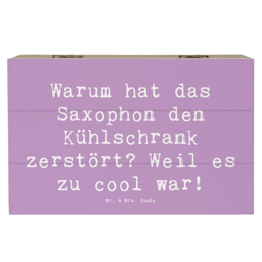 Mit den Maßen von 190 mm x 120 mm x 100 mm bietet sie ausreichend Platz für Erinnerungen, Fotos oder kleine Geschenke. Jedes Mal, wenn du diese Kiste öffnest, wird dich der originelle Spruch "Warum hat das Saxophon den Kühlschrank zerstört? Weil es zu cool war!" zum Schmunzeln bringen.