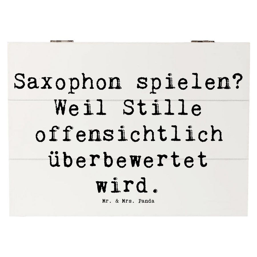 Die wunderschöne Holzkiste von Mr. & Mrs. Panda ist das perfekte Geschenk für jeden Musikliebhaber und Saxophon-Fan. Mit ihrem liebevollen Design und dem catchy Spruch "Saxophon spielen? Weil Stille offensichtlich überbewertet wird." ist diese Kiste nicht nur praktisch, sondern auch ein echter Hingucker.