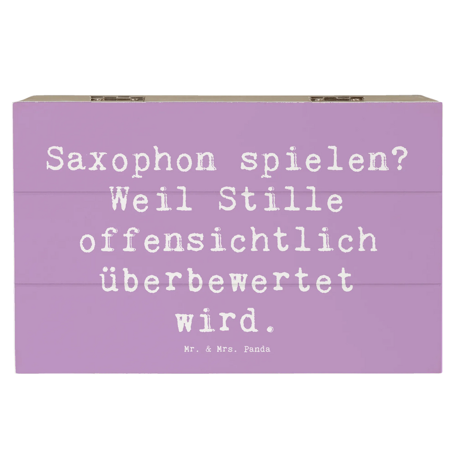 Die wunderschöne Holzkiste von Mr. & Mrs. Panda ist das perfekte Geschenk für jeden Musikliebhaber und Saxophon-Fan. Mit ihrem liebevollen Design und dem catchy Spruch "Saxophon spielen? Weil Stille offensichtlich überbewertet wird." ist diese Kiste nicht nur praktisch, sondern auch ein echter Hingucker.