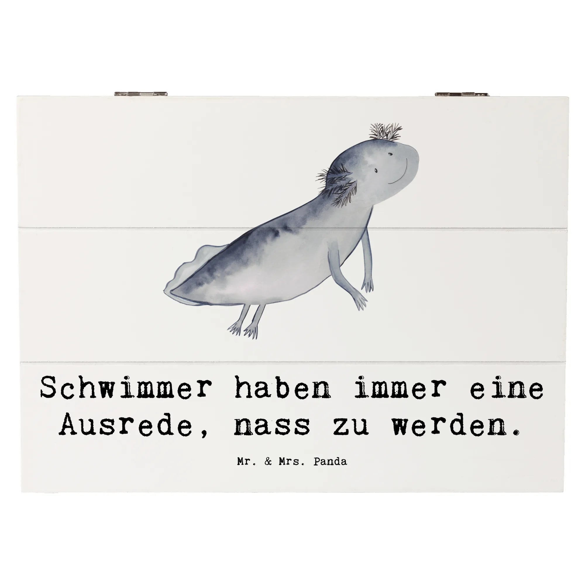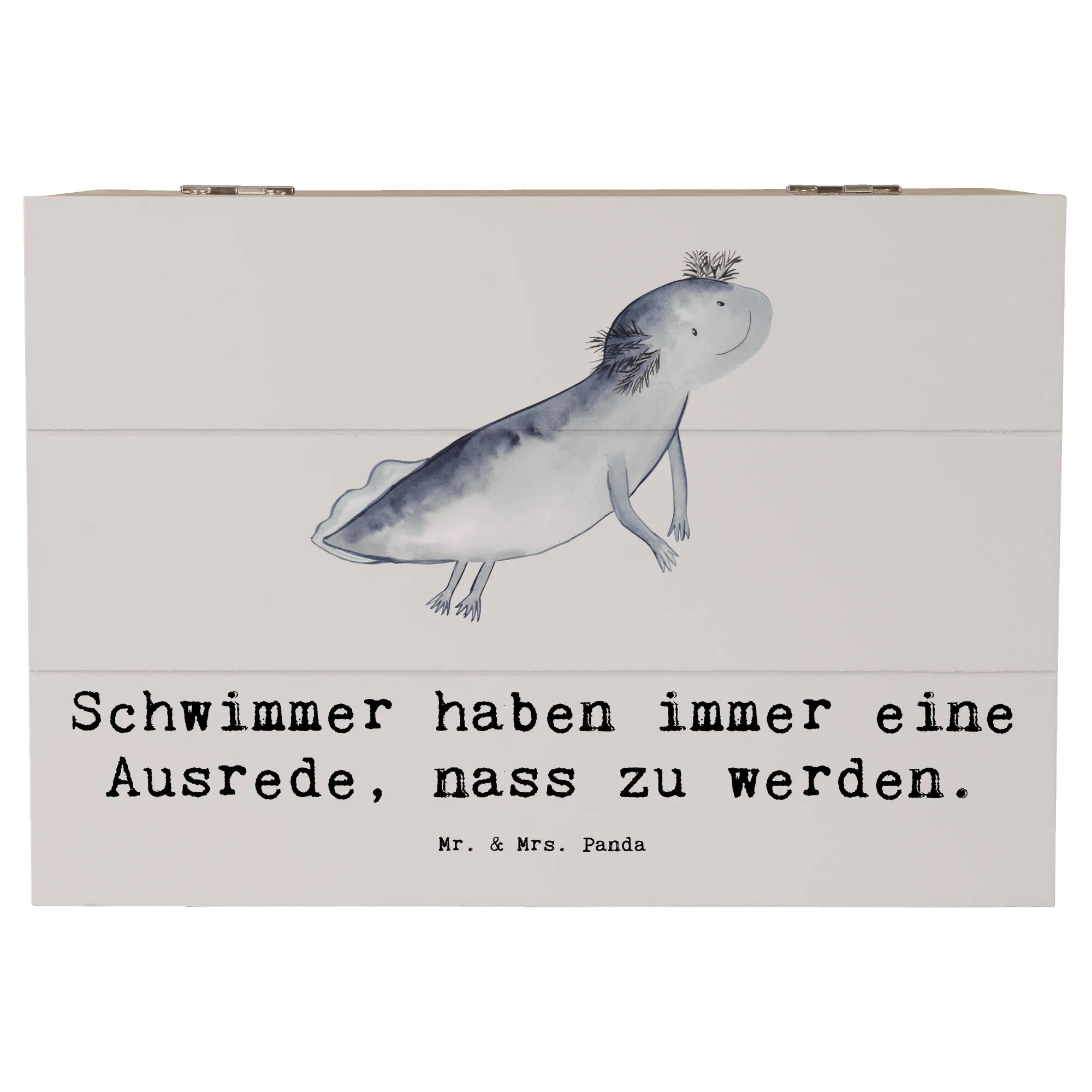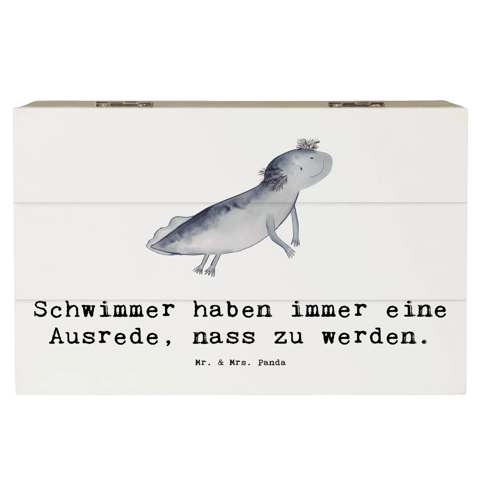 Die wunderschöne Holzkiste von Mr. & Mrs. Panda ist das perfekte Geschenk für alle Schwimmbegeisterten! Mit dem liebevollen Spruch "Schwimmer haben immer eine Ausrede, nass zu werden." bringst Du ein Lächeln auf die Gesichter von Freunden und Familie, die das Wasser lieben.