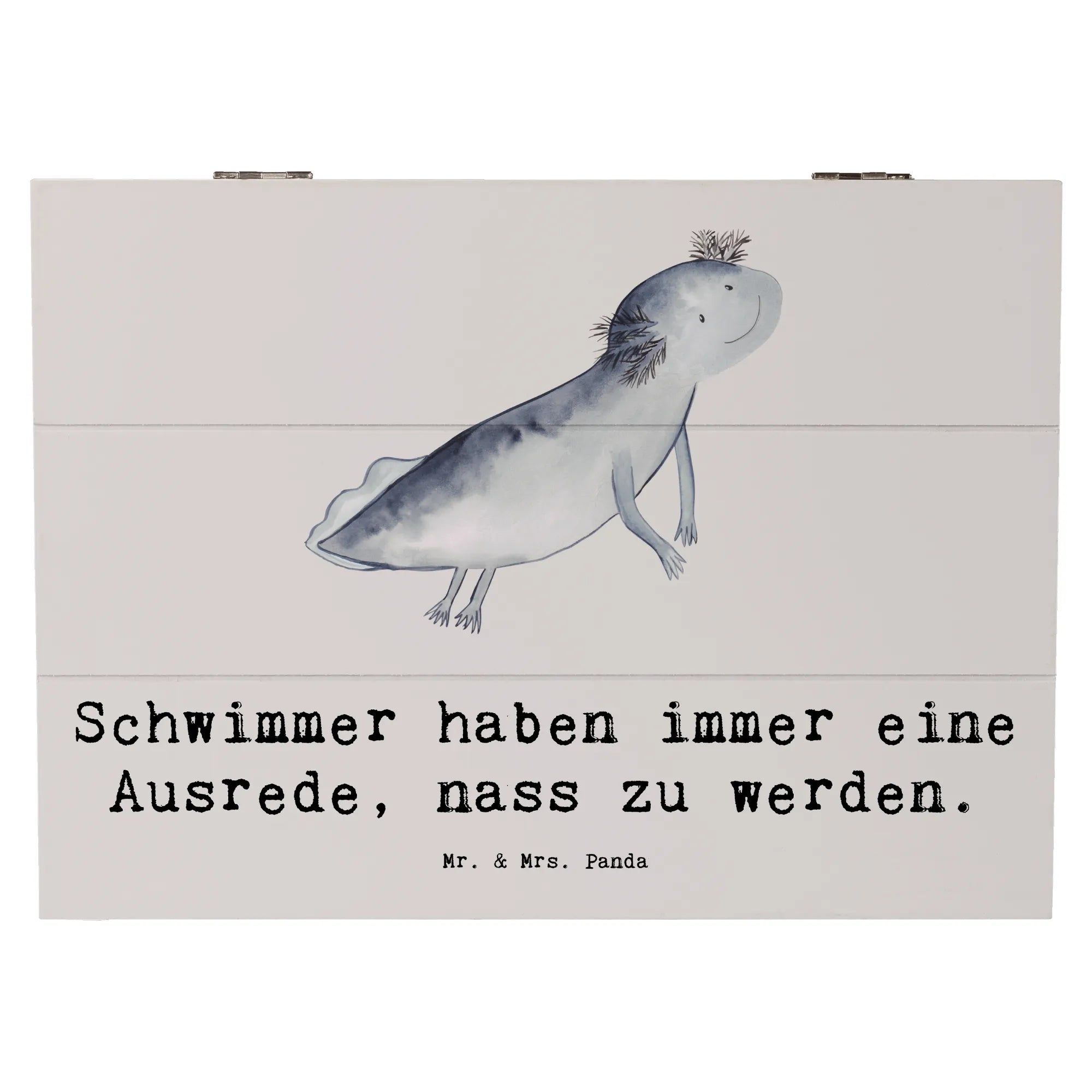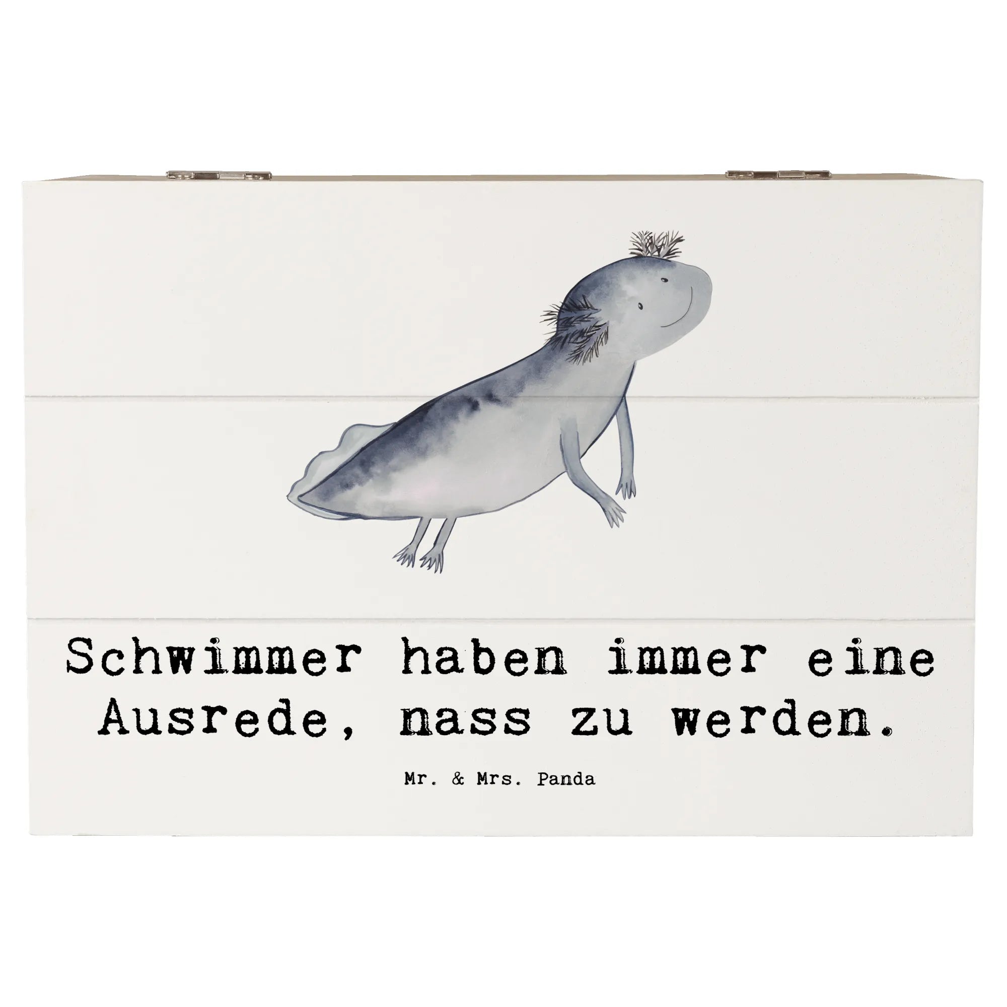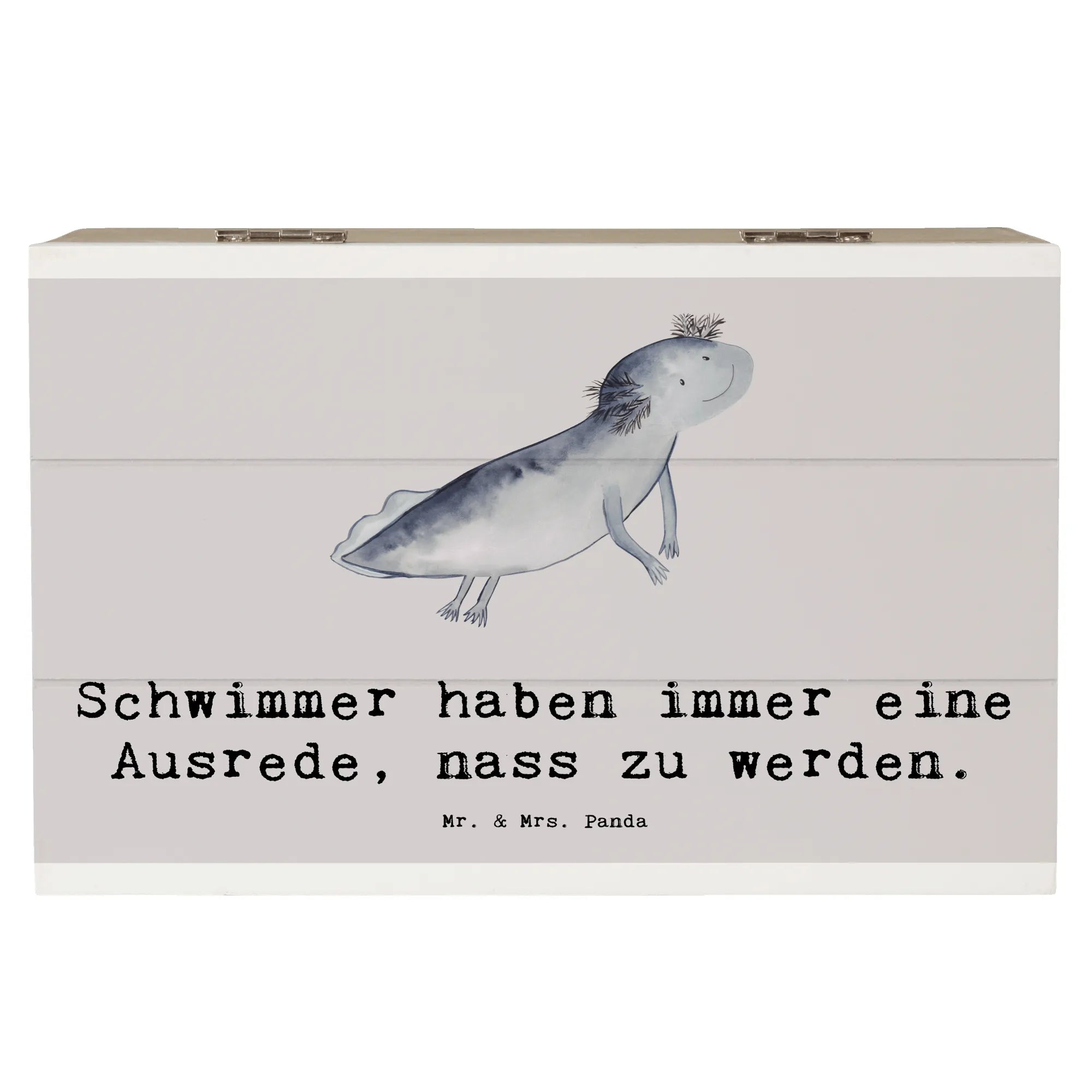 Die wunderschöne Holzkiste von Mr. & Mrs. Panda ist das perfekte Geschenk für alle Schwimmbegeisterten! Mit dem liebevollen Spruch "Schwimmer haben immer eine Ausrede, nass zu werden." bringst Du ein Lächeln auf die Gesichter von Freunden und Familie, die das Wasser lieben.