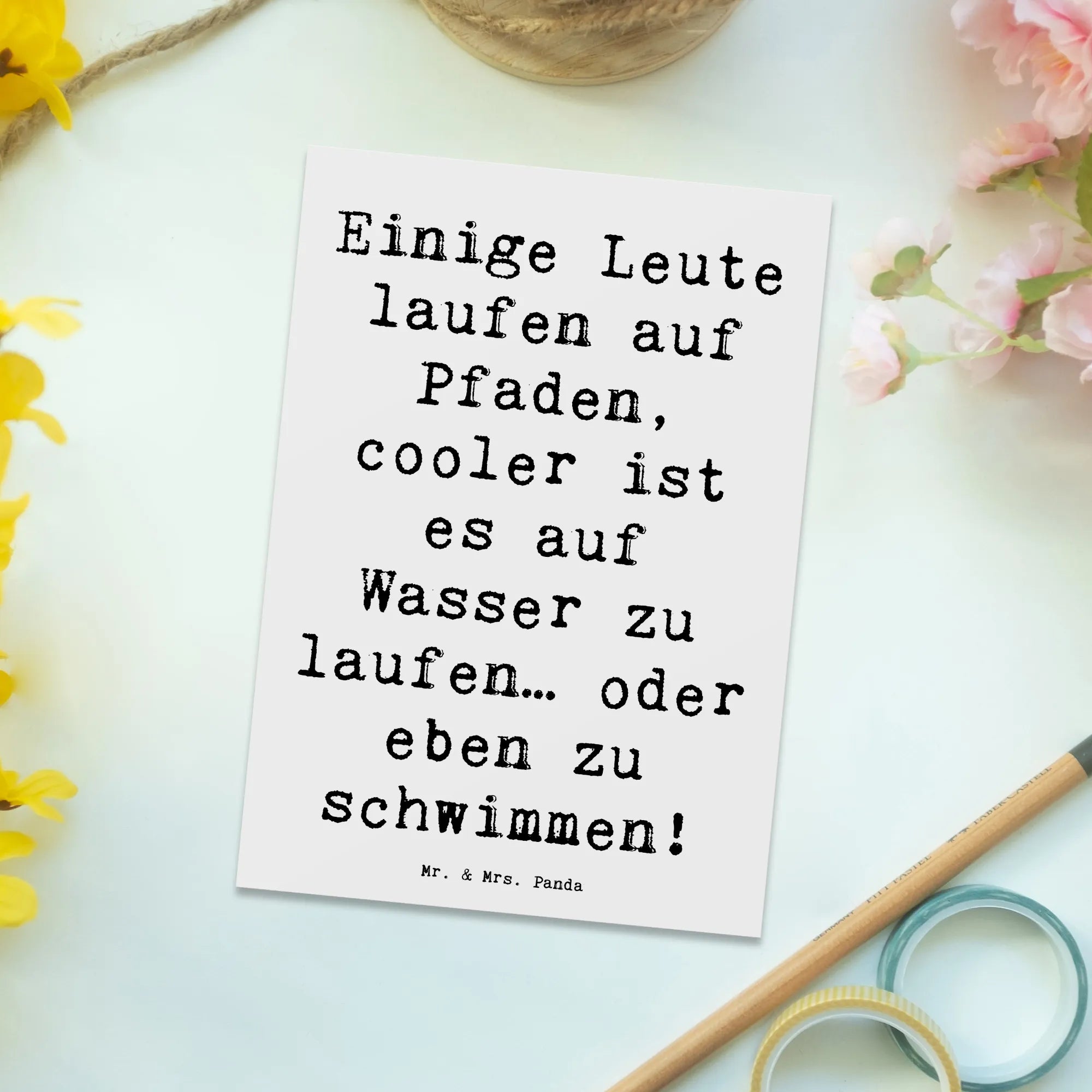 Auf der Karte prangt der lustige Satz: „Einige Leute laufen auf Pfaden, cooler ist es auf Wasser zu laufen… oder eben zu schwimmen!" Damit ist sie ideal als Grußkarte, Geburtstagskarte oder Einladungskarte Geburtstag für alle Wassersport-Begeisterten. Ob für Vereinskameraden, Trainer oder die beste Freundin, die täglich ihre Bahnen zieht – diese Karte trifft immer ins Schwarze.