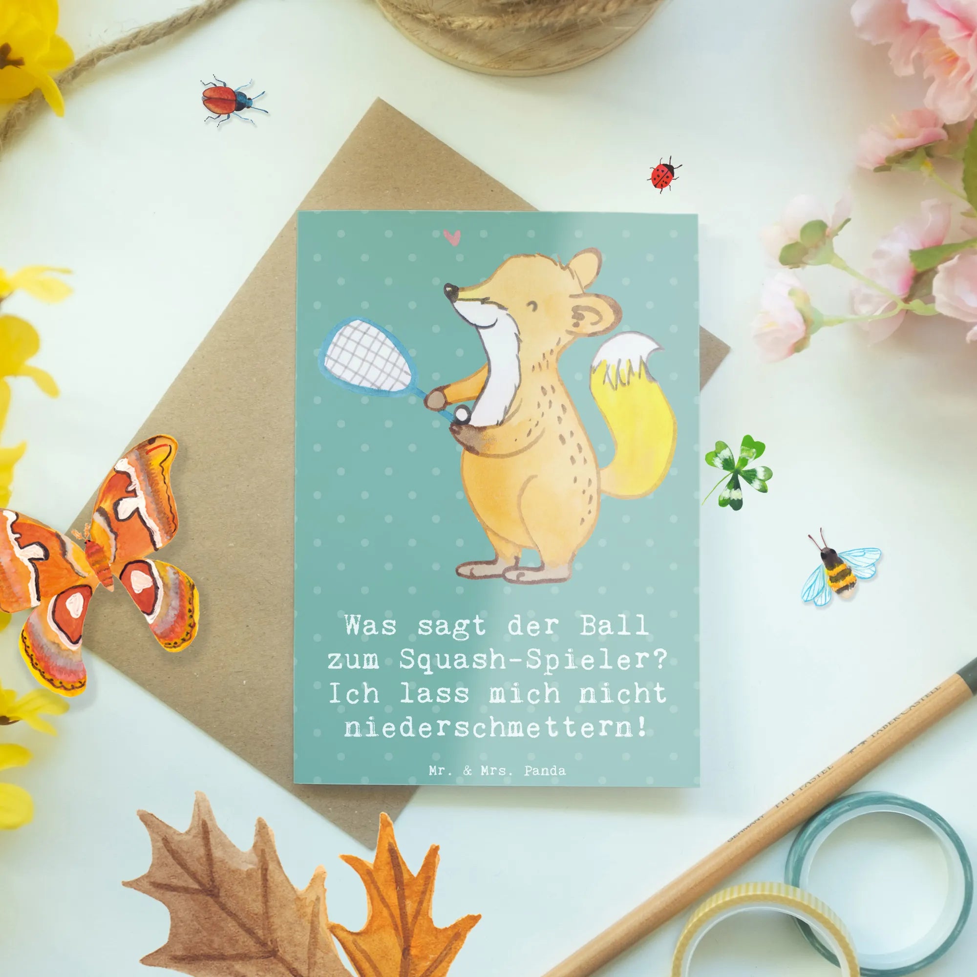 Entdecke die perfekte Grußkarte für Sportliebhaber: die Grußkarte Squash von Mr. & Mrs. Panda!