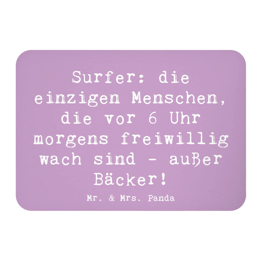 Du liebst das Surfen und suchst nach einem besonderen Geschenk für dich oder einen Surferfreund? Der charmante Magnet von Mr. & Mrs. Panda mit dem Spruch "Surfer: die einzigen Menschen, die vor 6 Uhr morgens freiwillig wach sind - außer Bäcker!" ist die perfekte Wahl!