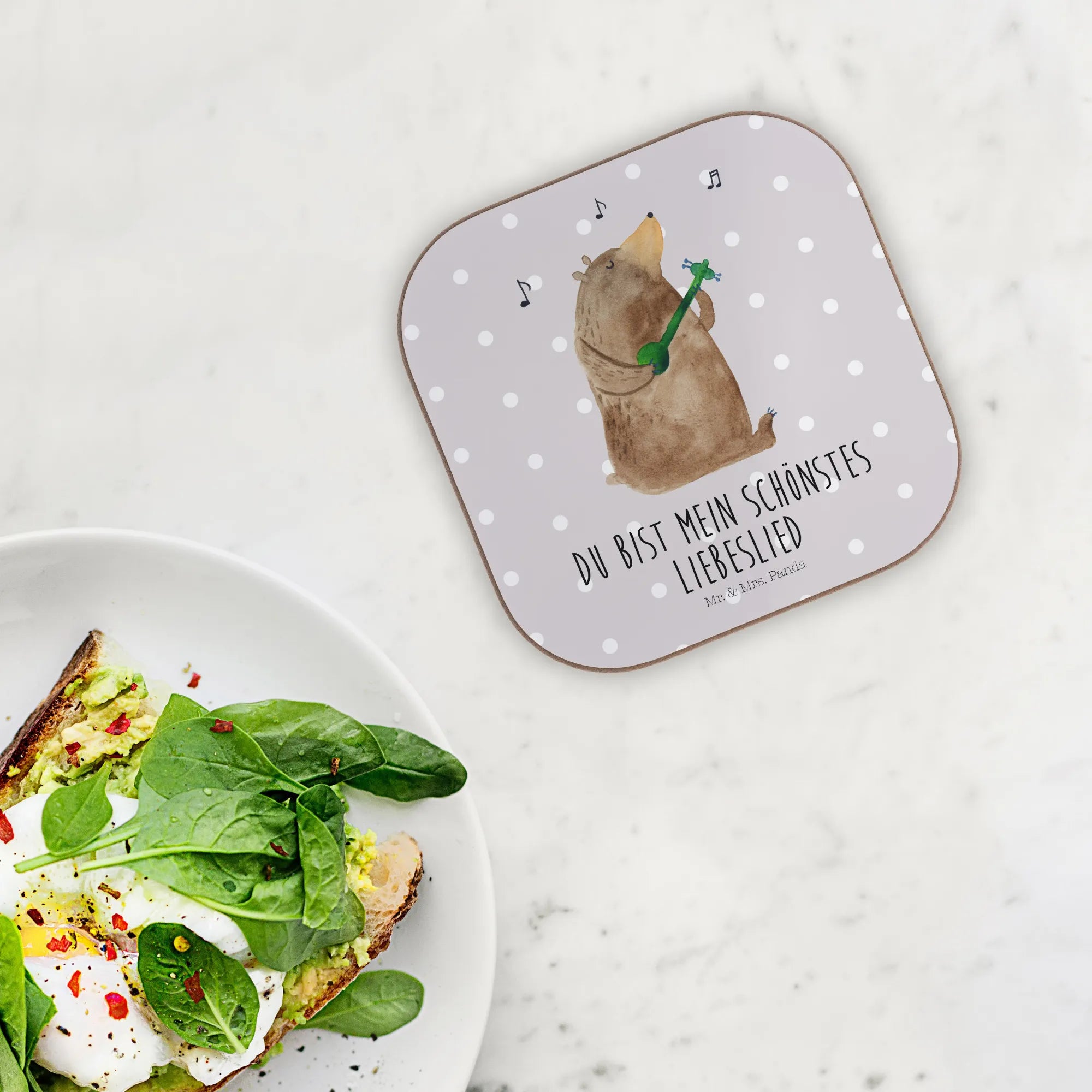 Untersetzer Bär Lied - mit Spruch - Grau Pastell