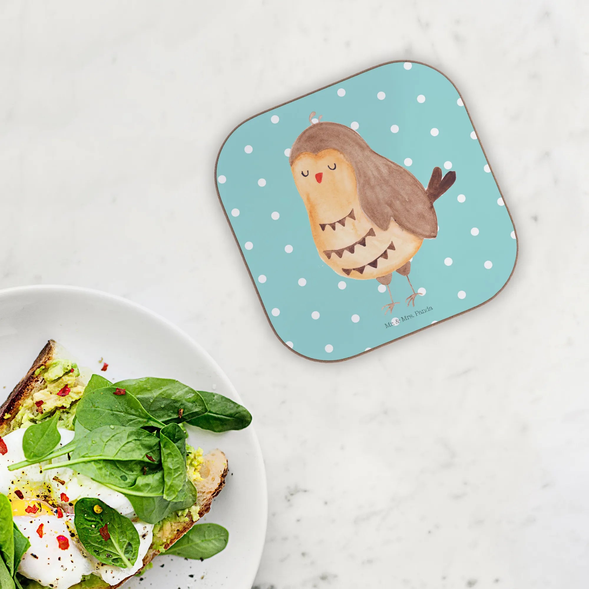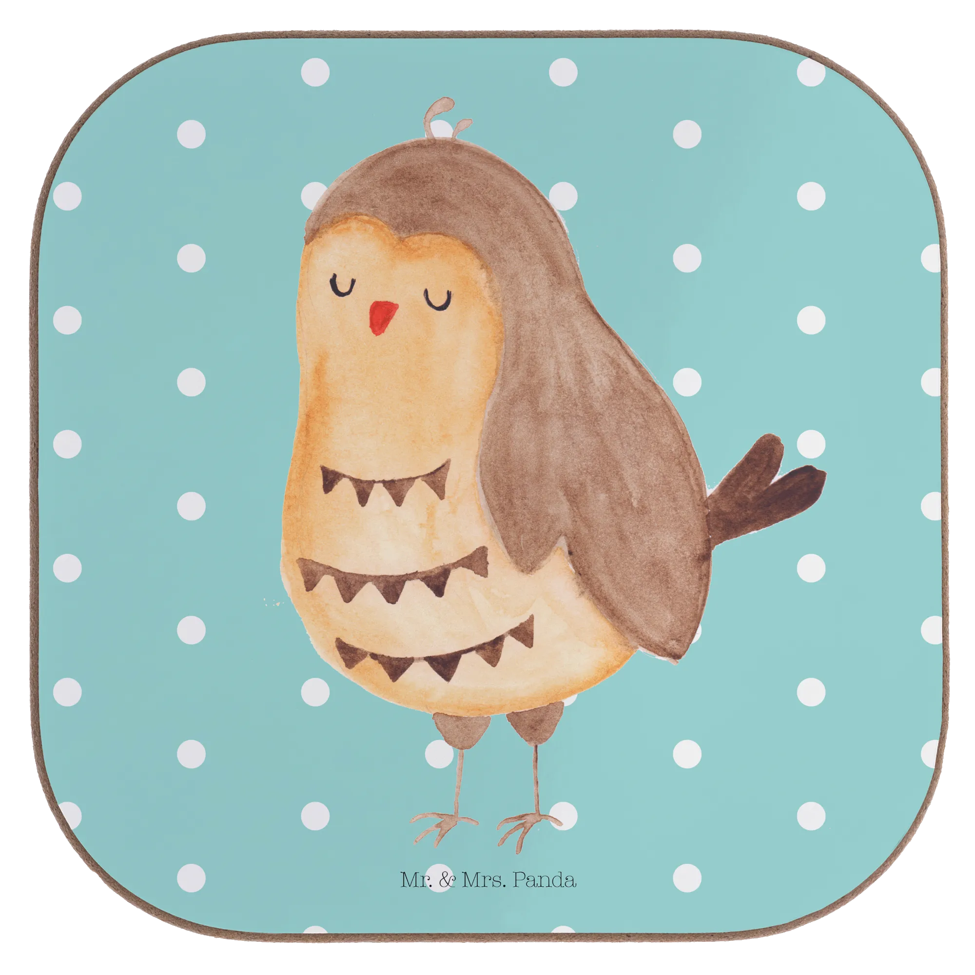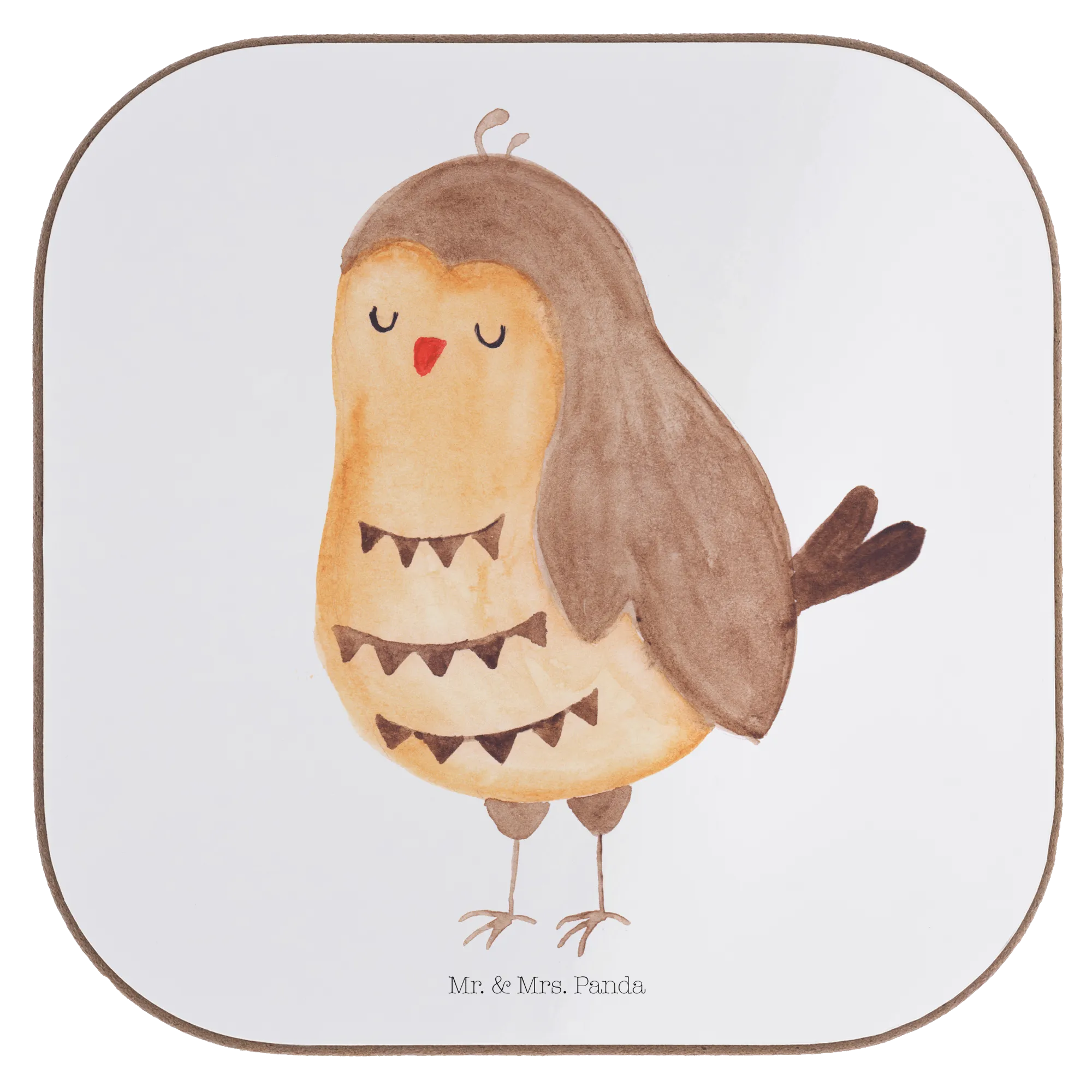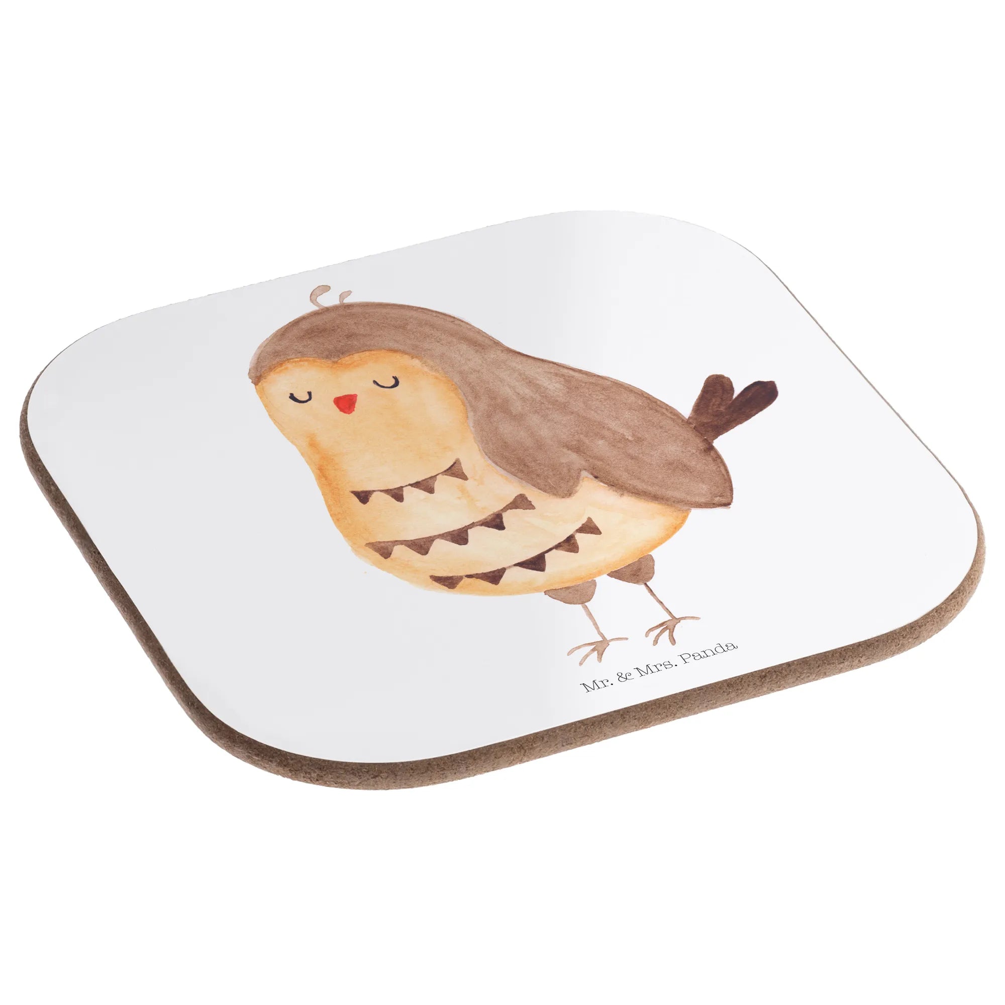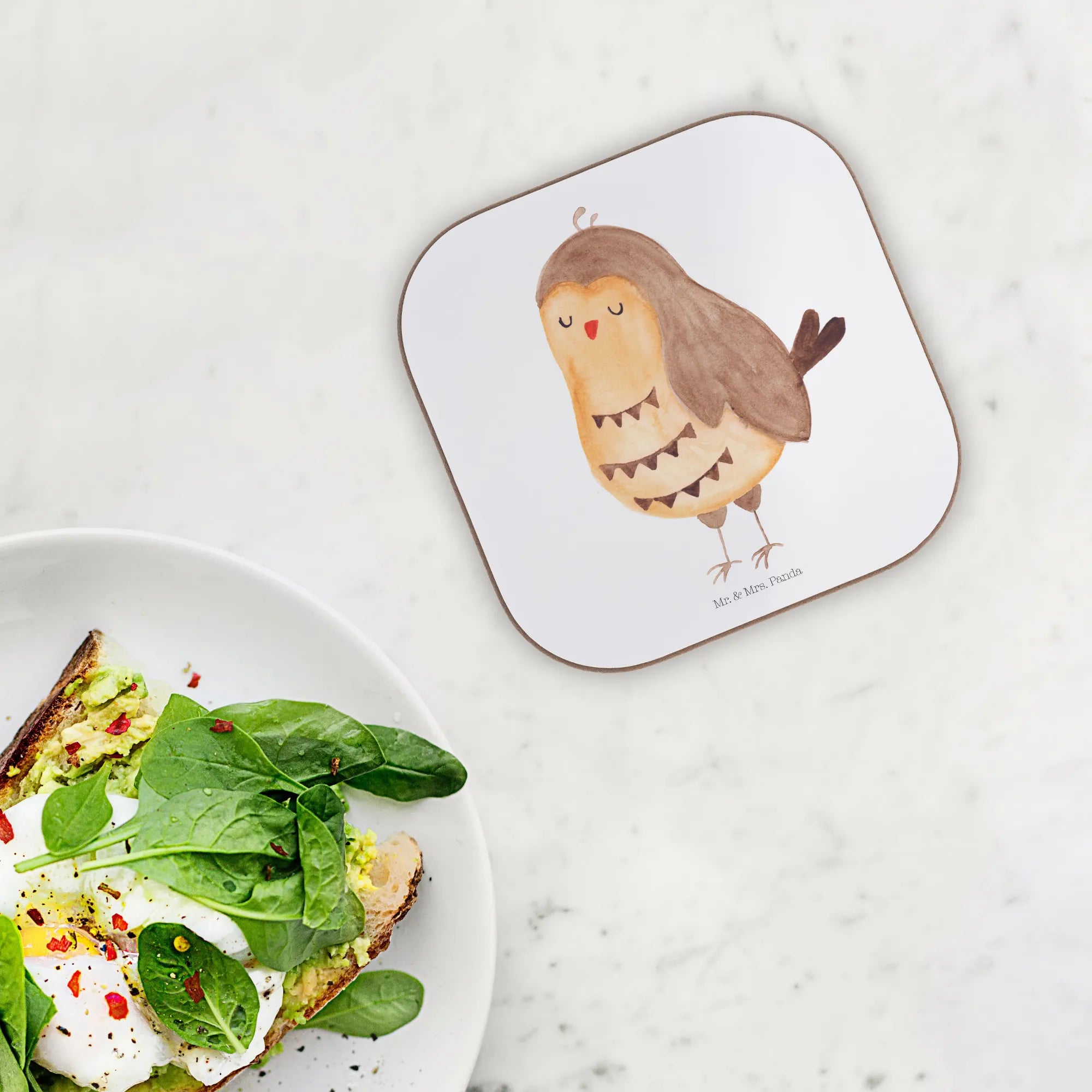 Untersetzer Eule Zufrieden - mit Spruch - Weiß