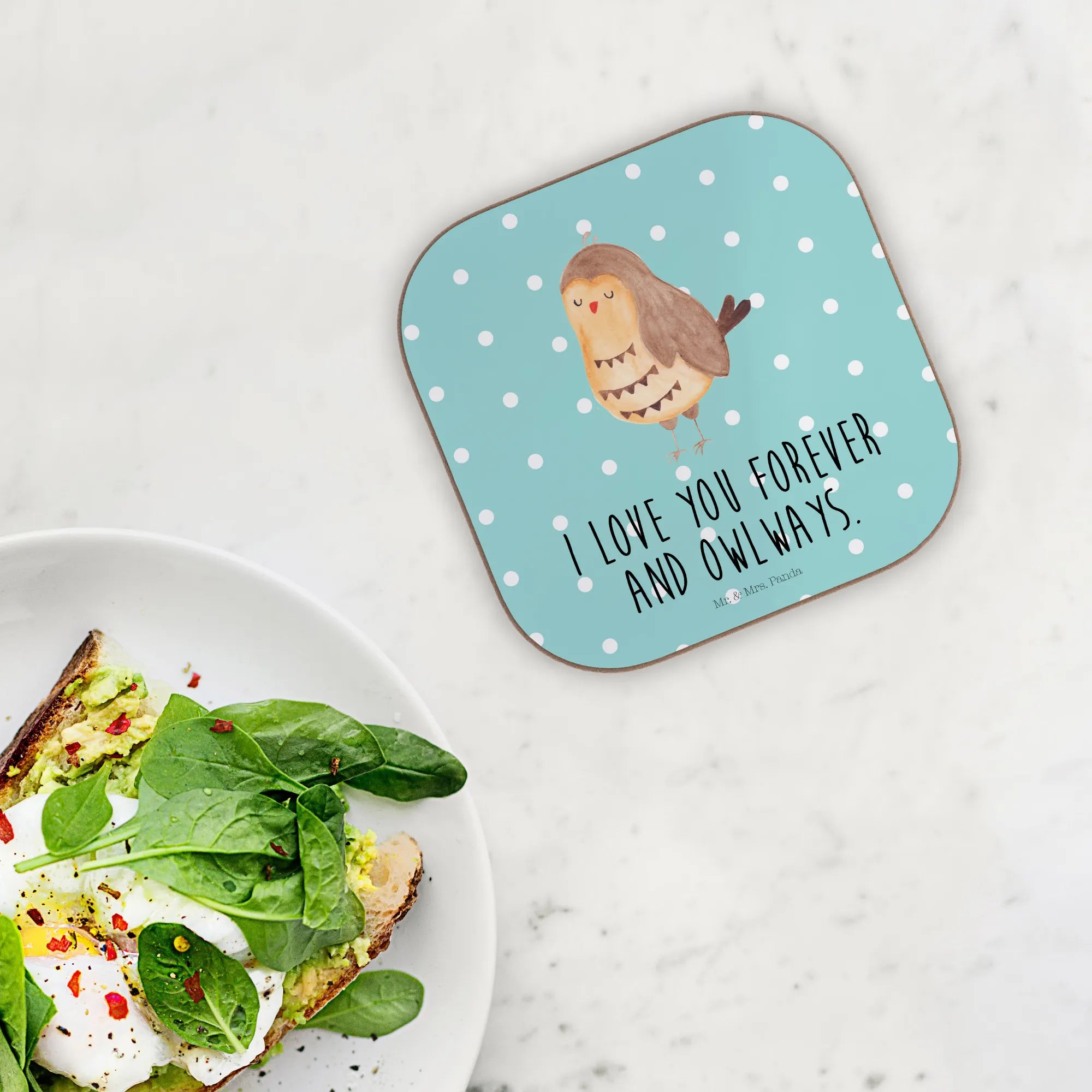 Du liebst Eulen? Dann ist der Untersetzer Eule Zufrieden von Mr. & Mrs. Panda genau das Richtige für dich! Mit dem liebevollen Spruch "I love you forever and owlways" bringt dieser besondere Untersetzer nicht nur einen Hauch von Niedlichkeit in dein Zuhause, sondern sorgt auch dafür, dass du immer an die schönen Dinge im Leben erinnert wirst.