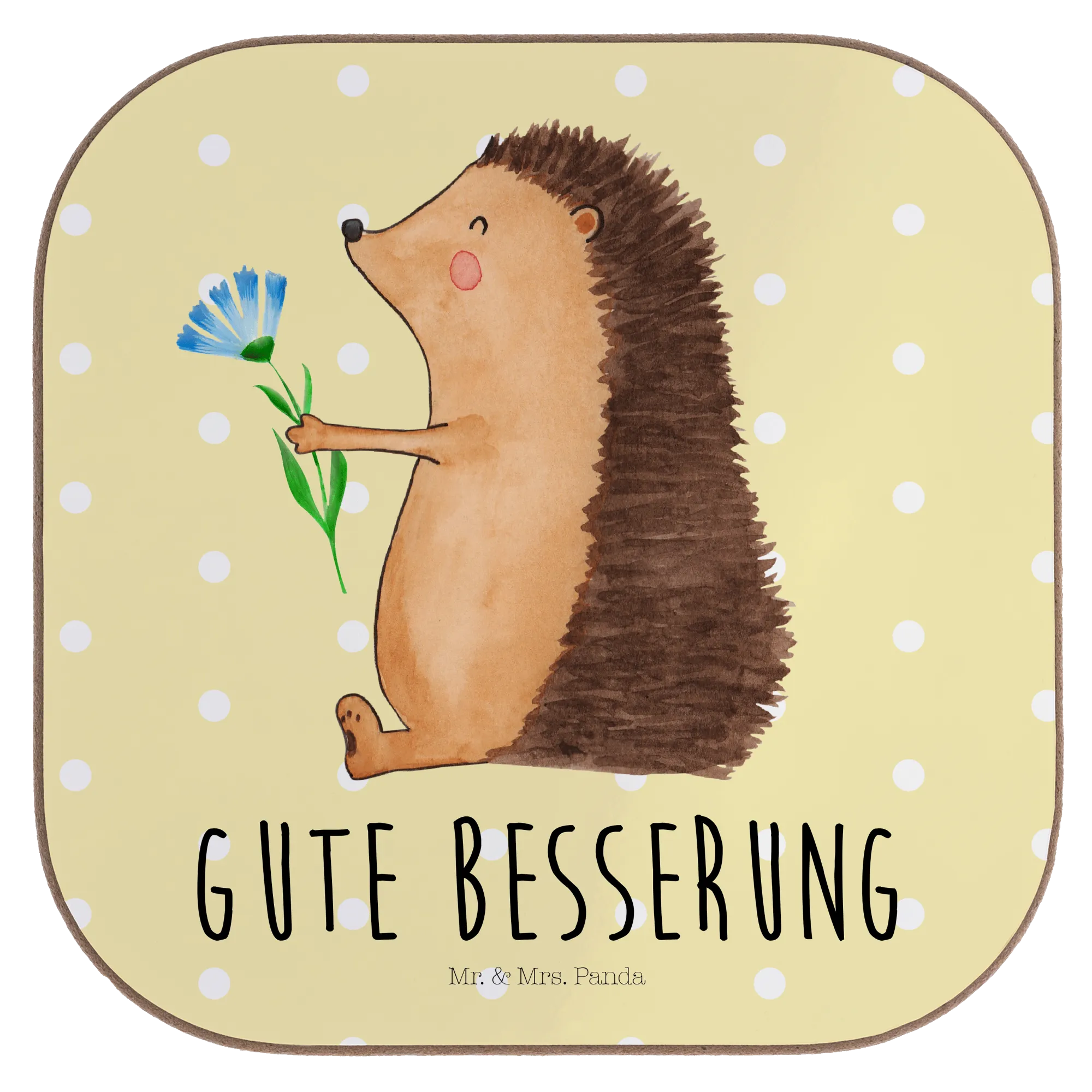 Untersetzer Igel Blumen - mit Spruch - Gelb Pastell