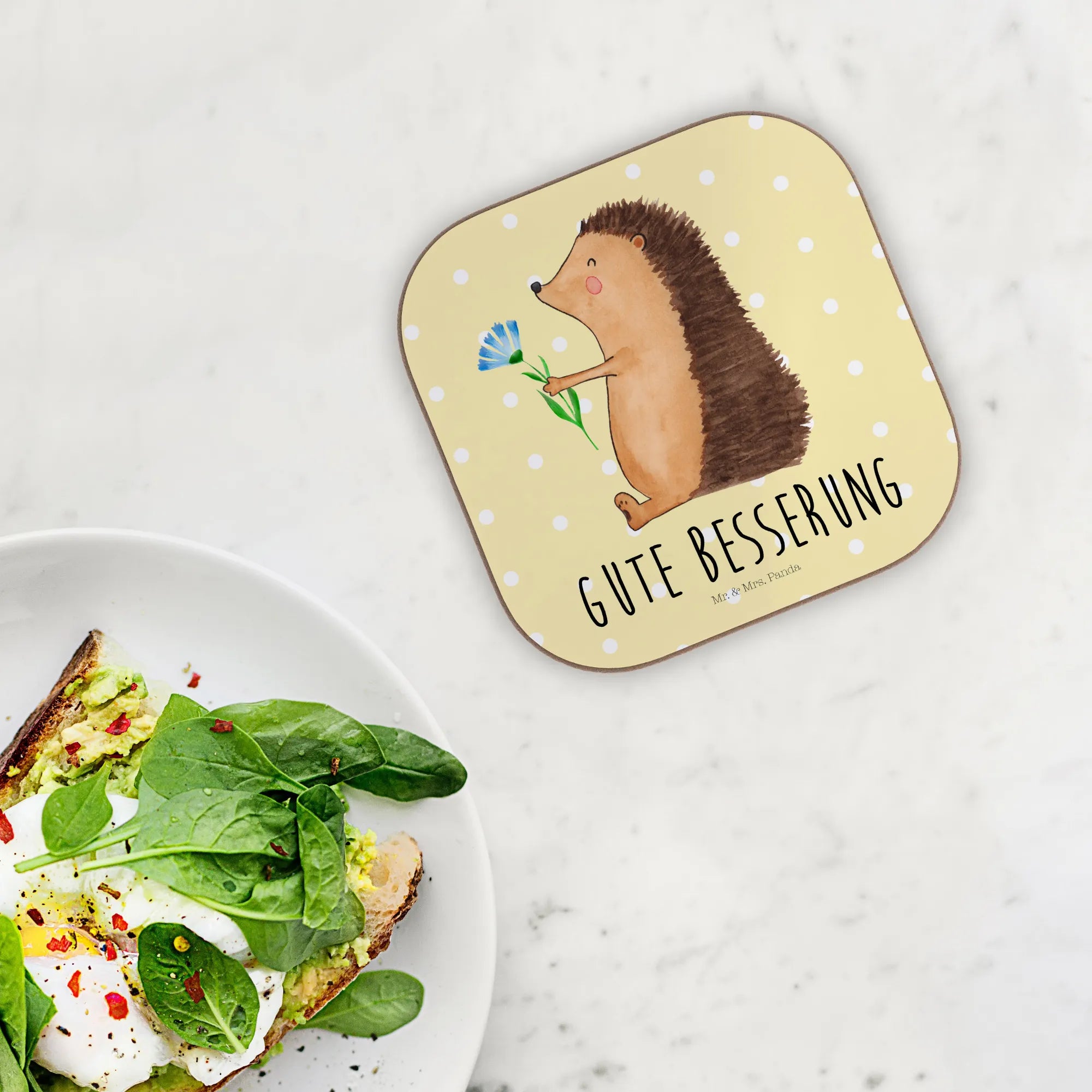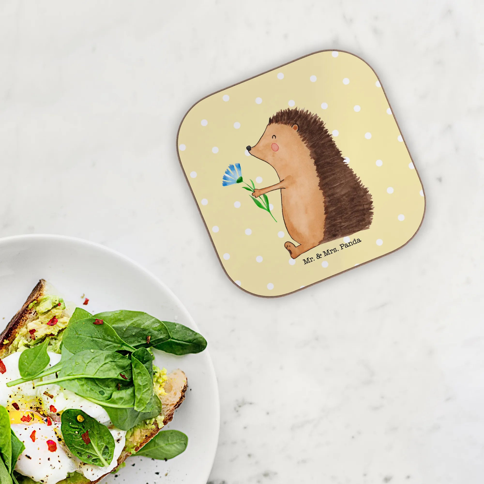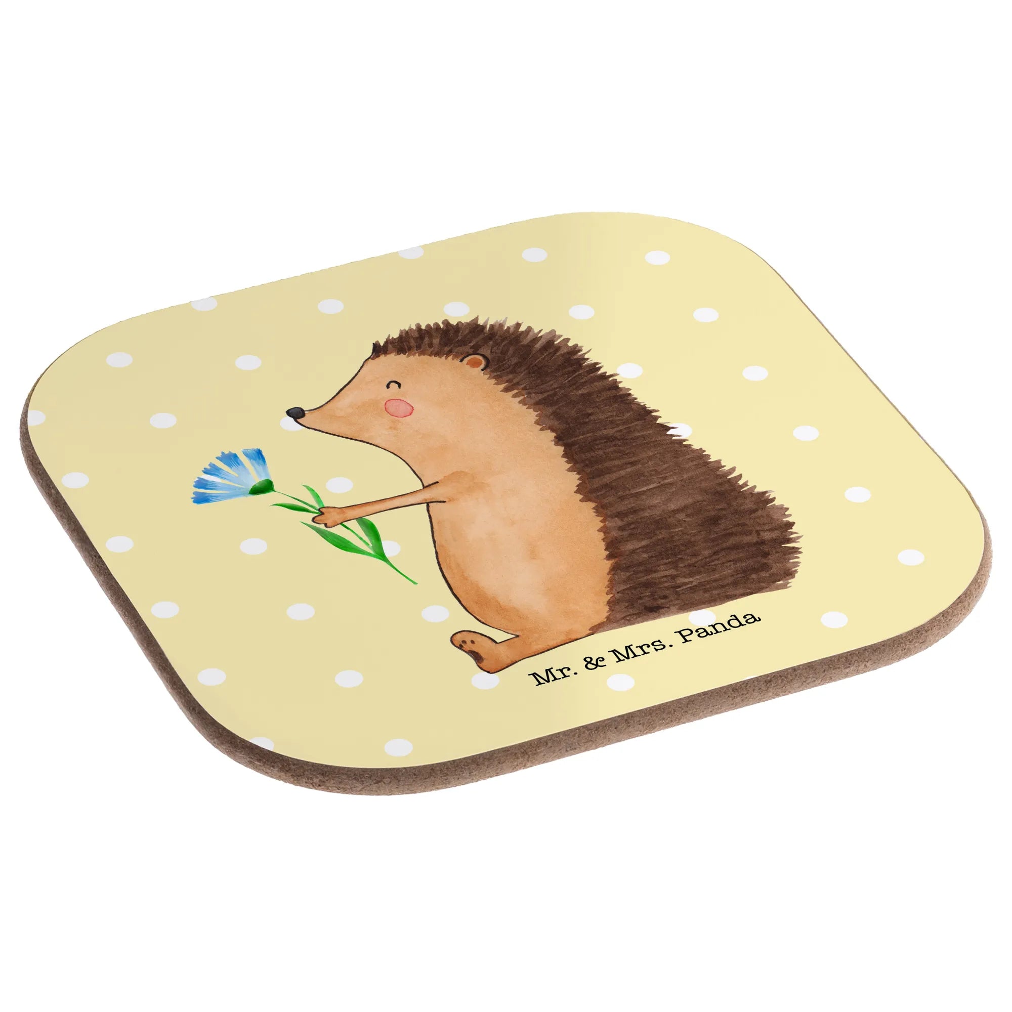 Überrasche deine Liebsten mit unserem zauberhaften Untersetzer "Igel mit Blume" aus der Kollektion Small World von Mr. & Mrs. Panda! Dieser wunderschöne quadratische Untersetzer ist nicht nur ein praktisches Accessoire für deinen Ess- und Couchtisch, sondern bringt auch eine Portion gute Laune in dein Zuhause.