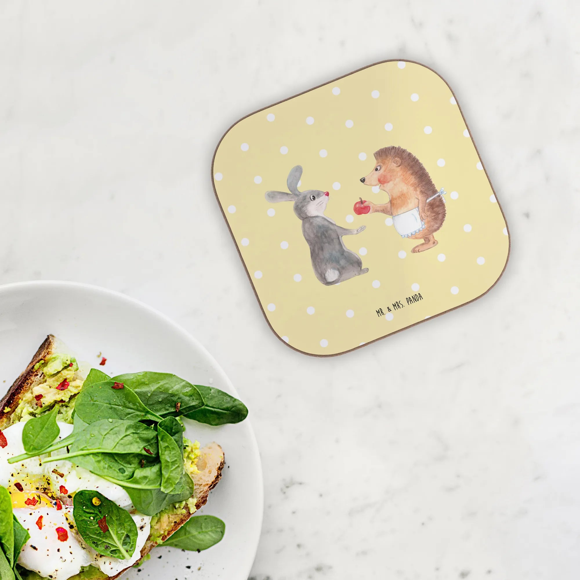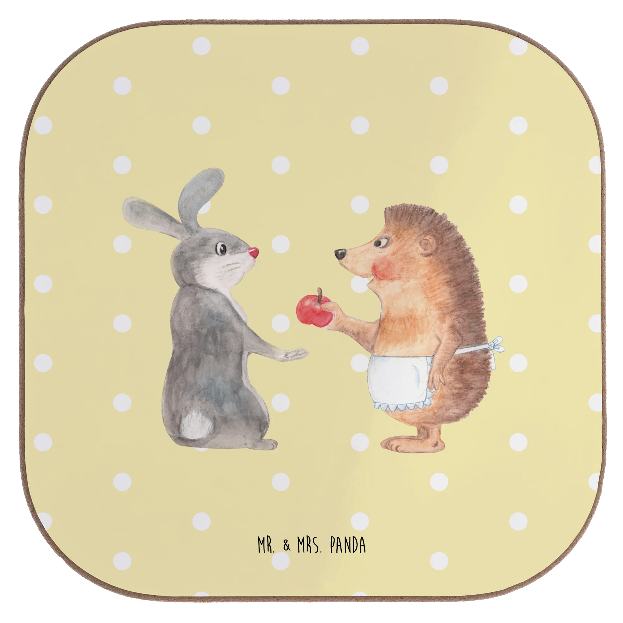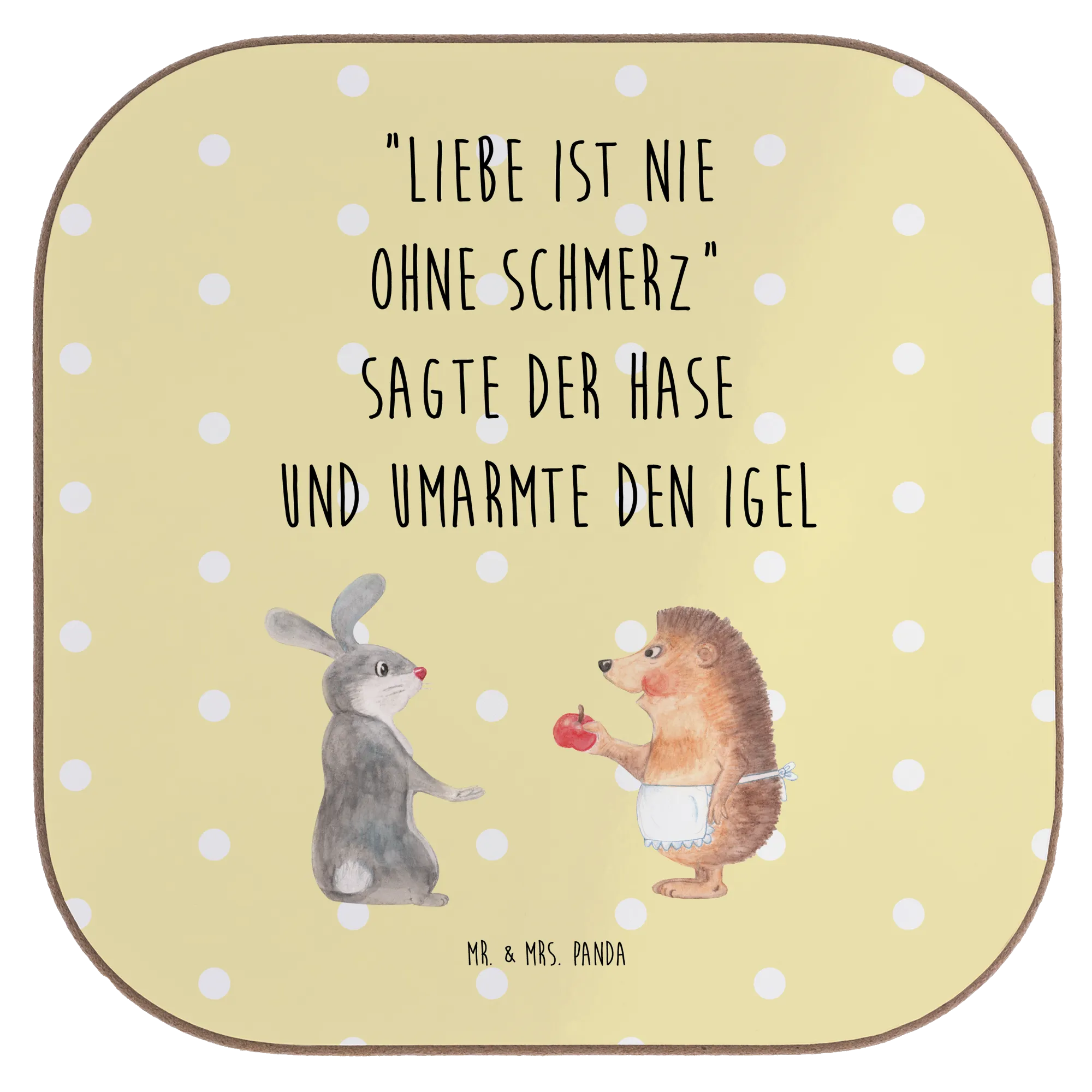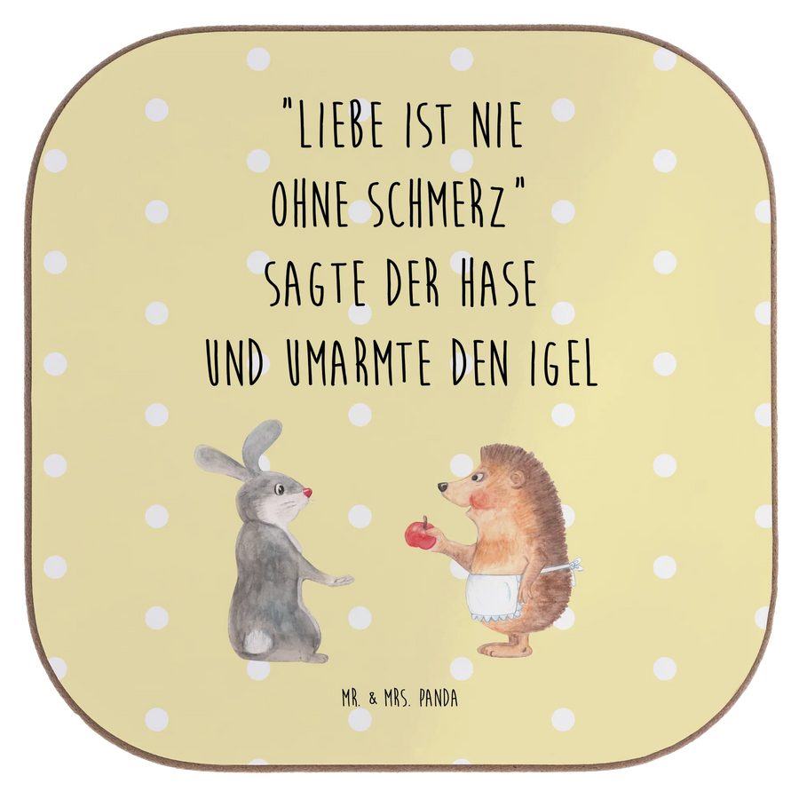 Untersetzer Hase Igel - mit Spruch - Gelb Pastell