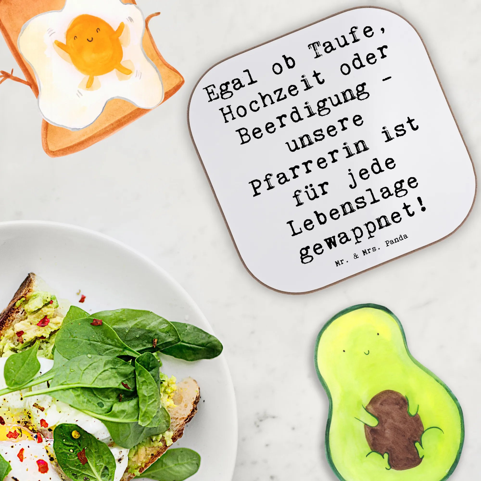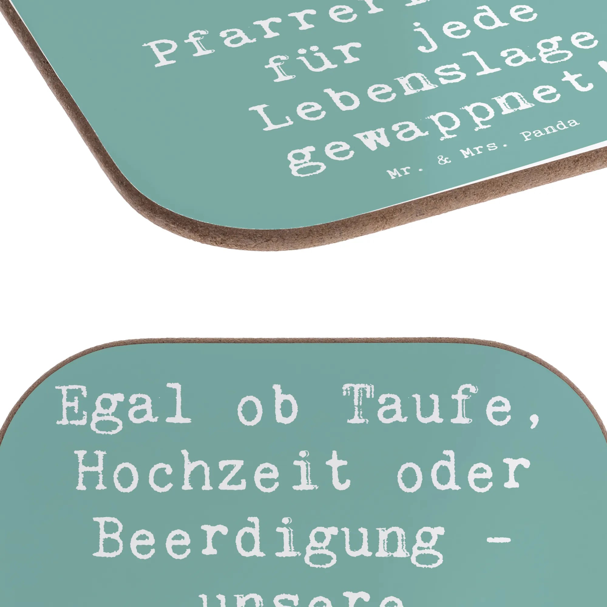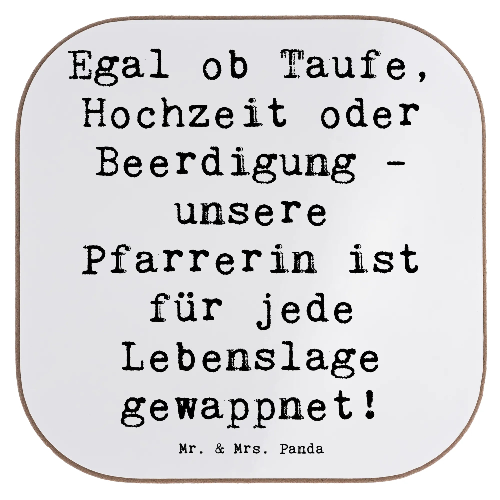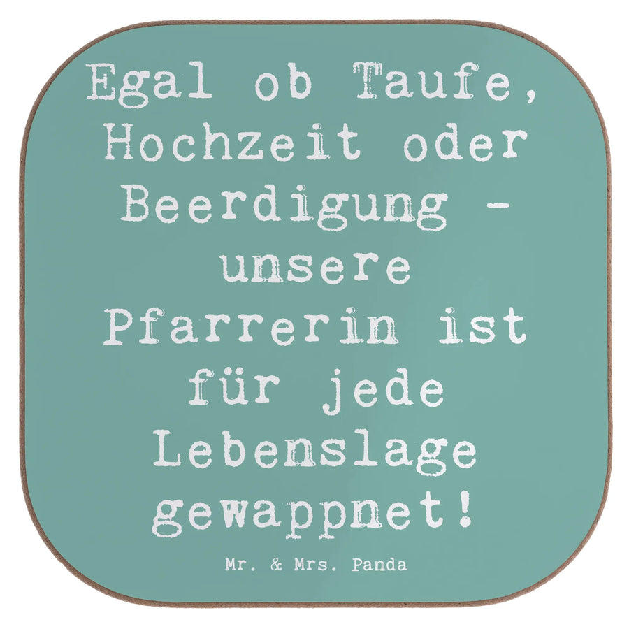 Ob für den nächsten Büroanlass, ein persönliches Dankeschön oder einfach nur so – der Untersetzer mit dem Spruch 'Egal ob Taufe, Hochzeit oder Beerdigung - unsere Pfarrerin ist für jede Lebenslage gewappnet!' bringt ein Lächeln in den Alltag. Diese liebevoll gestalteten Bierdeckel sind ideales Geschenk für den Berufsabschied, das Berufsjubiläum oder als kleine Aufmerksamkeit zwischendurch. Die gesamte Kollektion 'Berufe' von Mr. & Mrs. Panda bietet dir eine bunte Auswahl an geschenkefähigen Motiven, die die Leidenschaft für zahlreiche Berufe feiert.