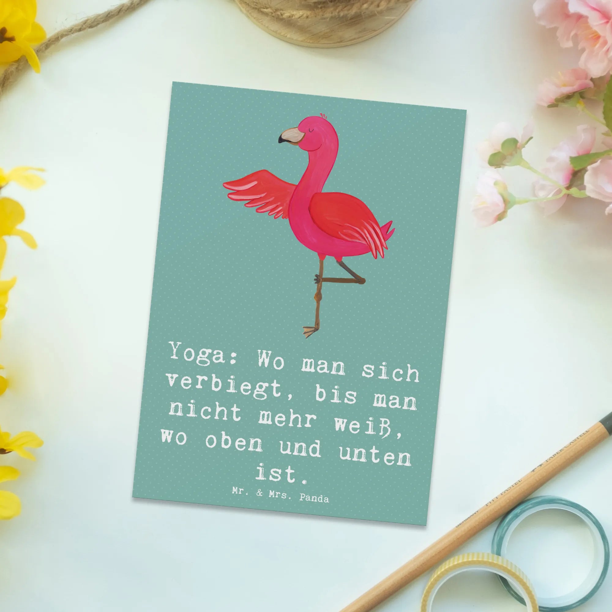 Du bist auf der Suche nach einer originellen Grußkarte, die nicht nur hübsch aussieht, sondern auch einen Haufen Spaß macht? Dann ist die einzigartige Postkarte von Mr. & Mrs. Panda mit dem Yoga-Motiv genau das Richtige für dich!