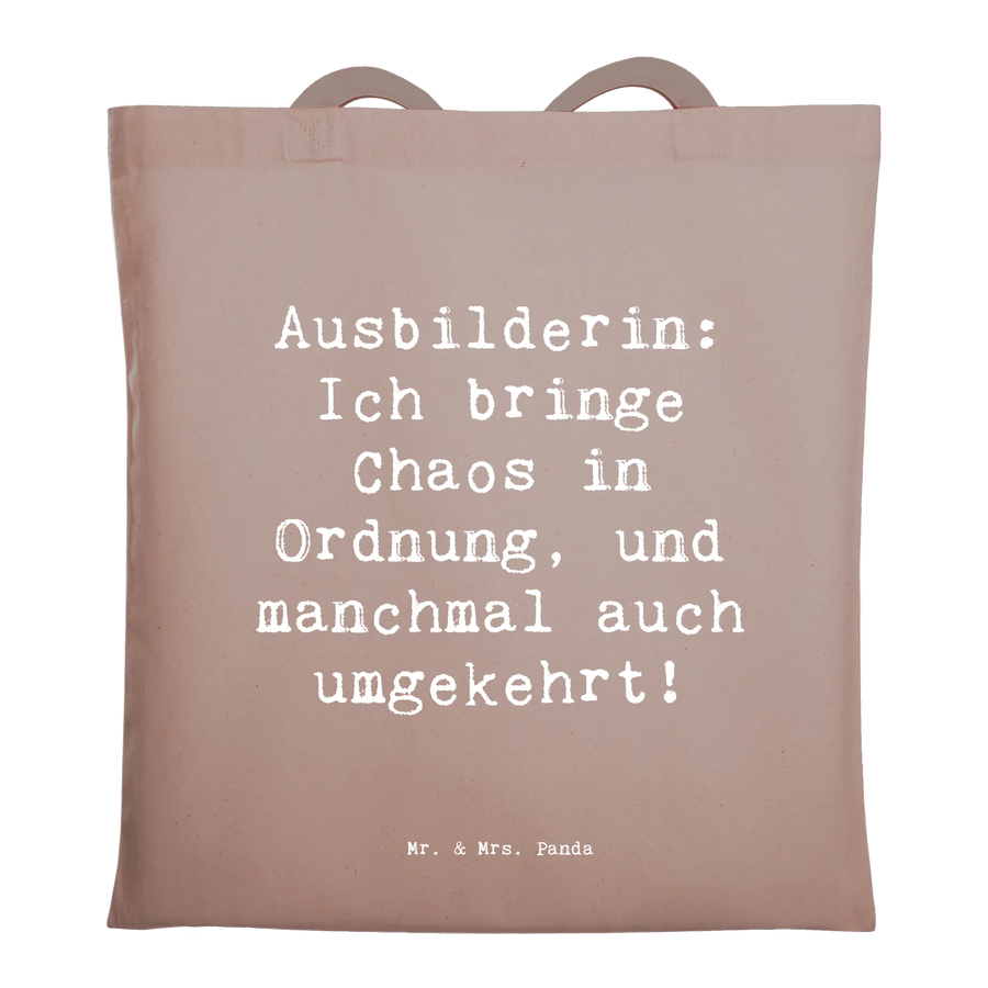 Tragetasche Spruch Ausbilderin: Ich bringe Chaos in Ordnung, und manchmal auch umgekehrt! - Braun Pastell