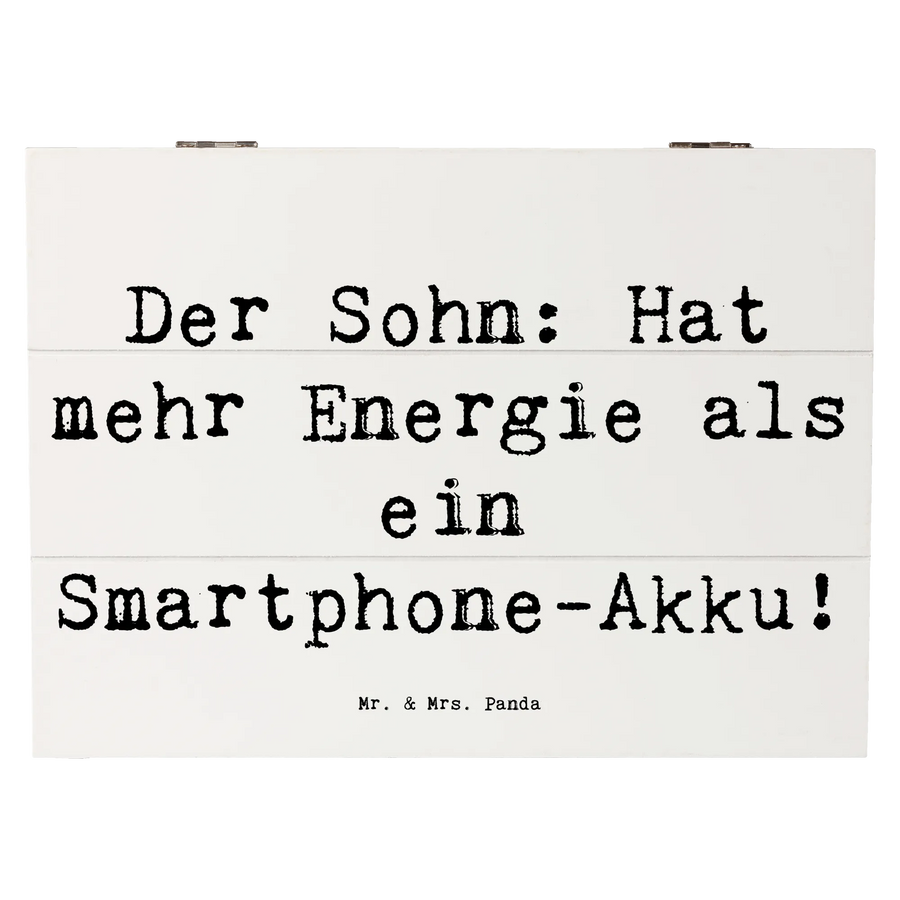 Entdecke die wunderschöne Holzkiste "Der Sohn: Hat mehr Energie als ein Smartphone-Akku!" von Mr. & Mrs. Panda – ein Geschenk, das mit viel Liebe und Stolz für deine Familie entworfen wurde. Diese hochwertige Kiste misst 25 x 18 cm und ist der perfekte Aufbewahrungsort für wertvolle Erinnerungen, Fotos oder kleine Schätze, die dir viel bedeuten.