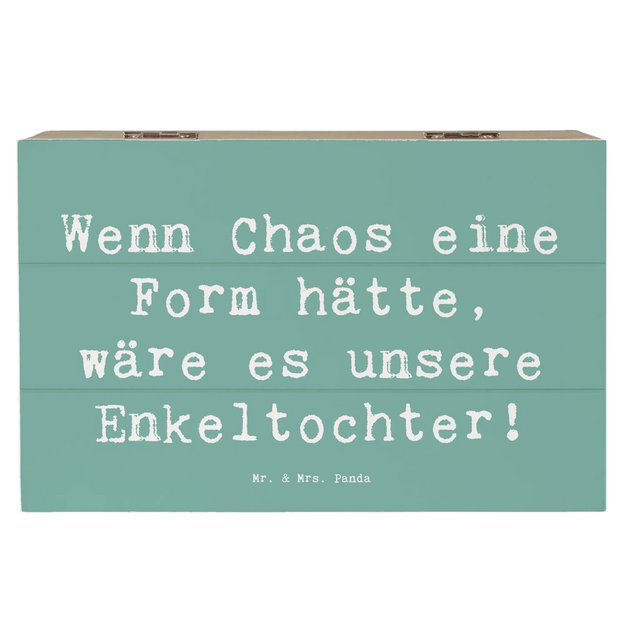Eine wunderschöne Holzkiste von Mr. & Mrs. Panda – perfekt für alle Großeltern, die jede Erinnerung an ihre Enkeltochter bewahren möchten. Unsere Holzkiste trägt den frechen Spruch „Wenn Chaos eine Form hätte, wäre es unsere Enkeltochter!“ und zaubert sofort ein Lächeln ins Gesicht.