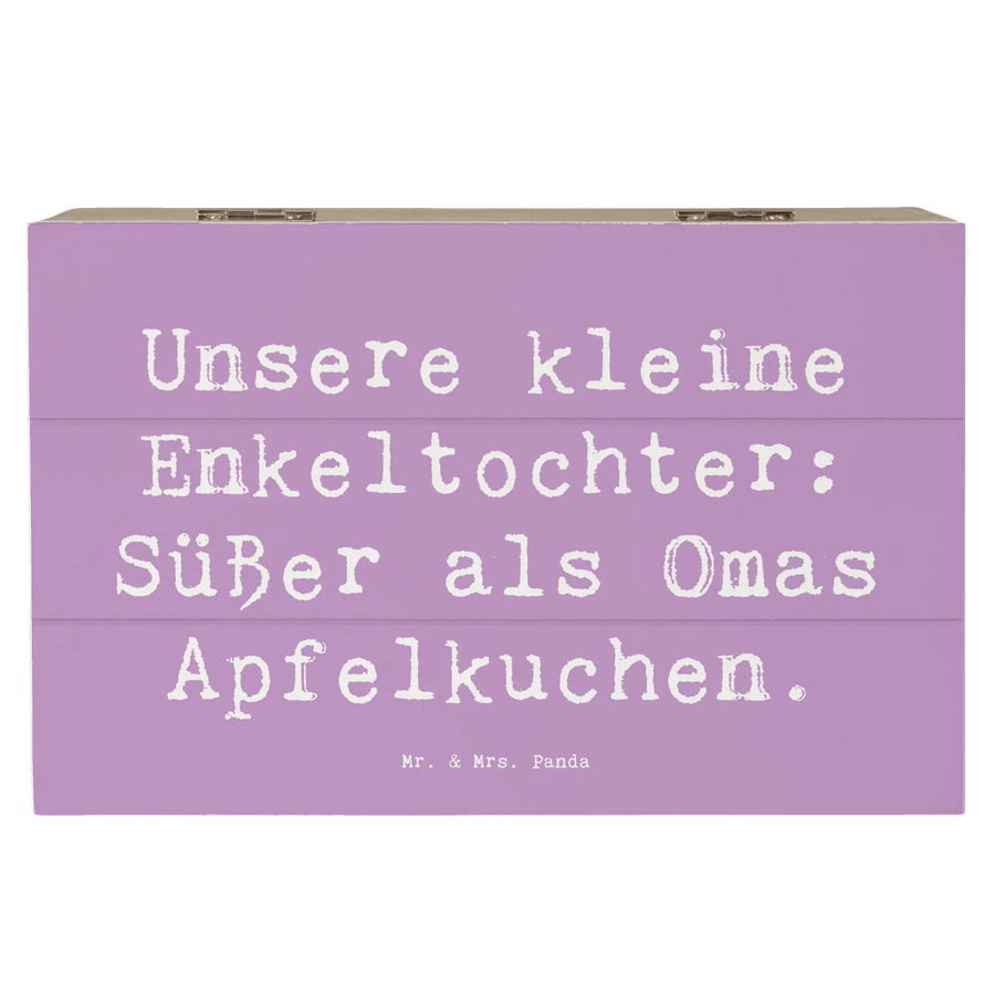 Eine wunderschöne Holzkiste von Mr. & Mrs. Panda, im bezaubernden Design für Deine geliebte Enkeltochter. Diese besondere Schatzkiste mit dem Spruch 'Unsere kleine Enkeltochter: Süßer als Omas Apfelkuchen.' ist das perfekte Geschenk, um die einzigartigen Momente der Kindheit festzuhalten.